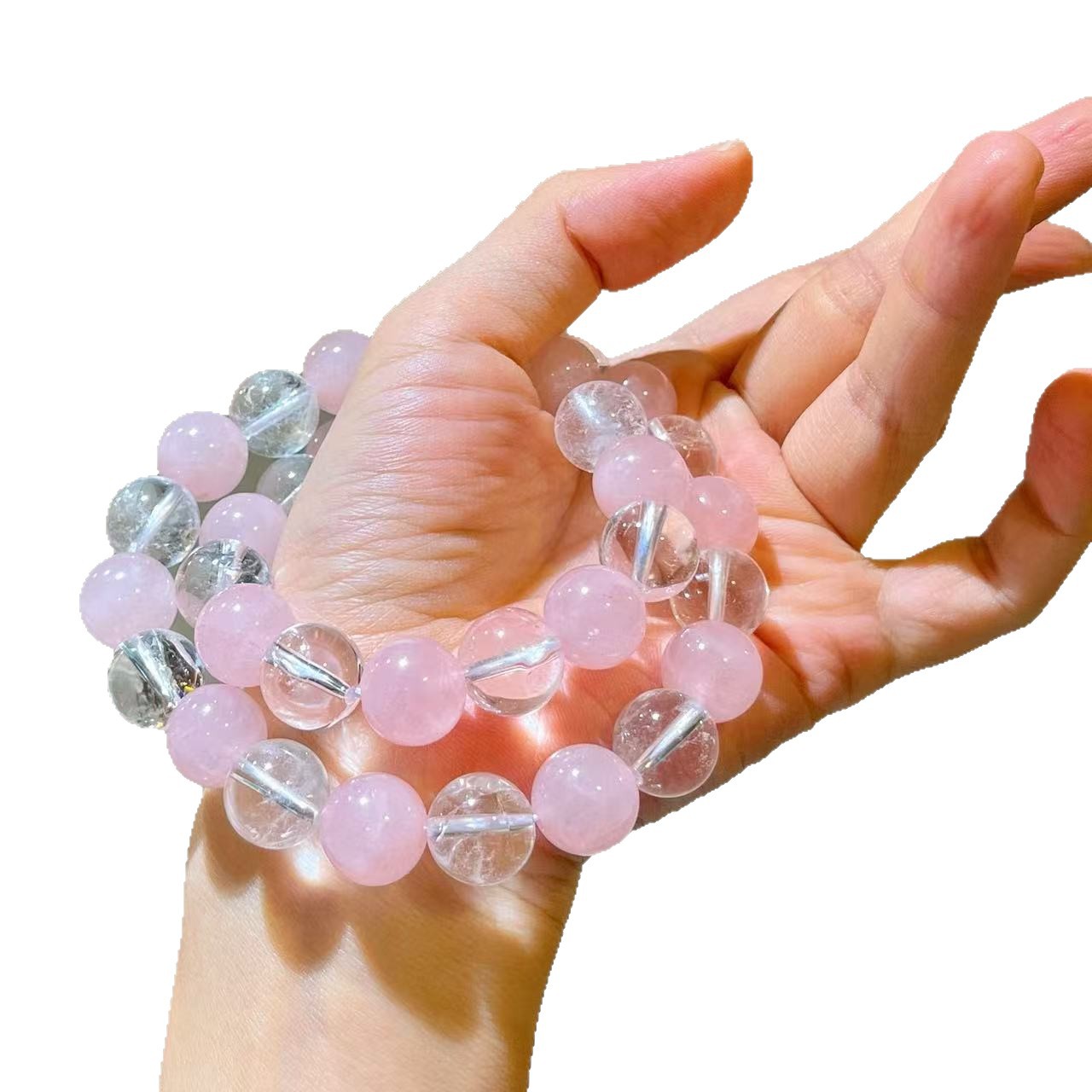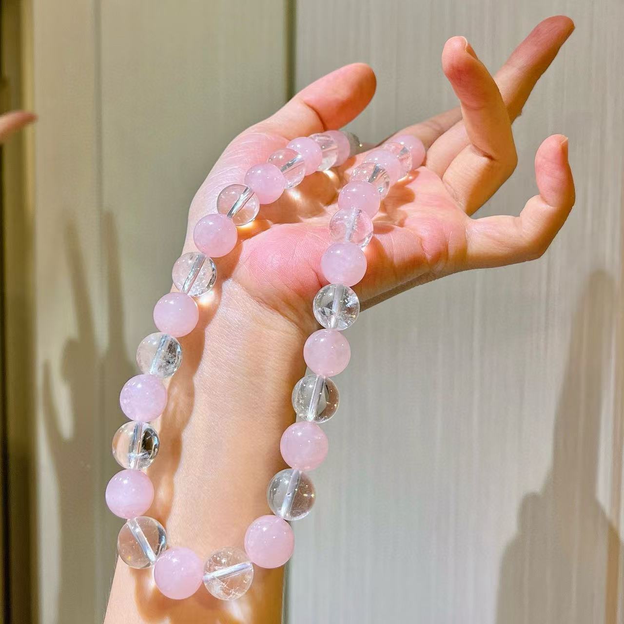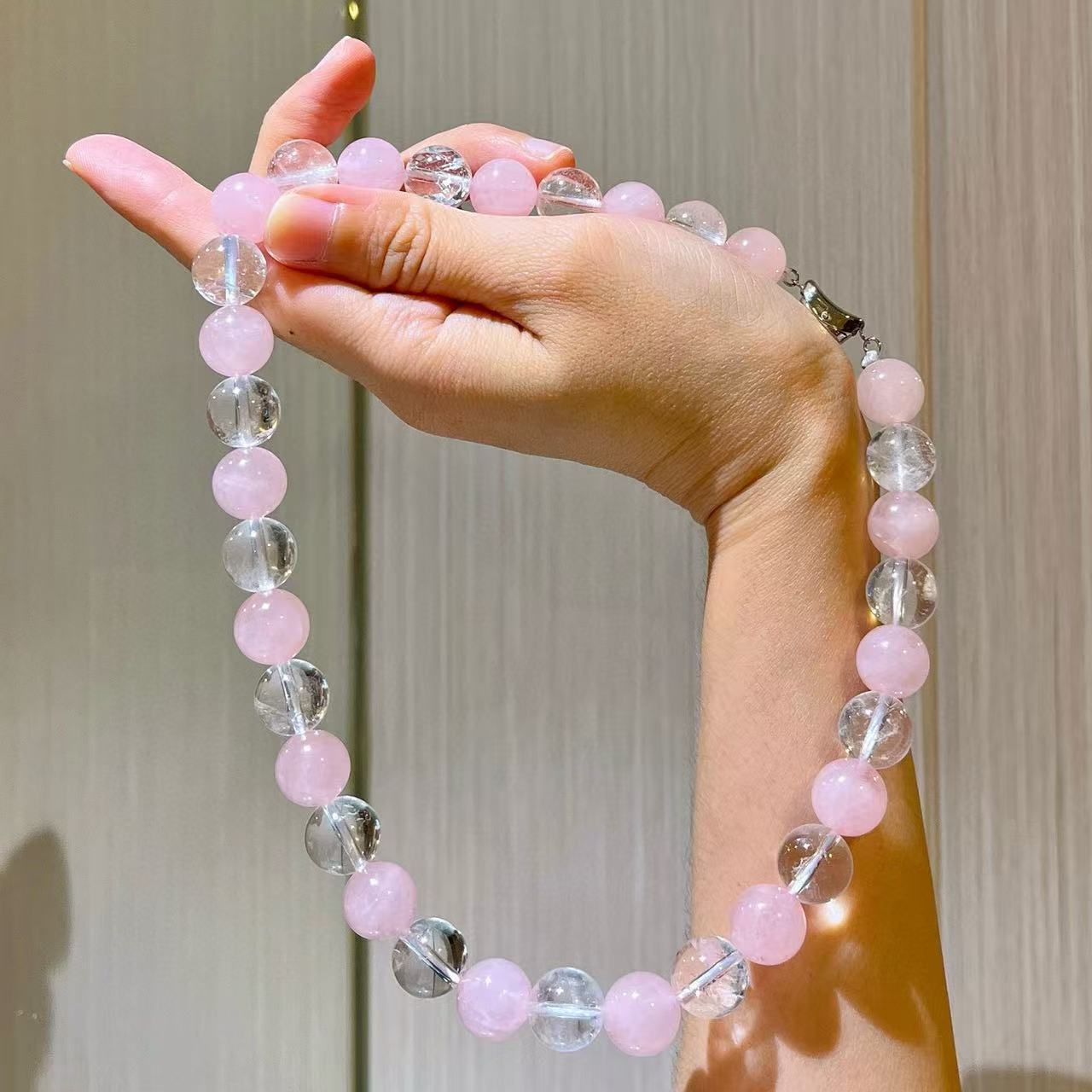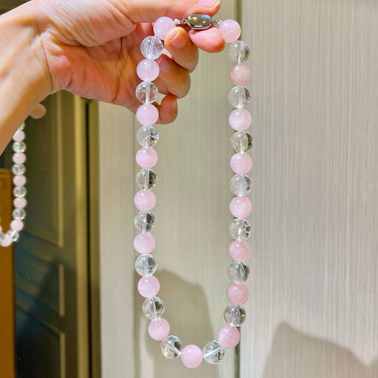 12mm大颗粒粉晶天然白水晶设计感项链