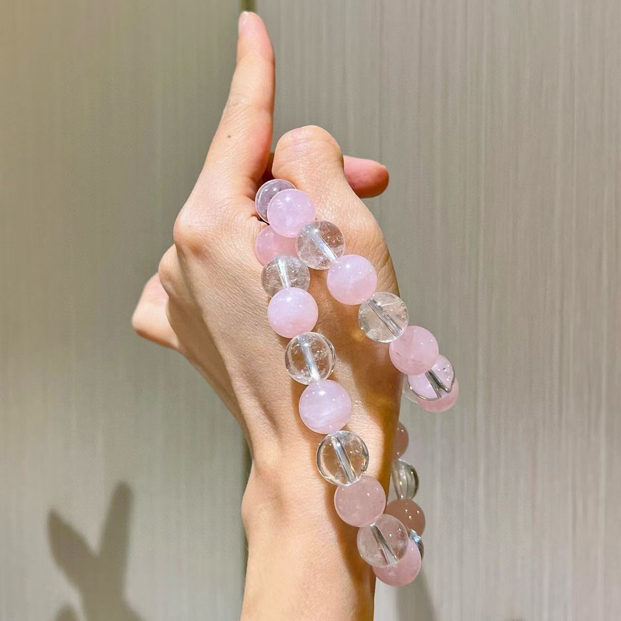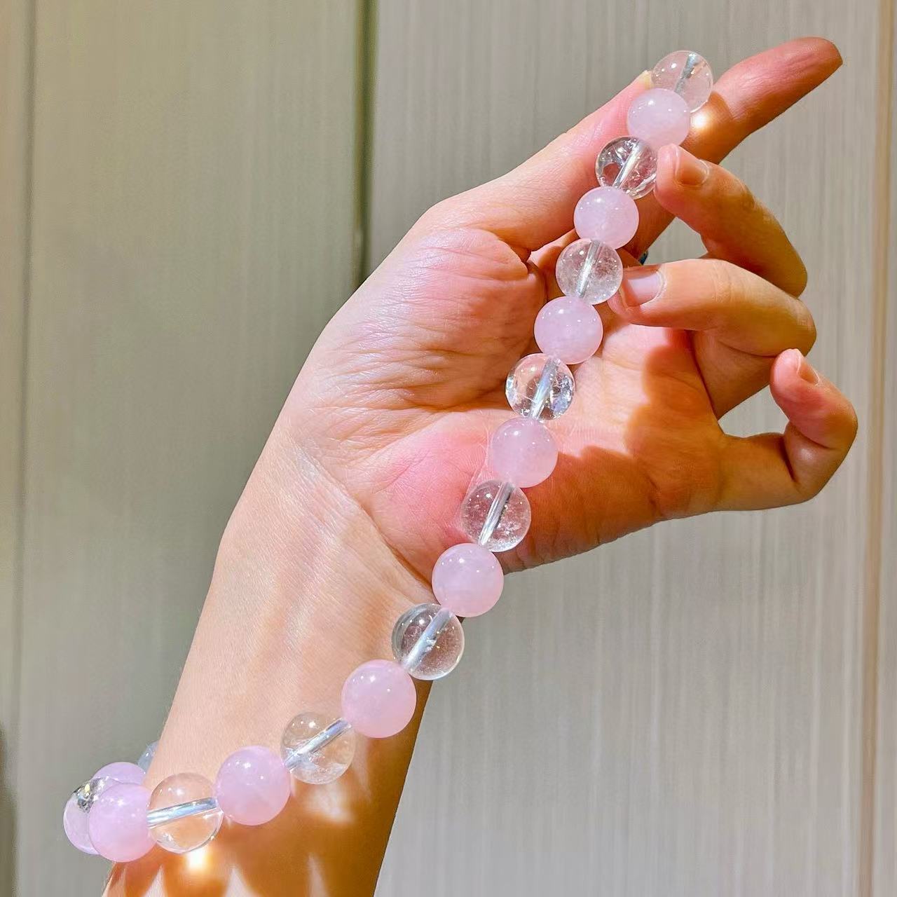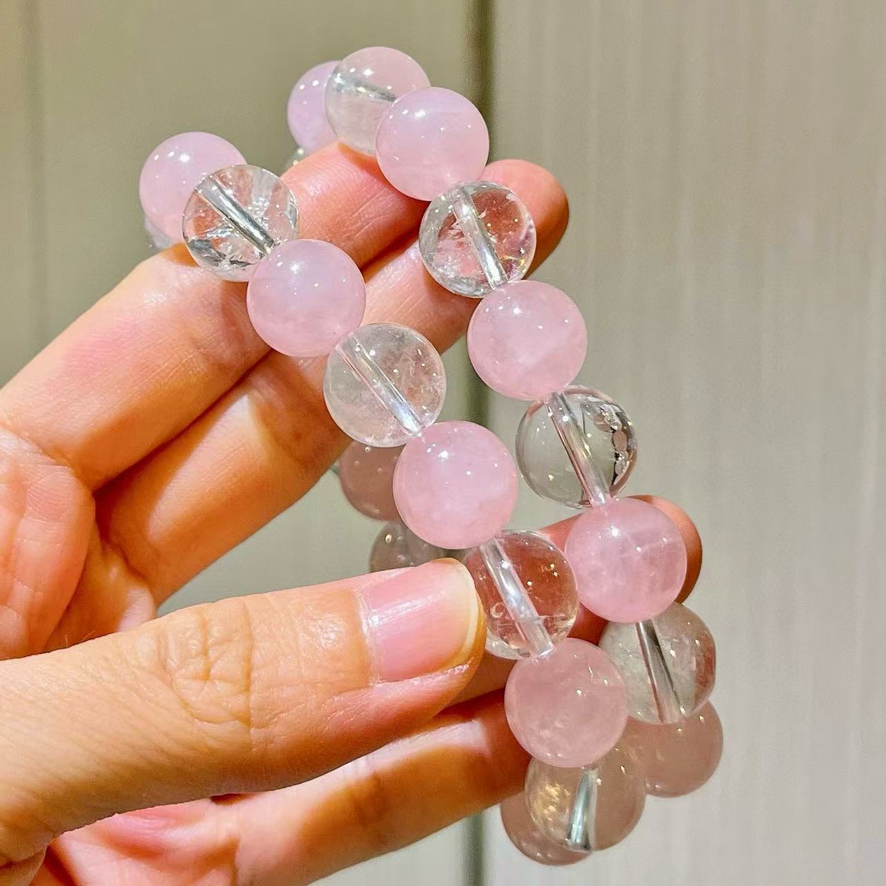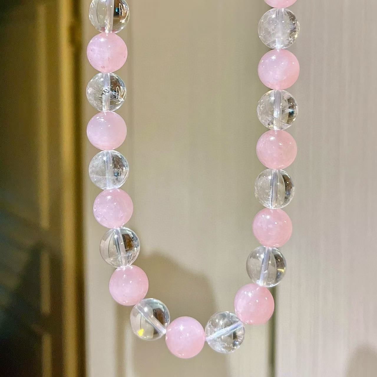 12mm大颗粒粉晶天然白水晶设计感项链