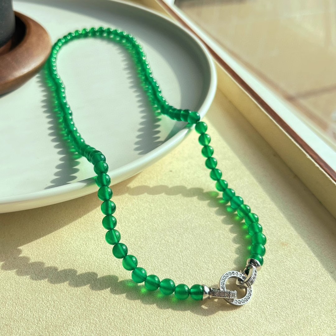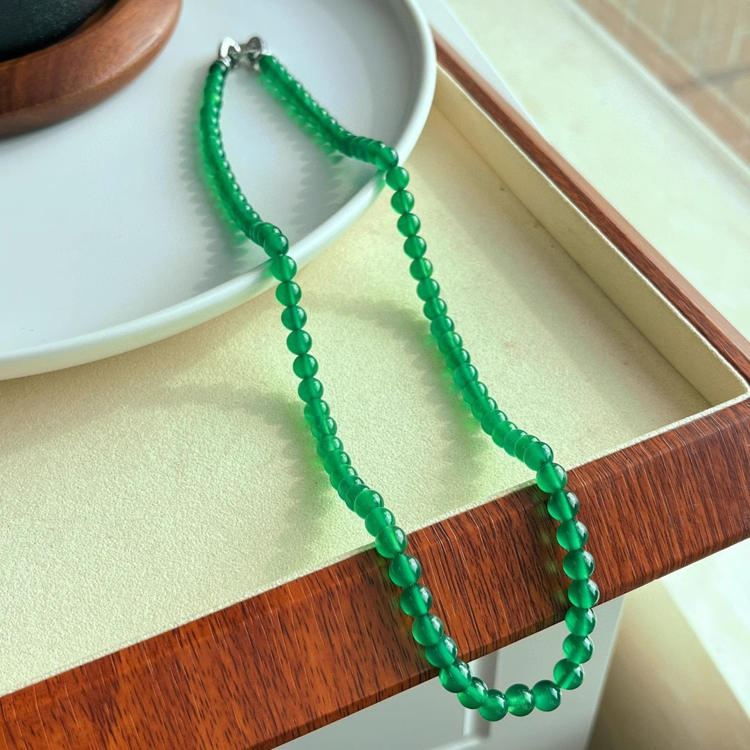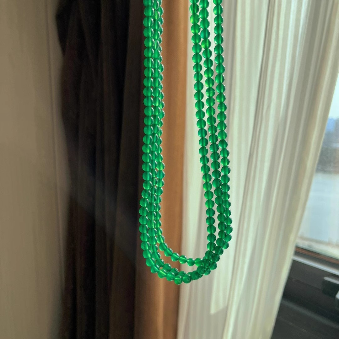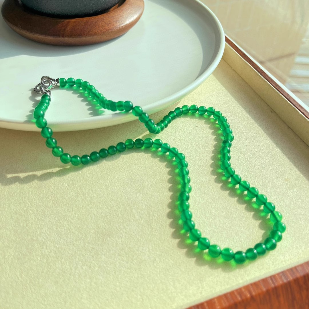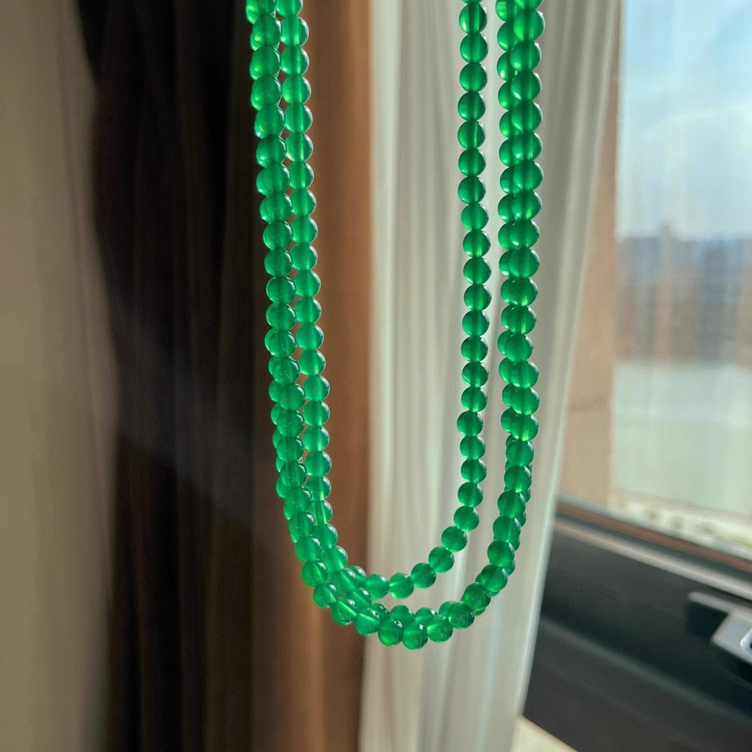 正阳绿天然冰种玉髓锁骨链6mm小米珠55厘米小众ins