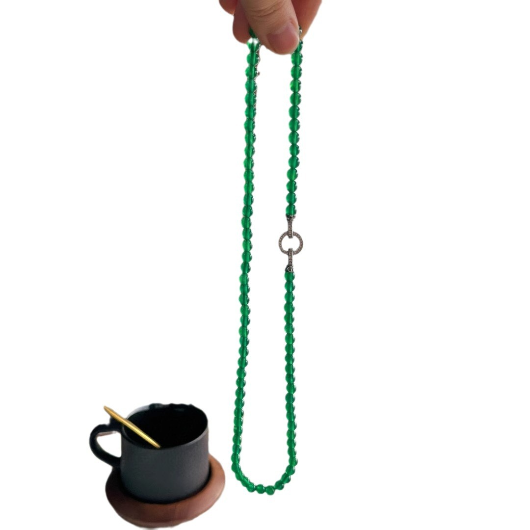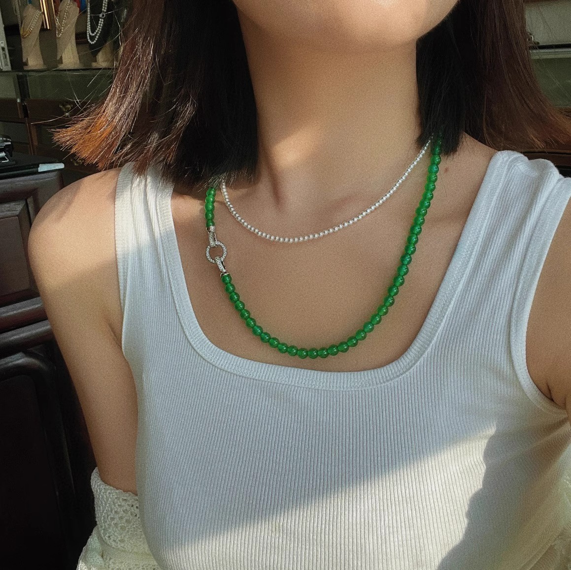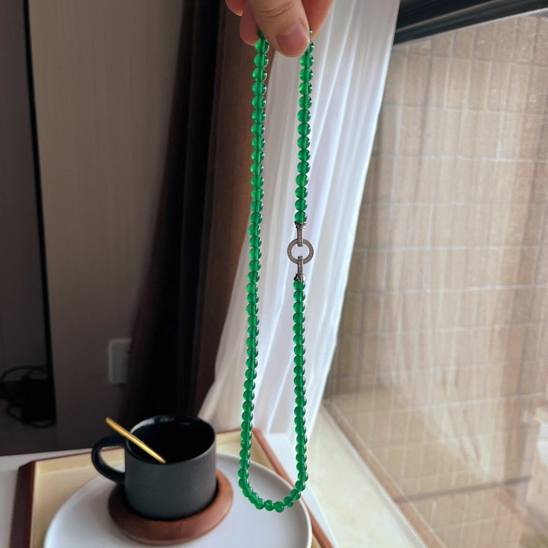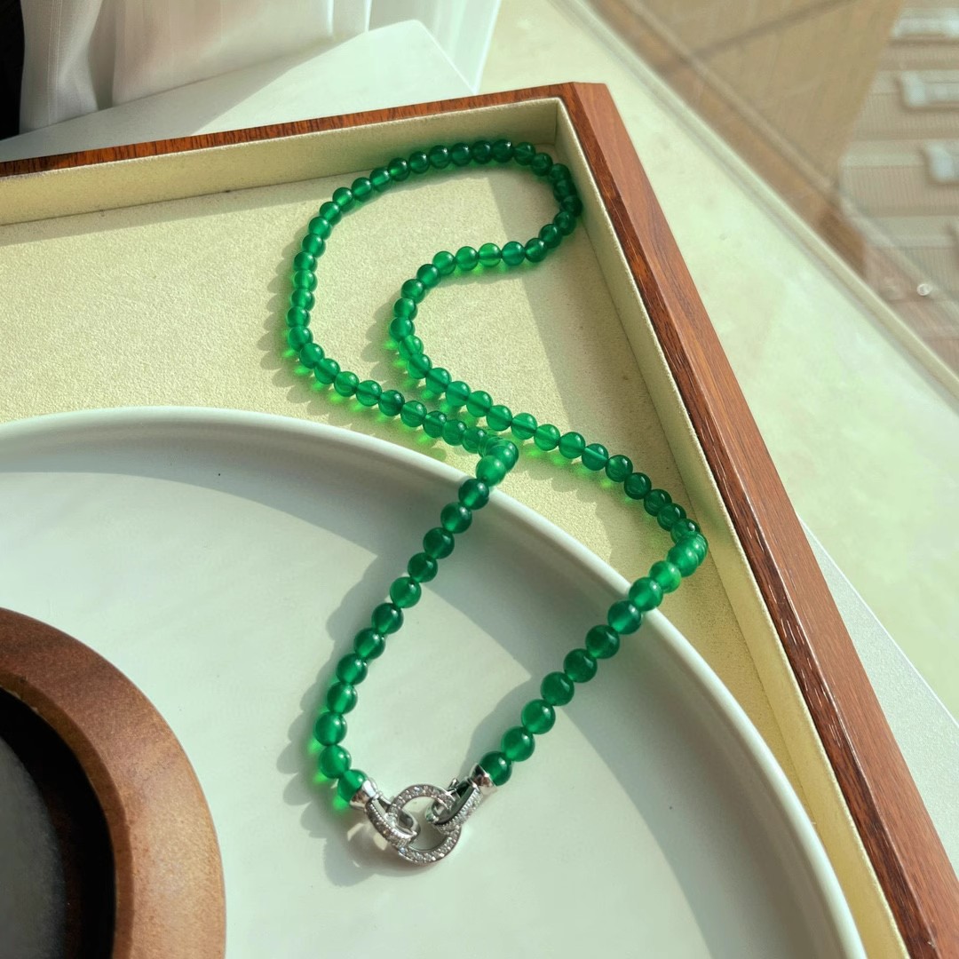 正阳绿天然冰种玉髓锁骨链6mm小米珠55厘米小众ins