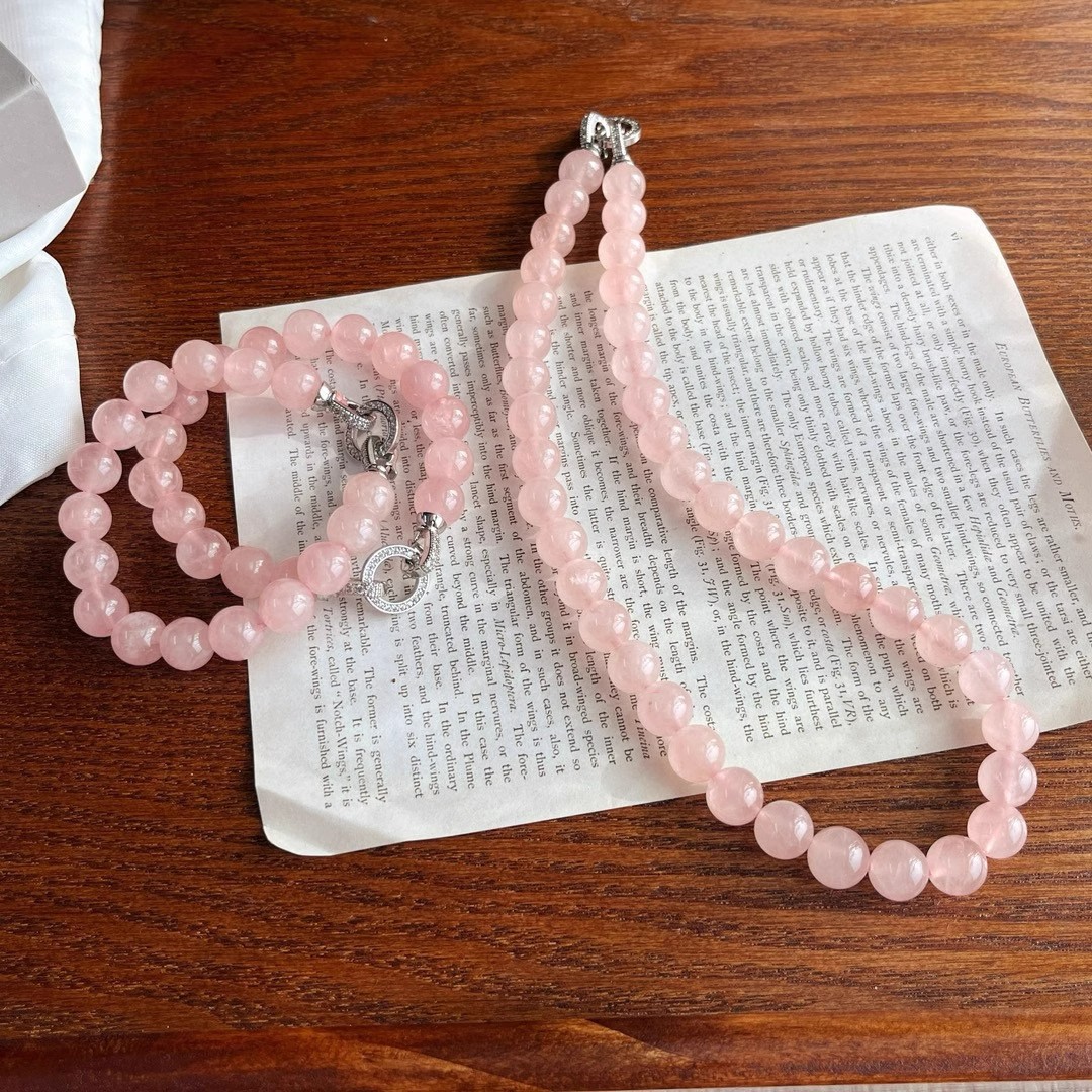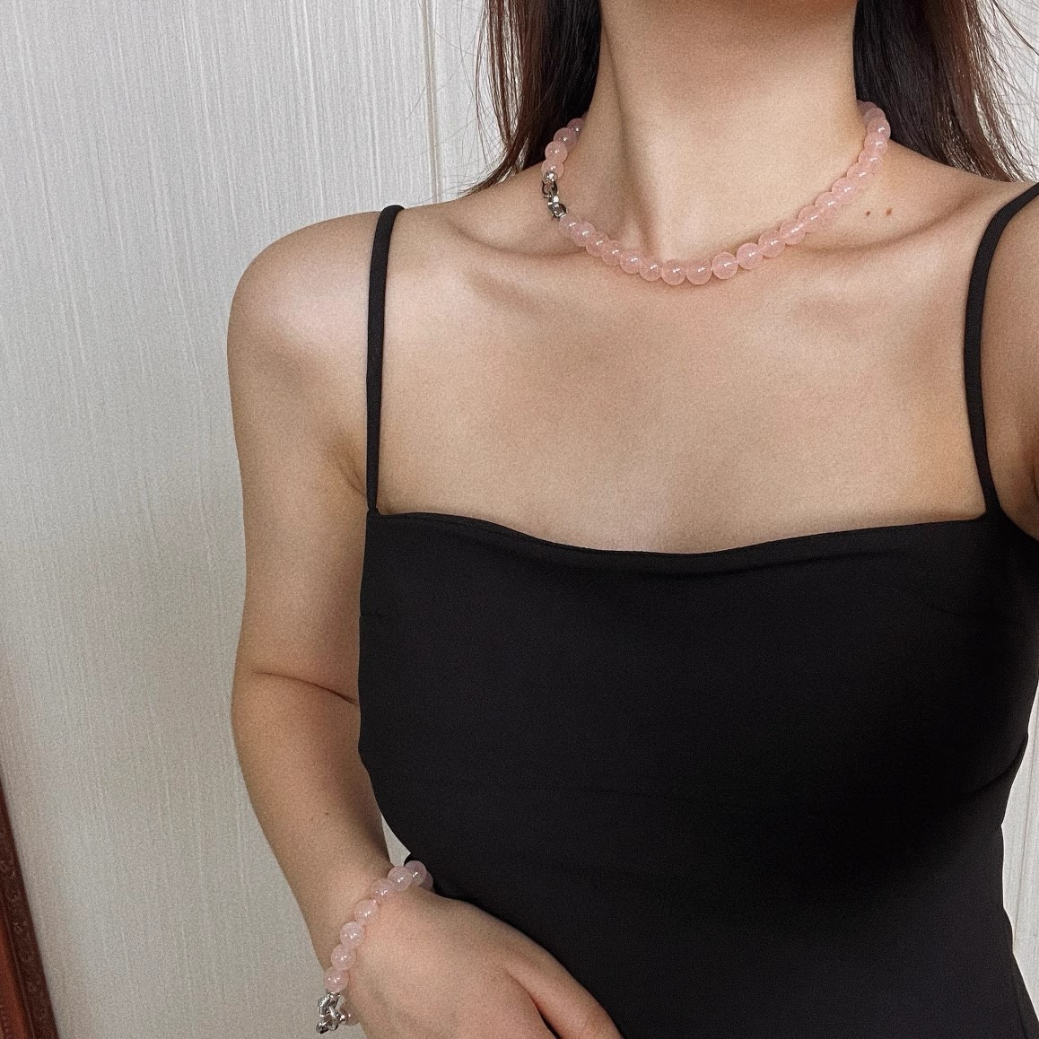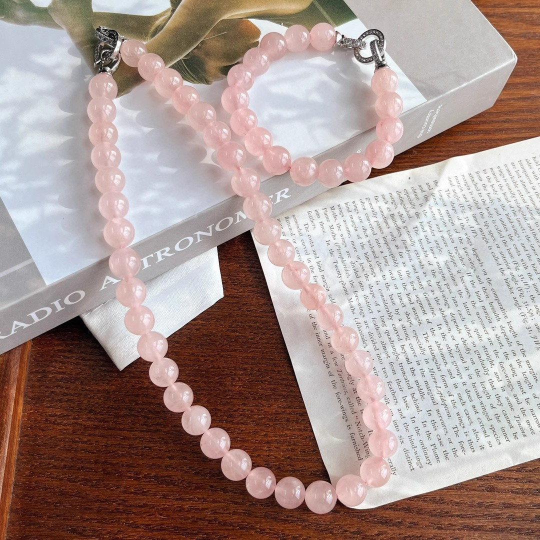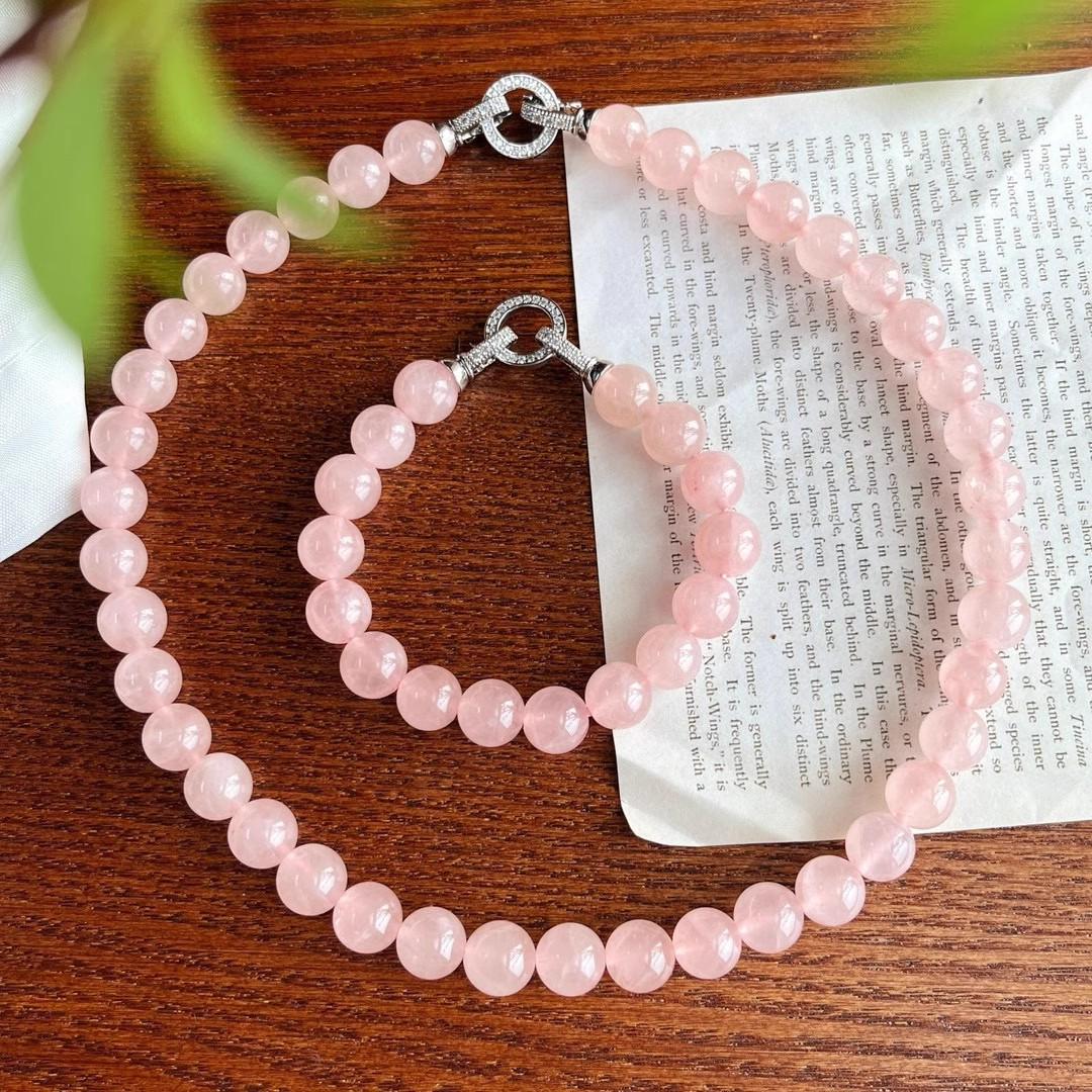 10mm精品西柚粉天然马达加斯加粉晶项链水晶手链