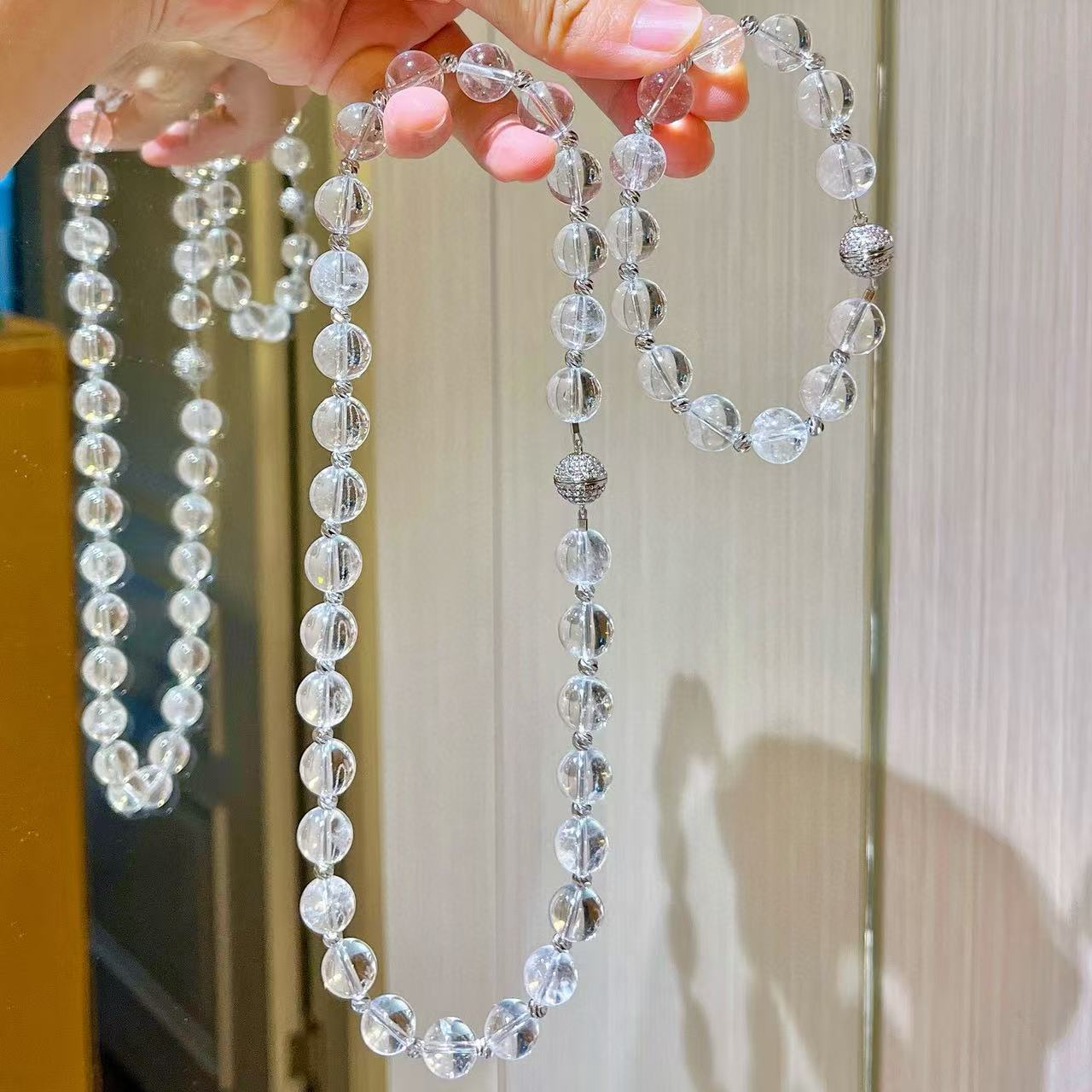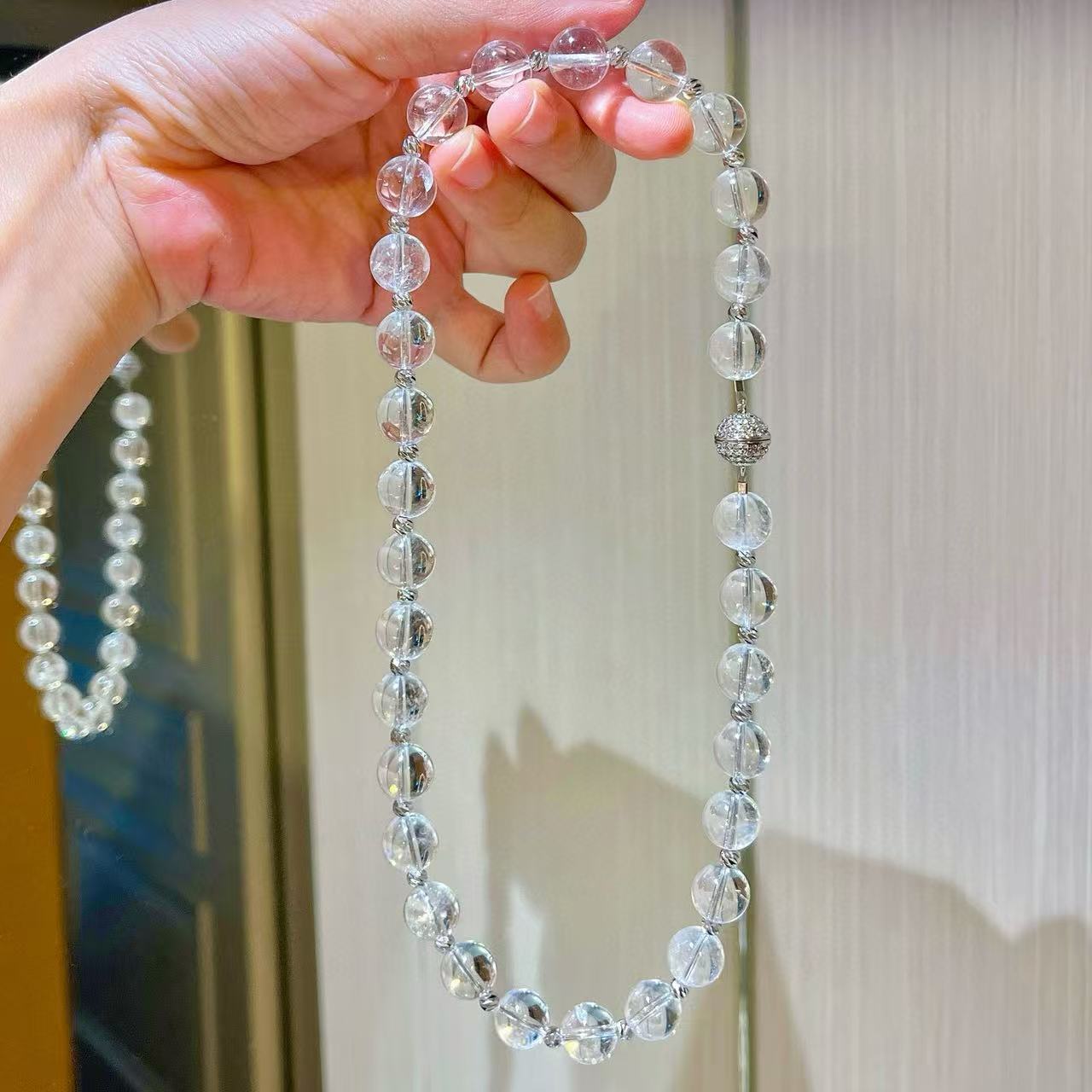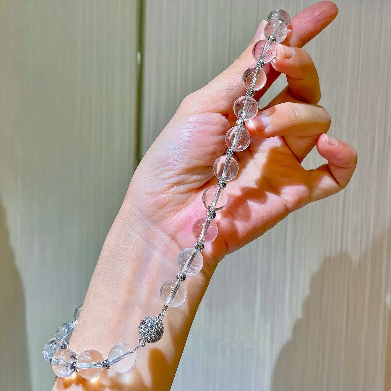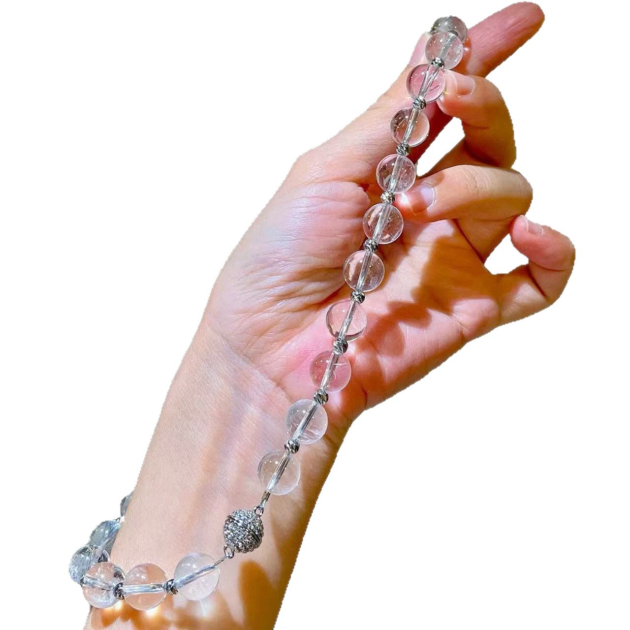 10mm秋冬新款天然白水晶设计感手链项链套装