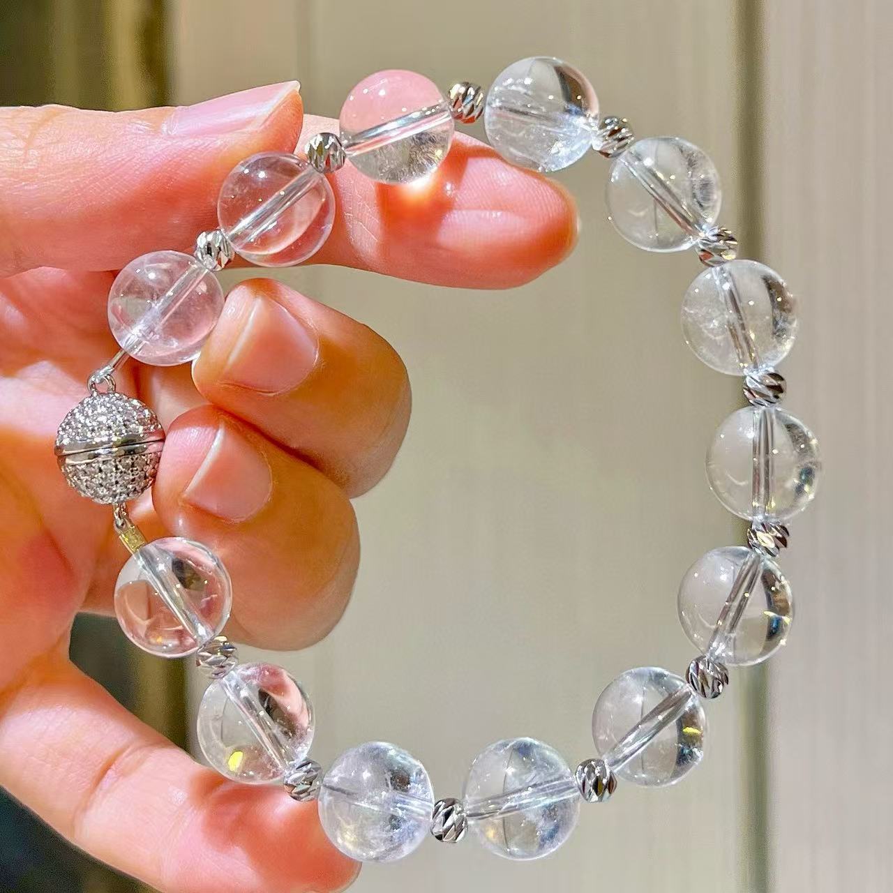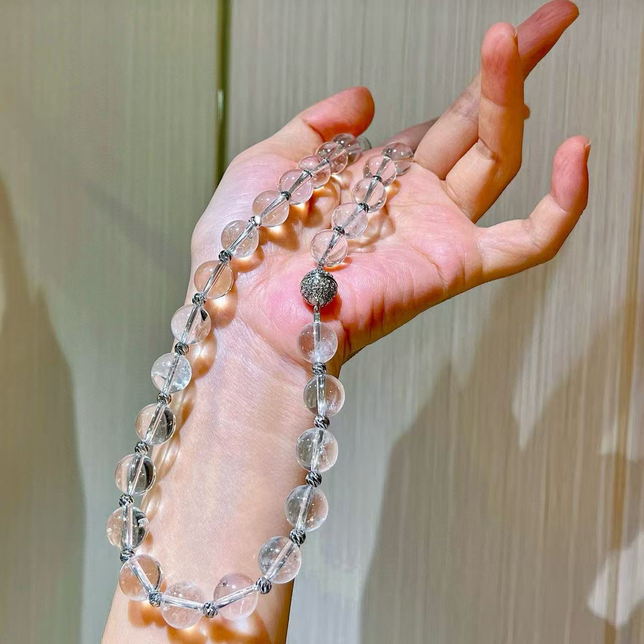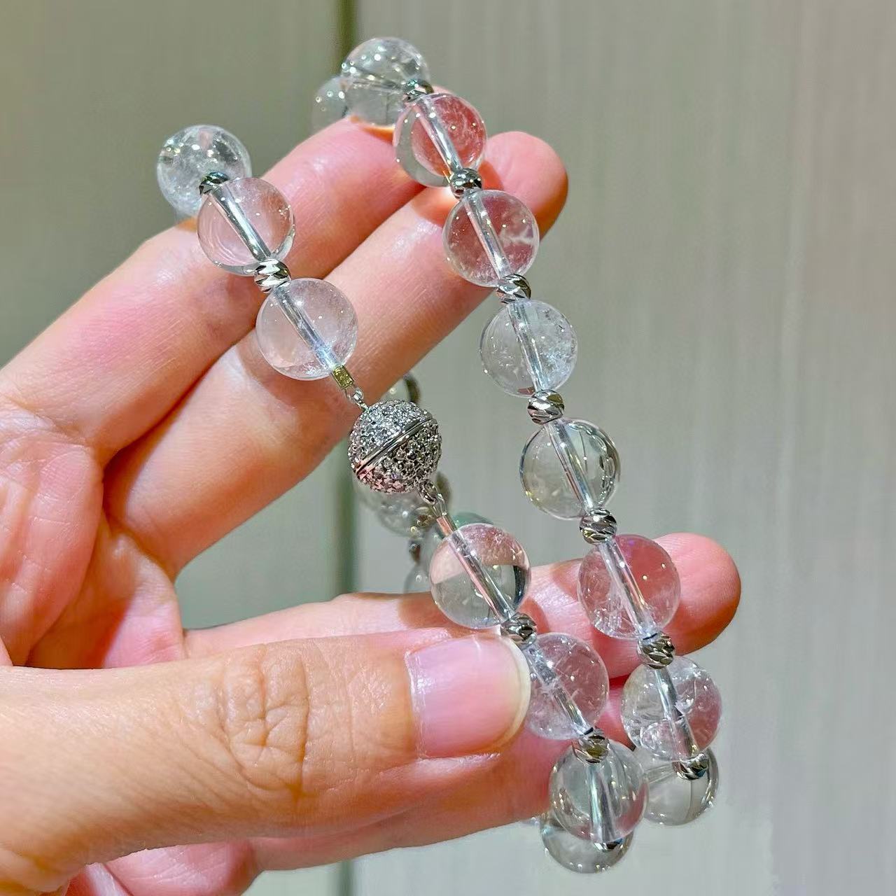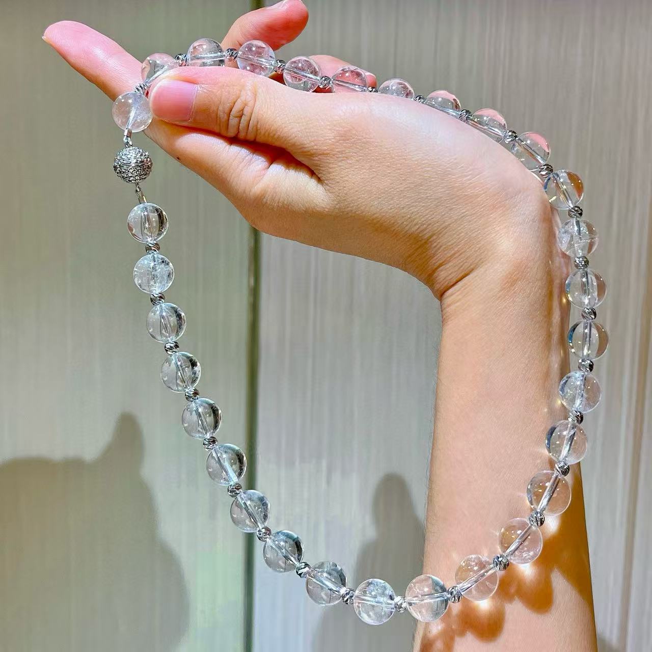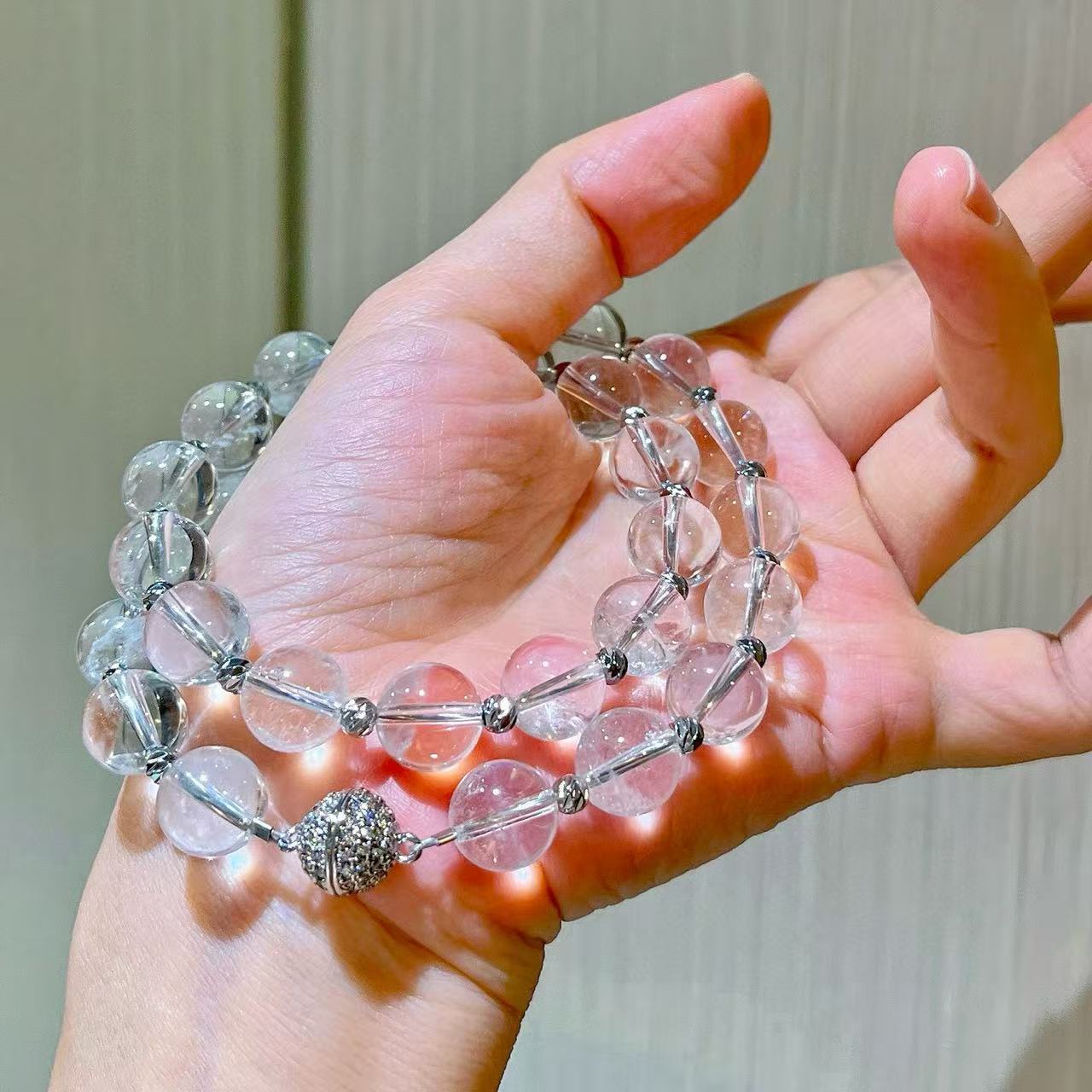 10mm秋冬新款天然白水晶设计感手链项链套装