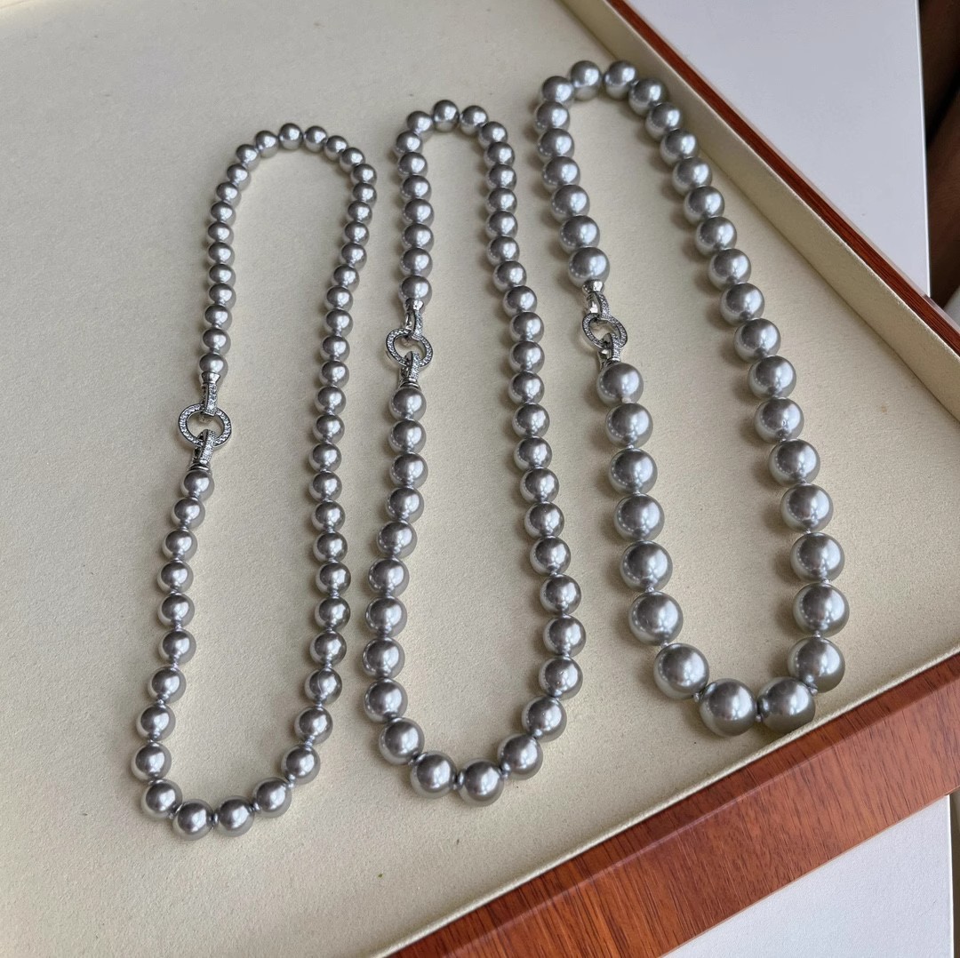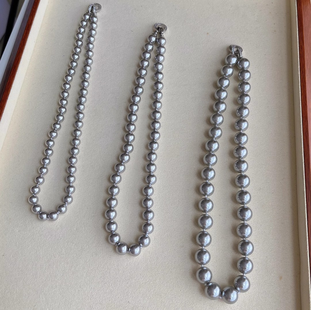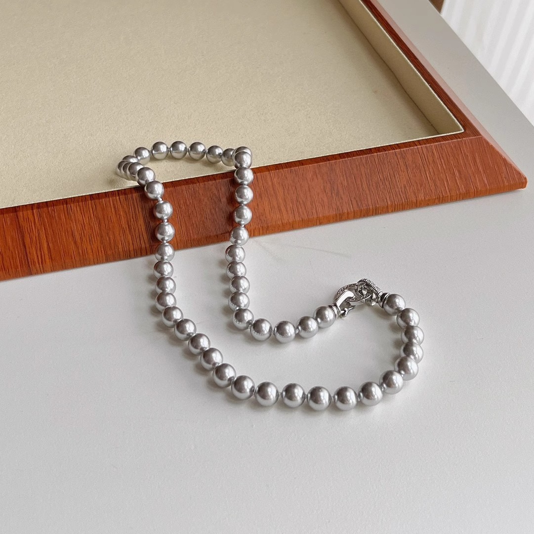 真多麻色银灰强光贝珠珍珠项链女2023年感小众简约百搭扣