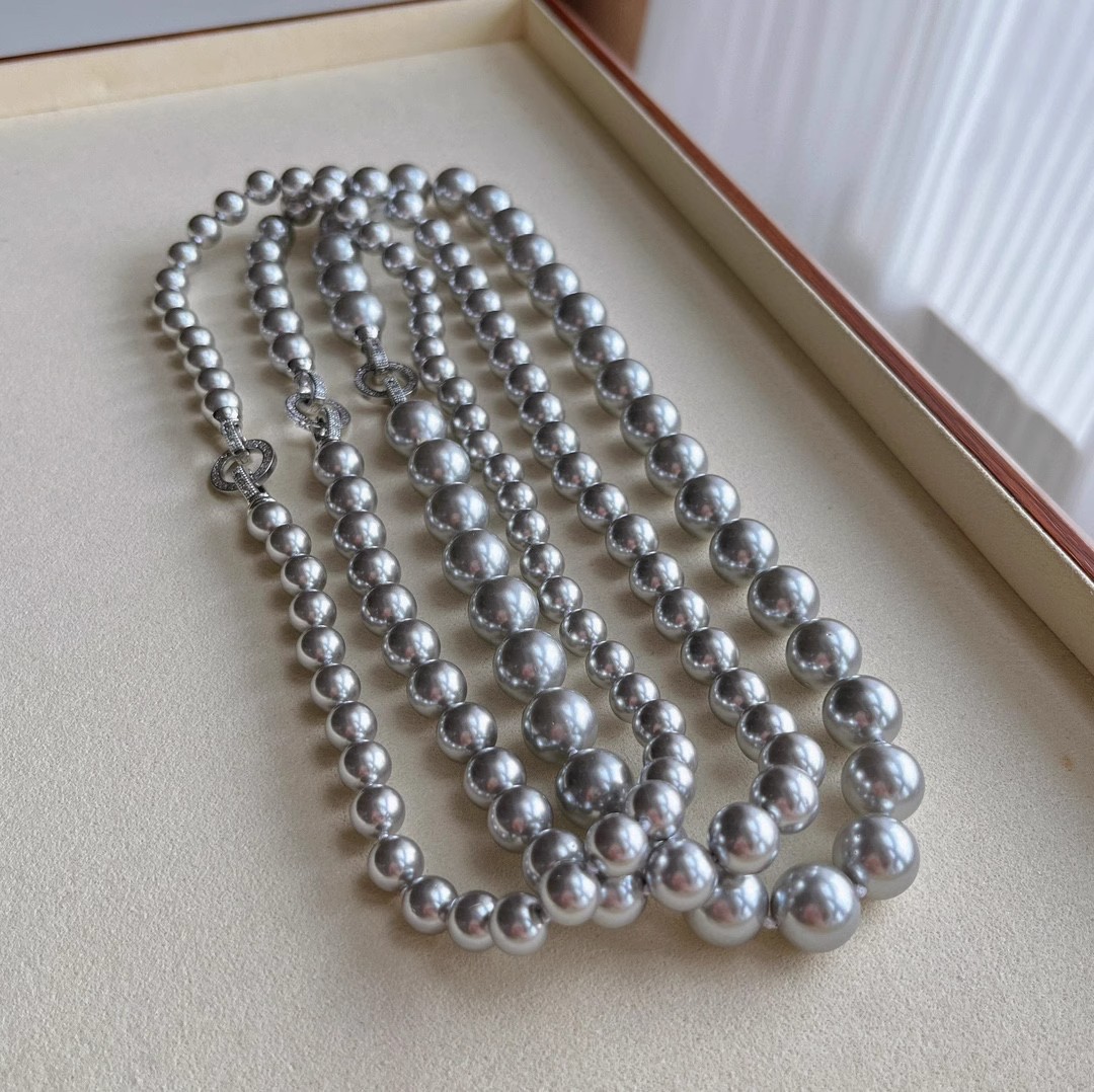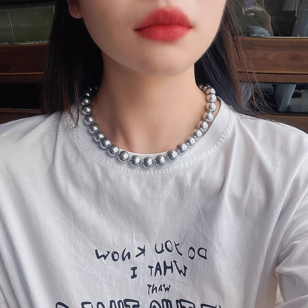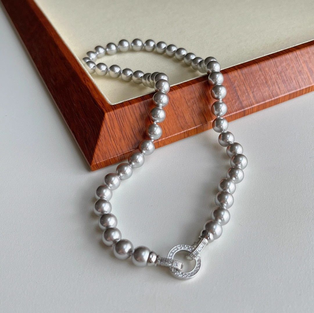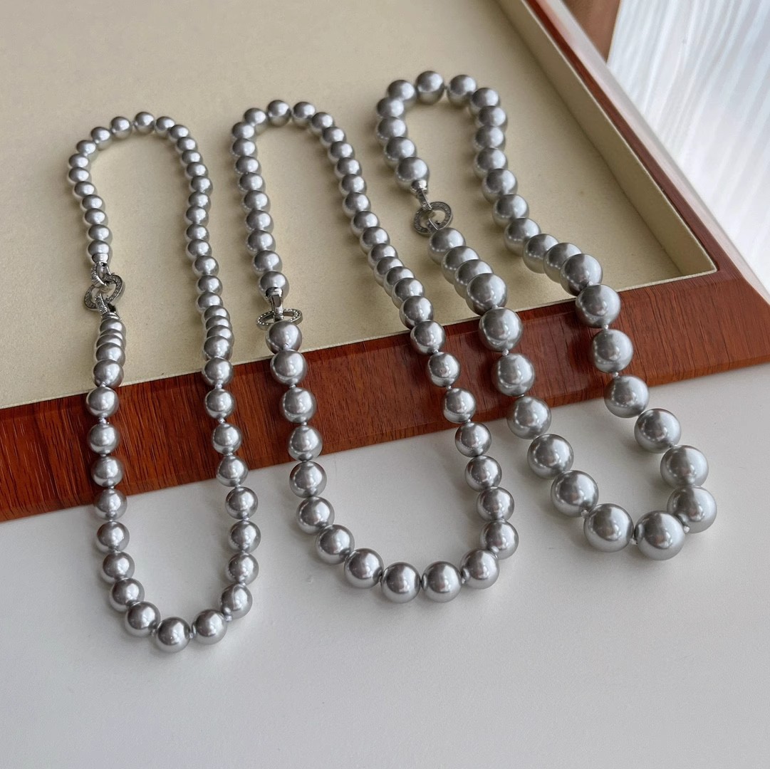 真多麻色银灰强光贝珠珍珠项链女2023年感小众简约百搭扣