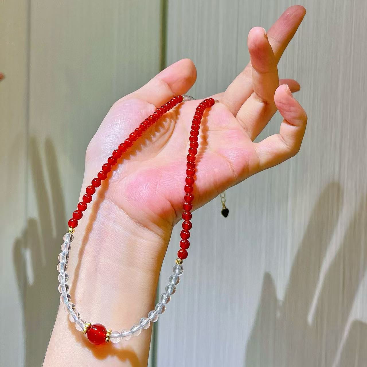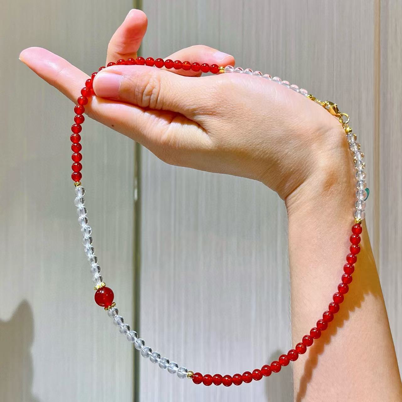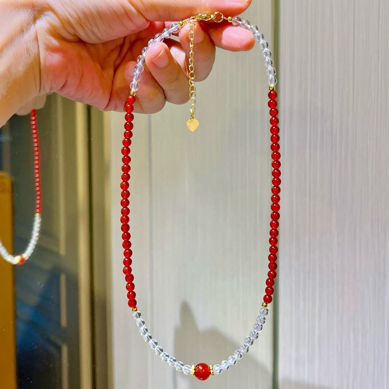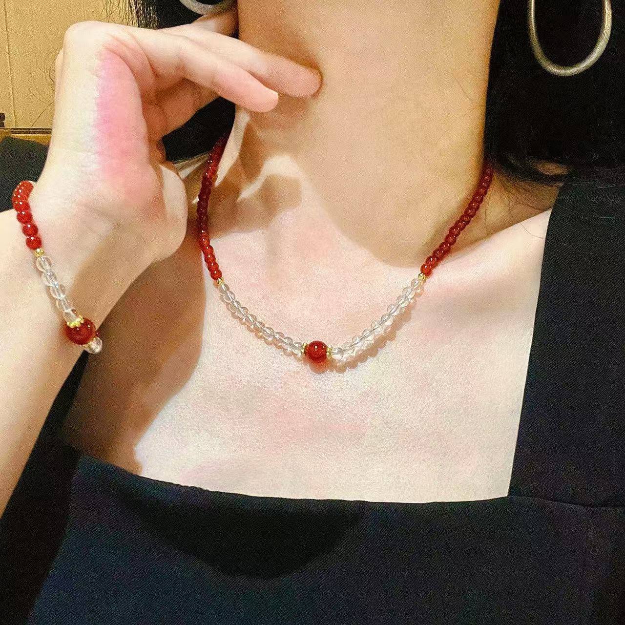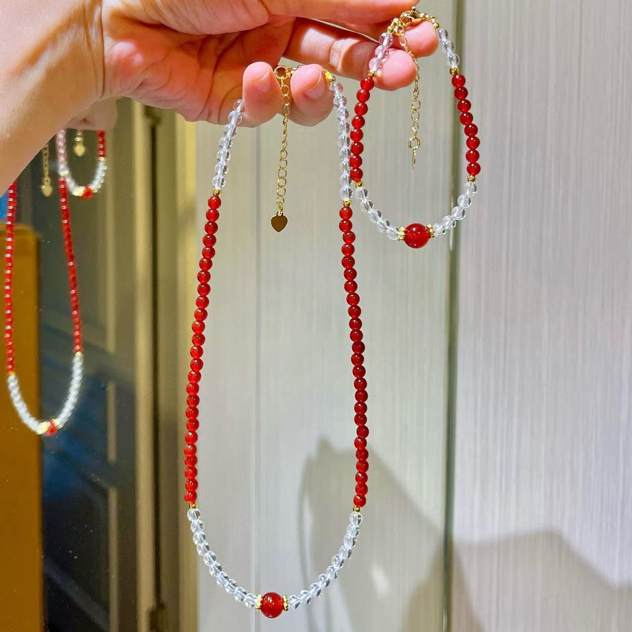 4m高品质高定高冰天然白水晶红玉髓设计感手链项链套装