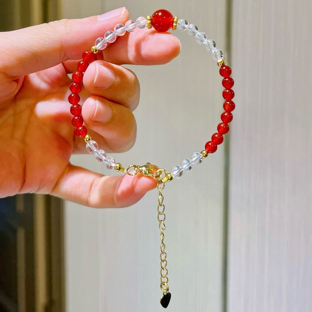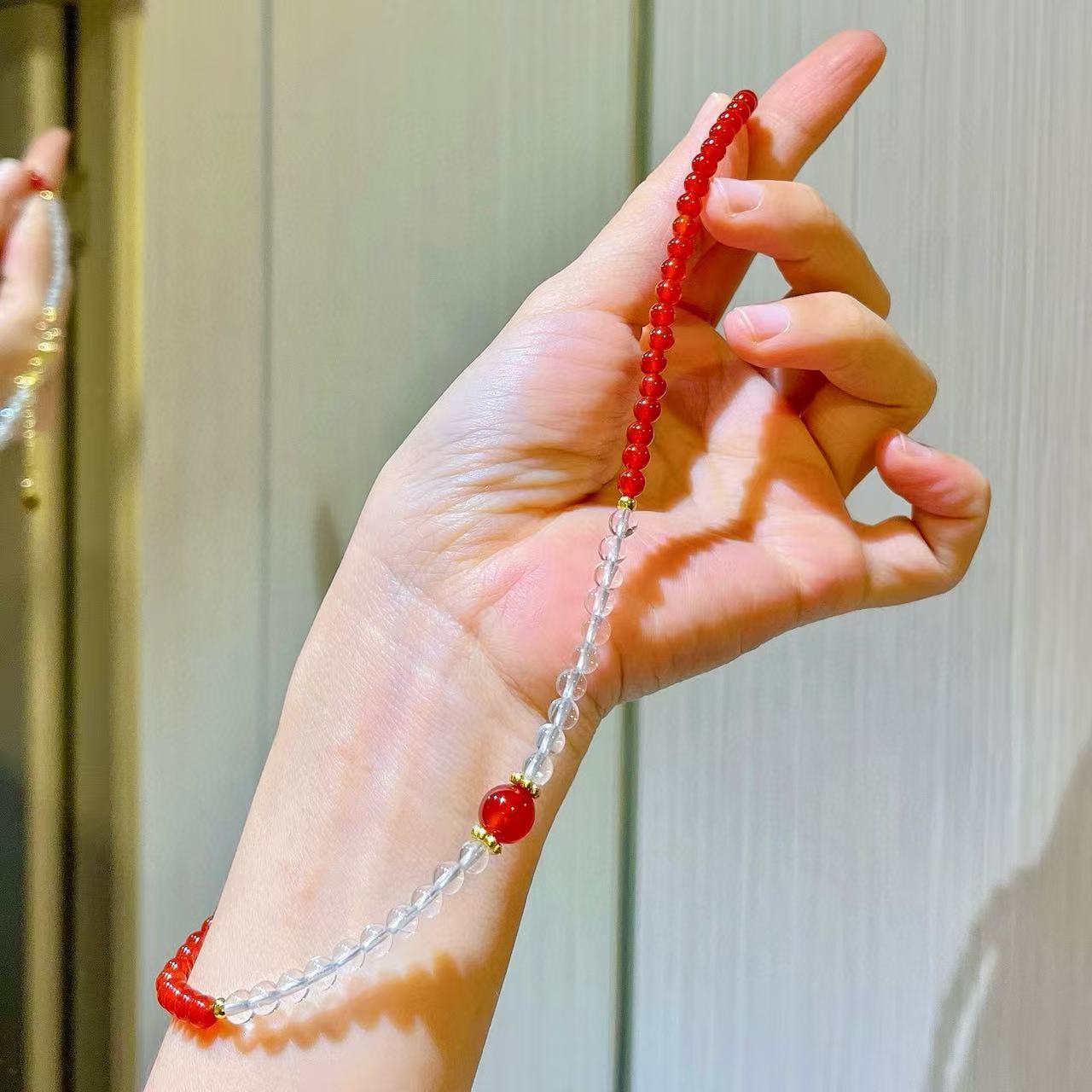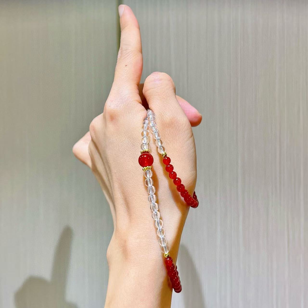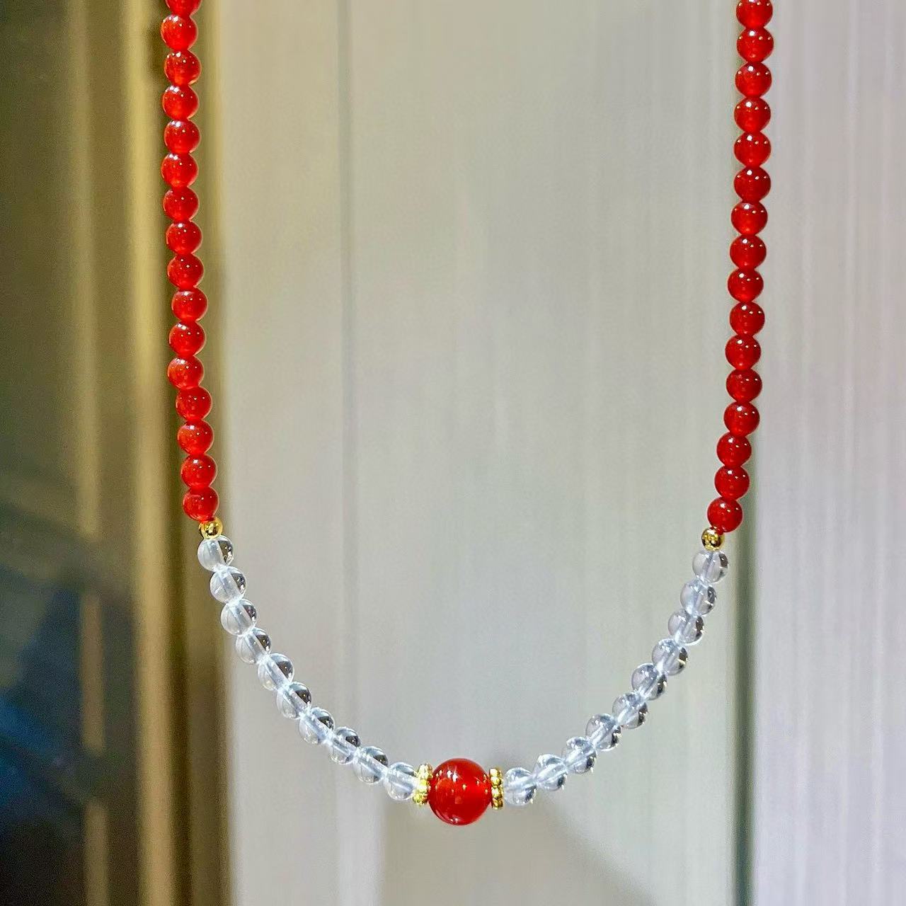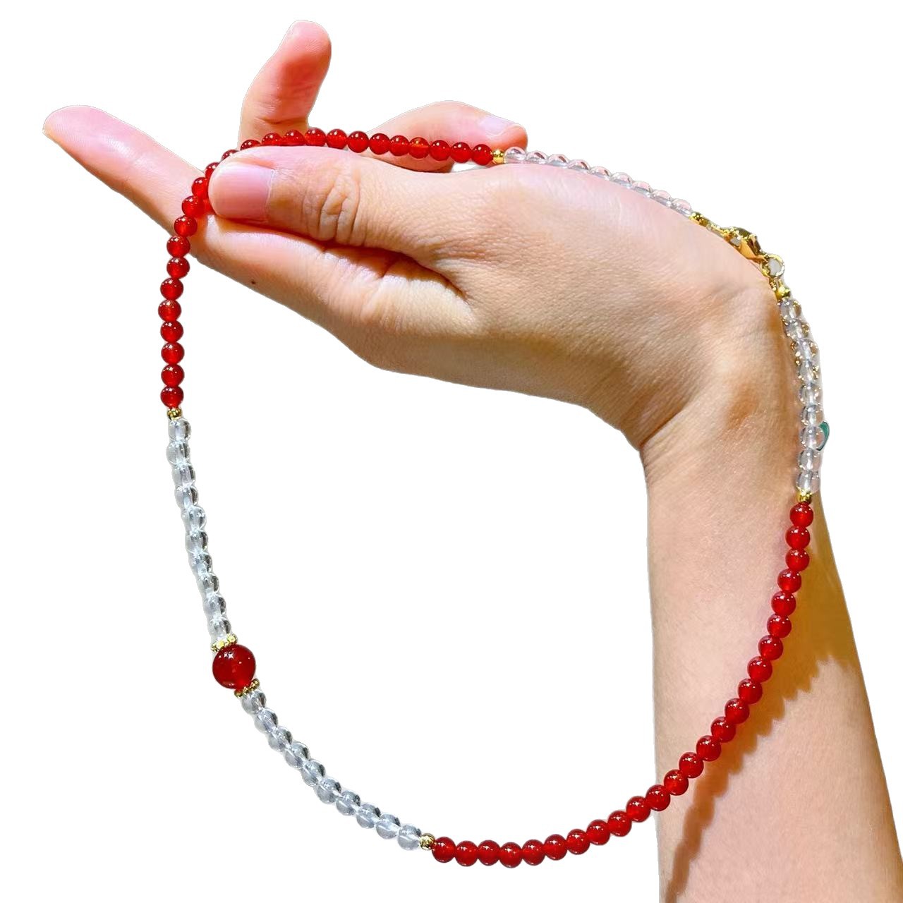4m高品质高定高冰天然白水晶红玉髓设计感手链项链套装