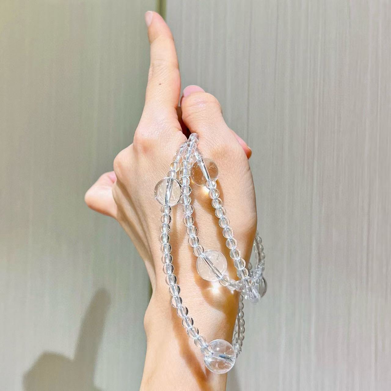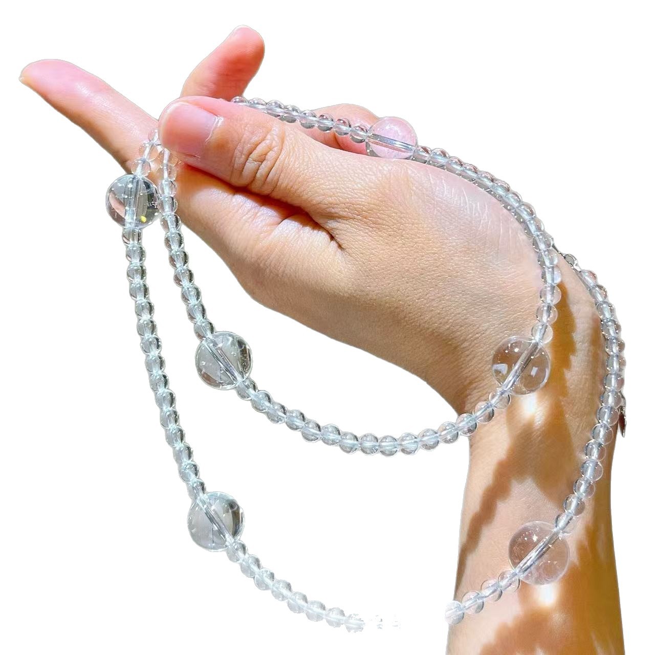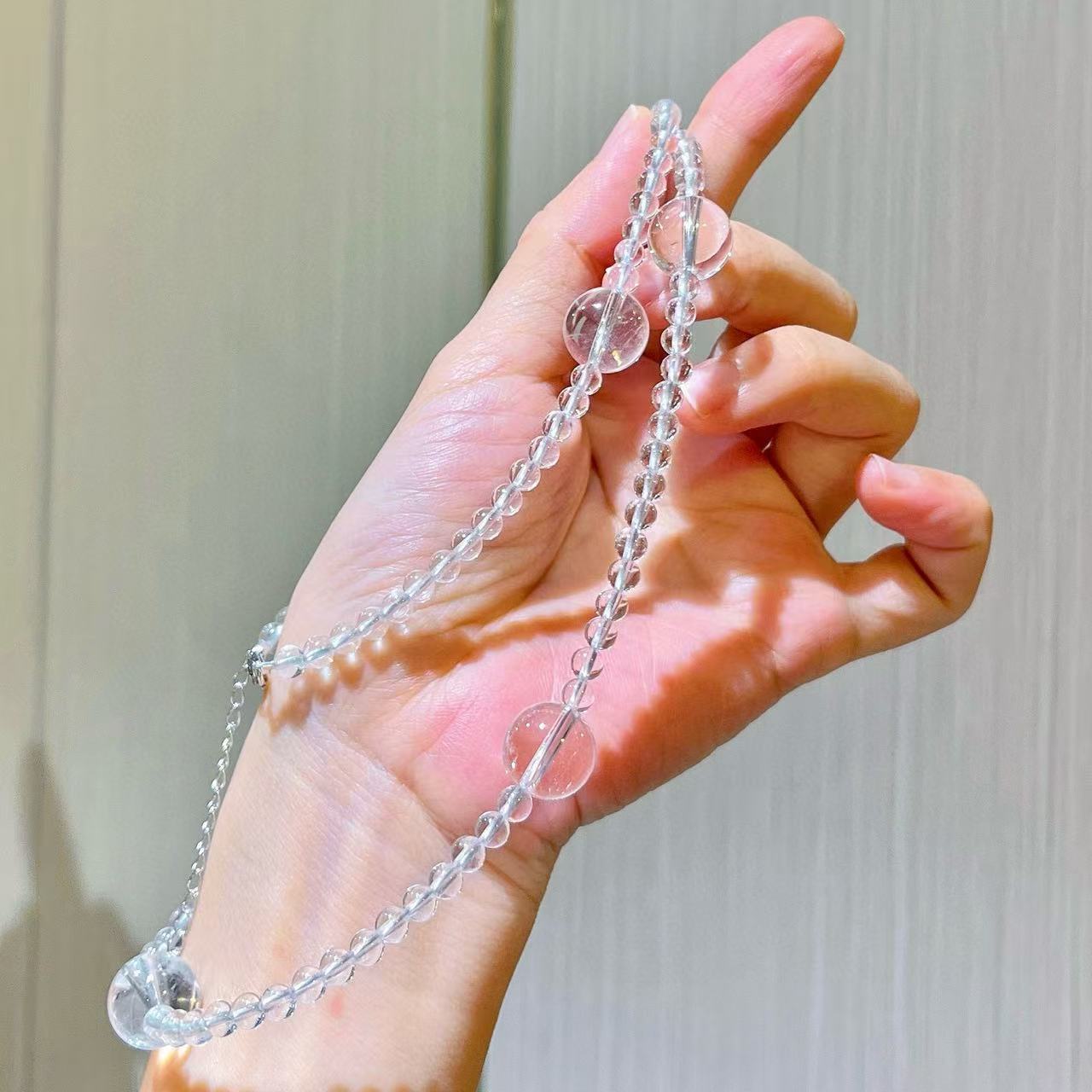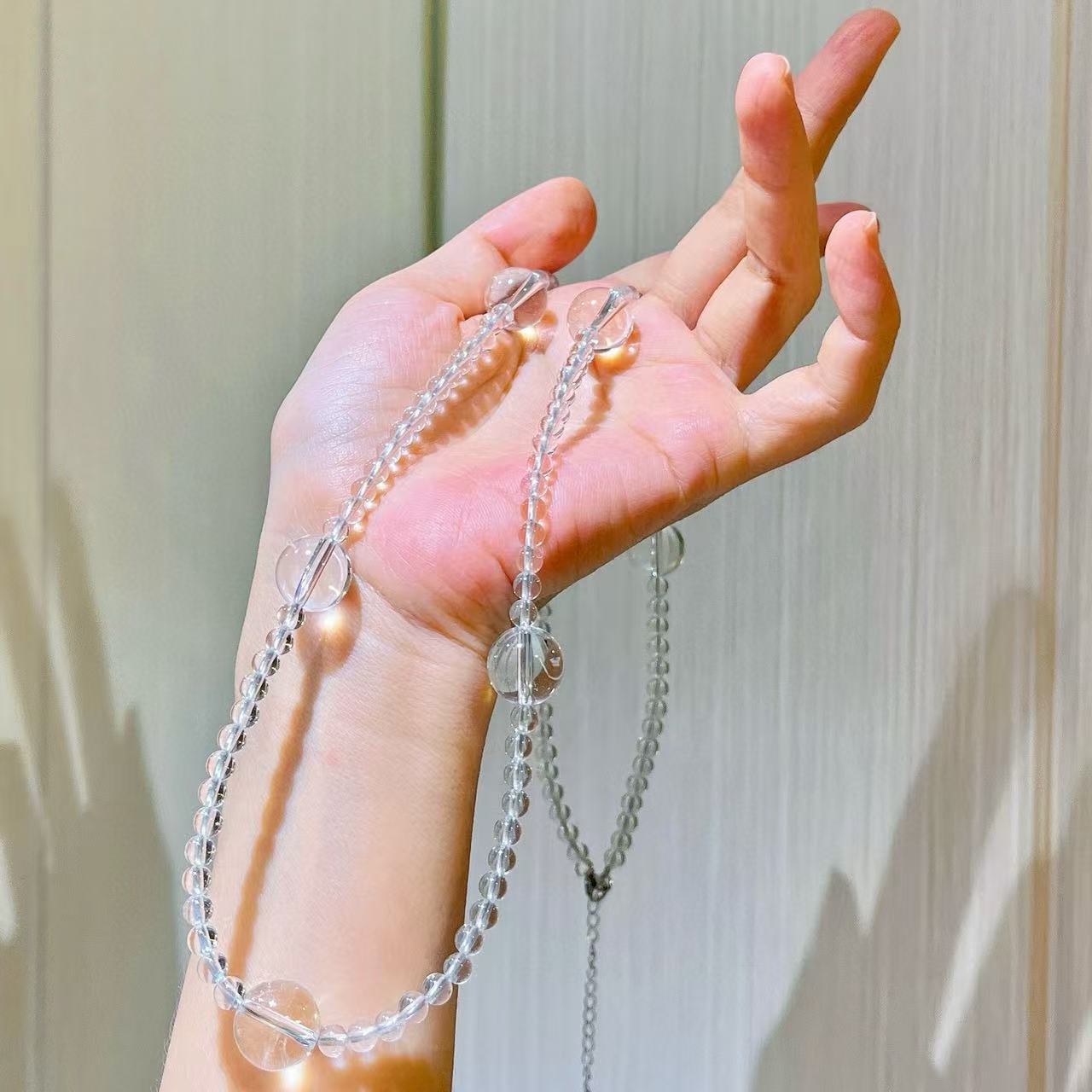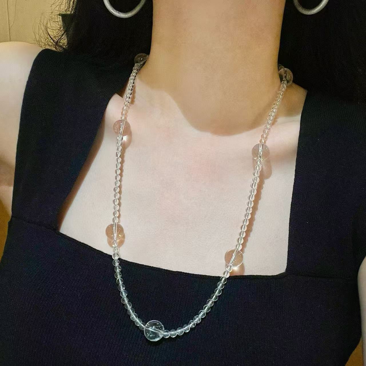 925银高品质4-12mm天然冰透白水晶设计感项链毛衣链