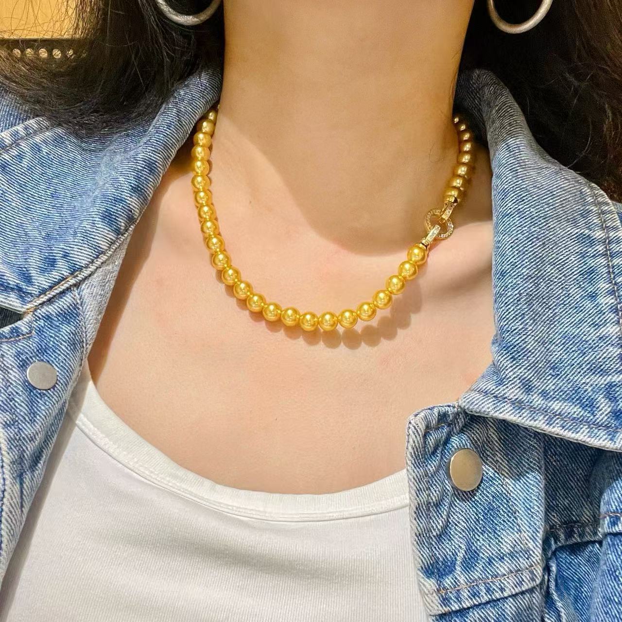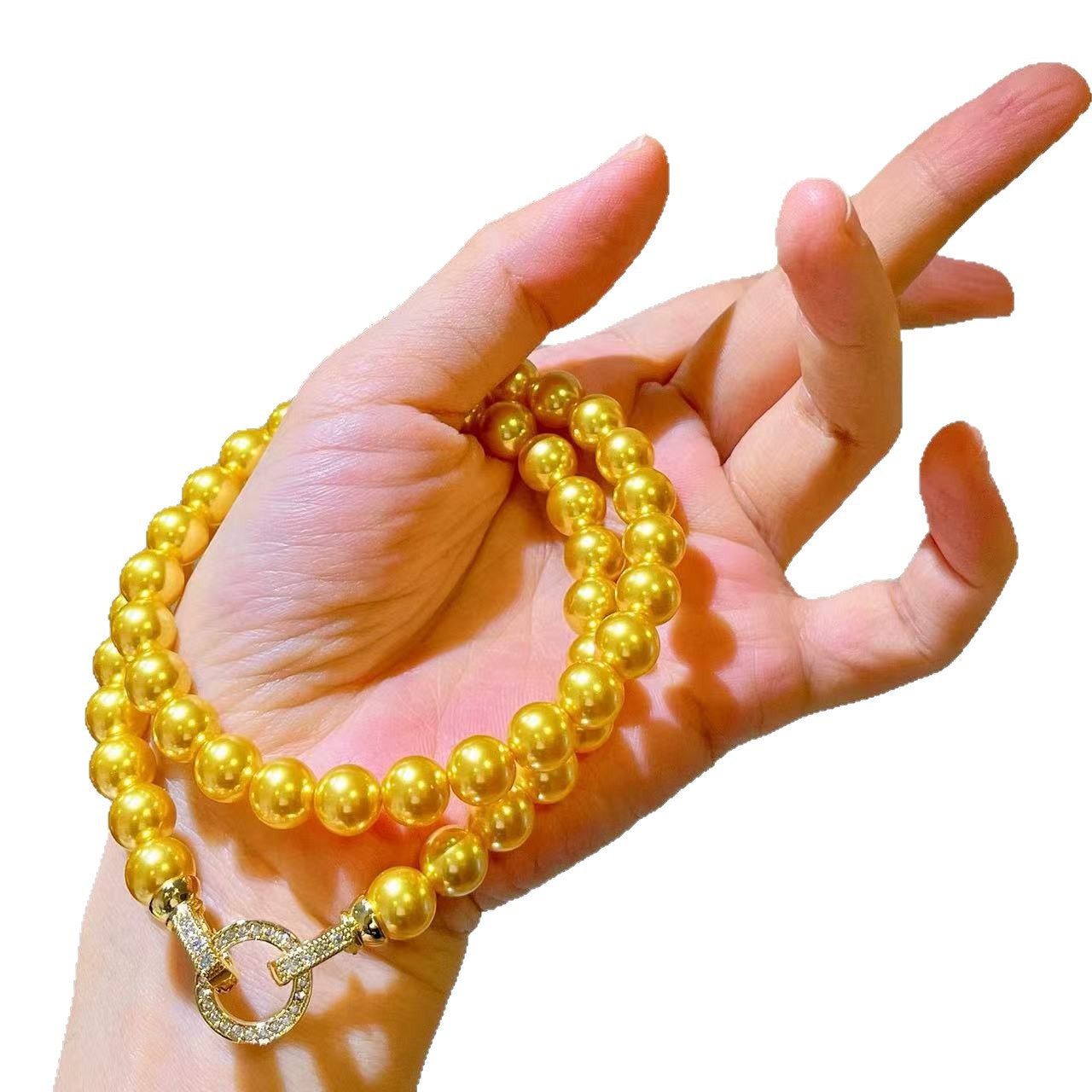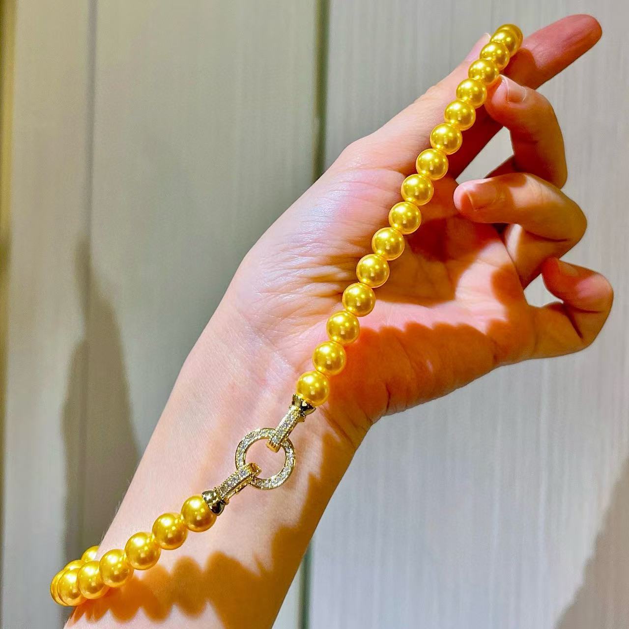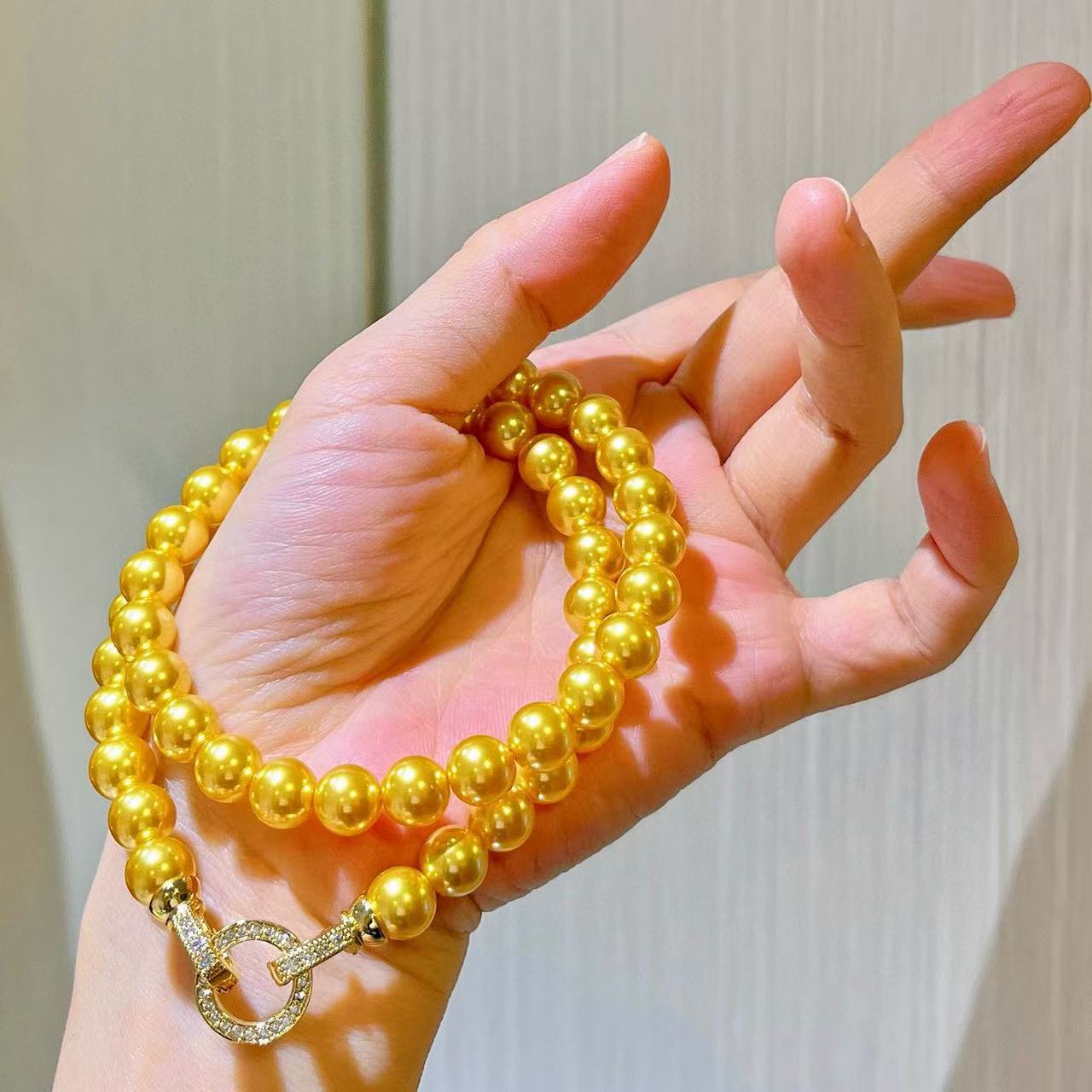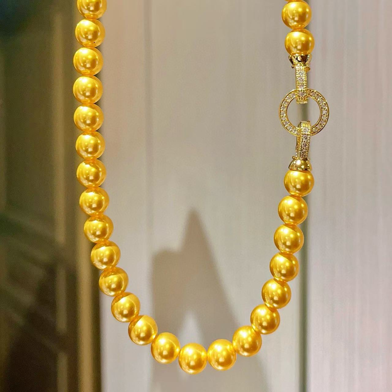 8mm法式高品质高光人造水晶菲律宾金色大溪地珍珠项链锁骨链