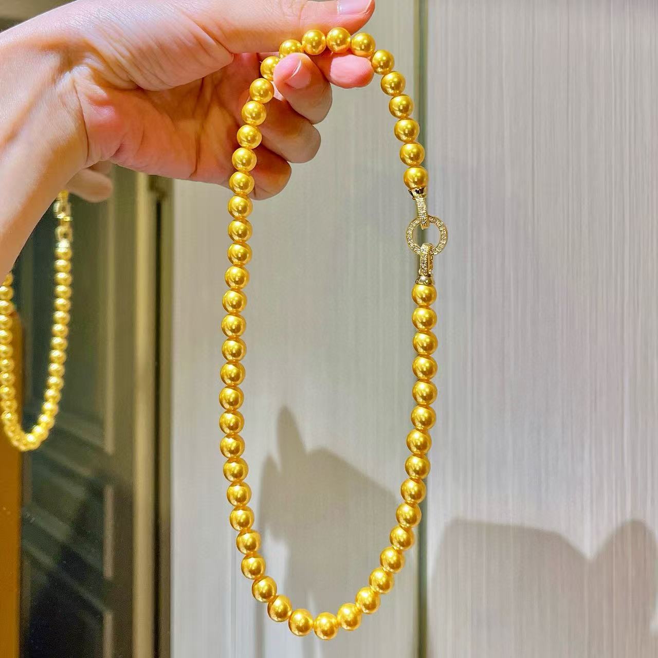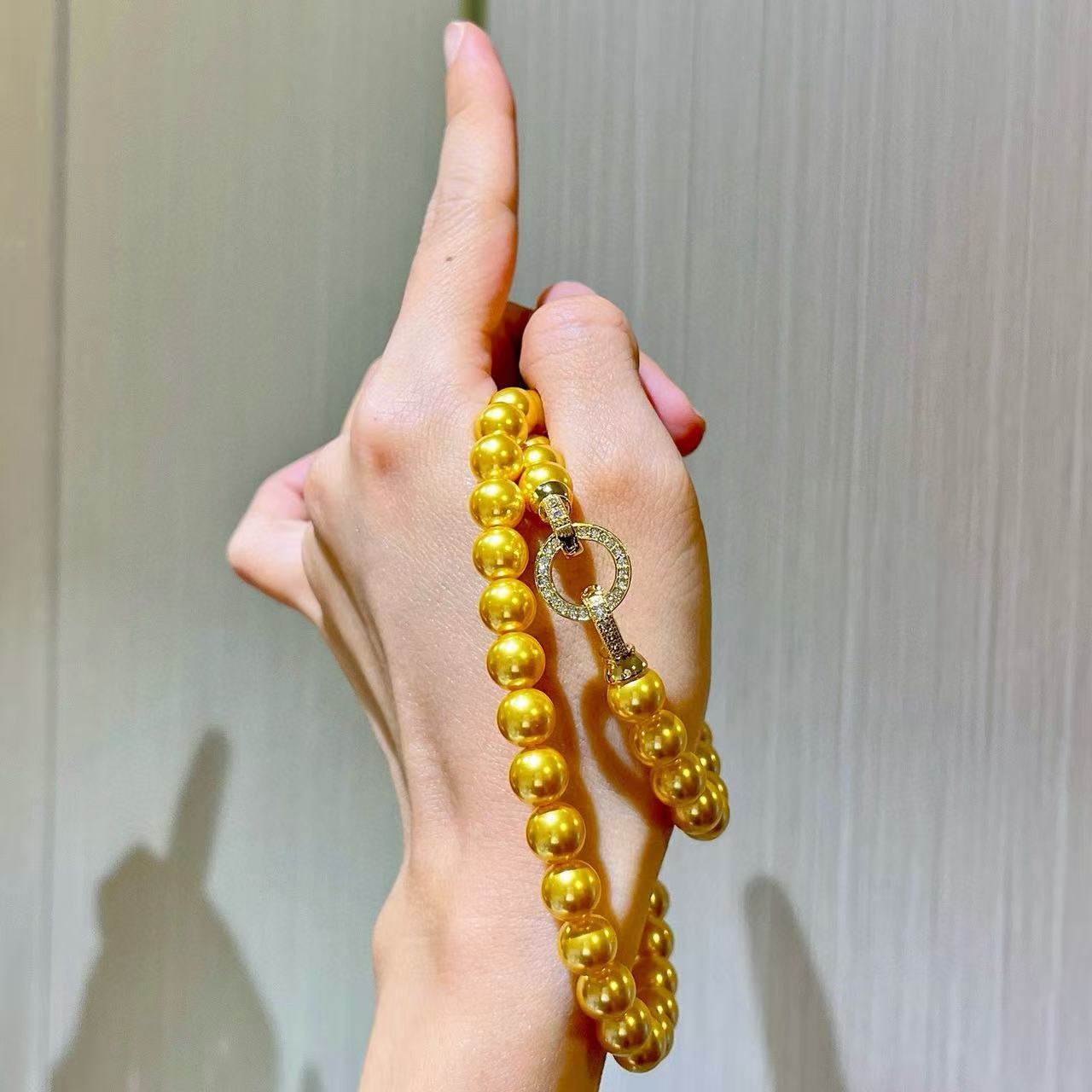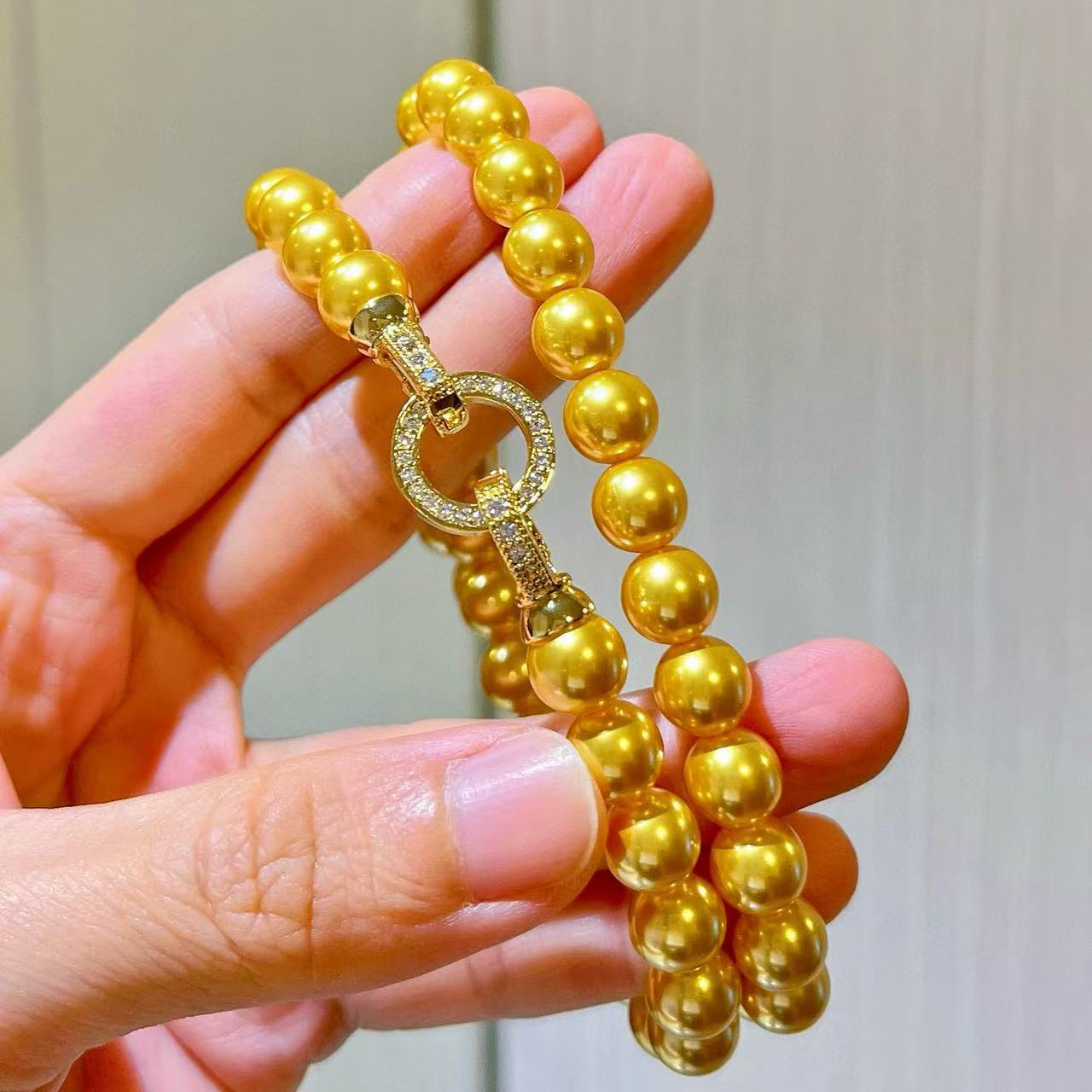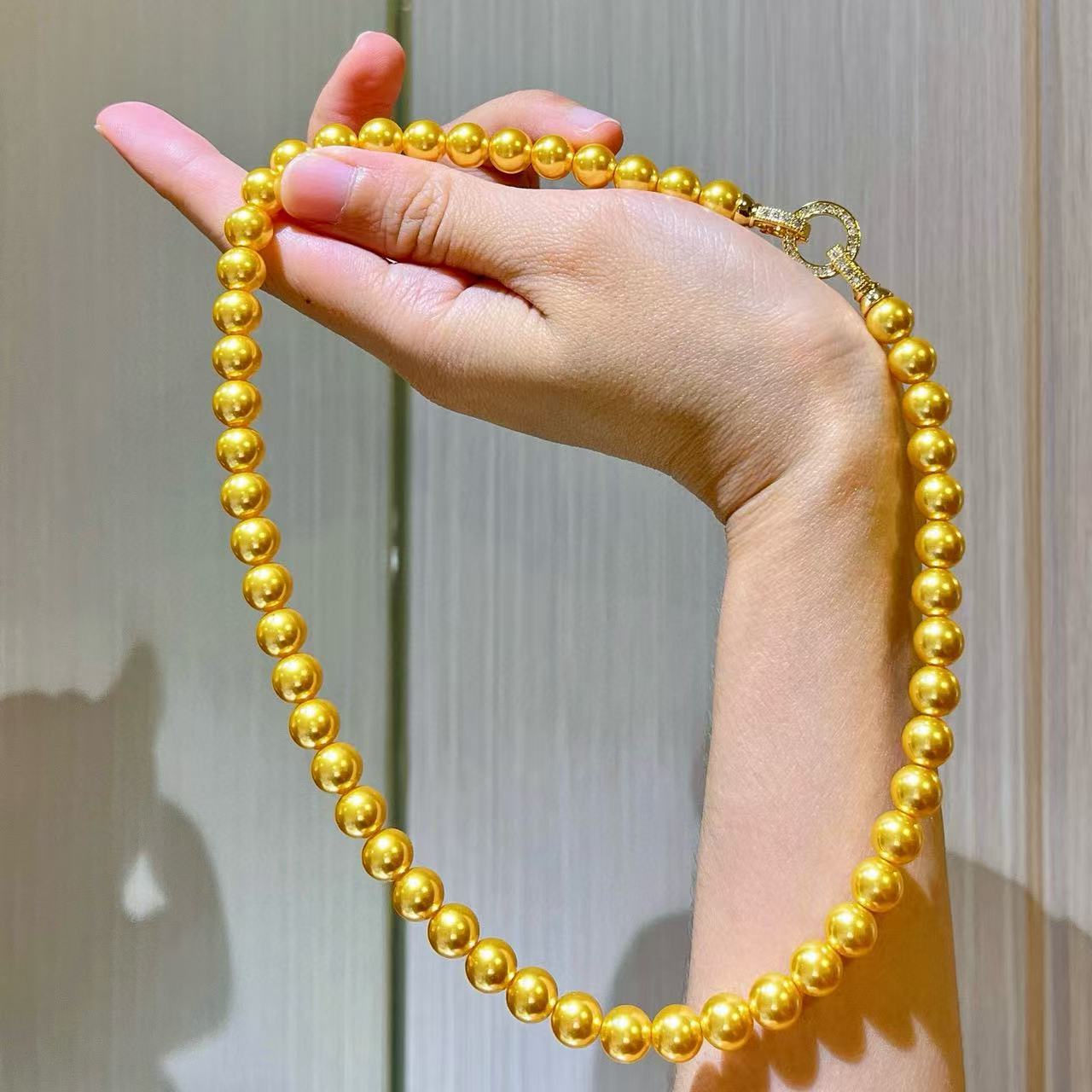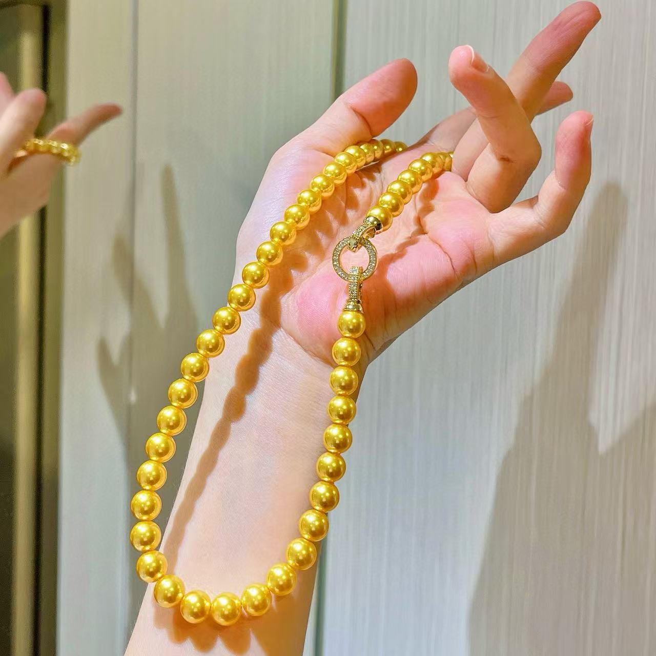 8mm法式高品质高光人造水晶菲律宾金色大溪地珍珠项链锁骨链
