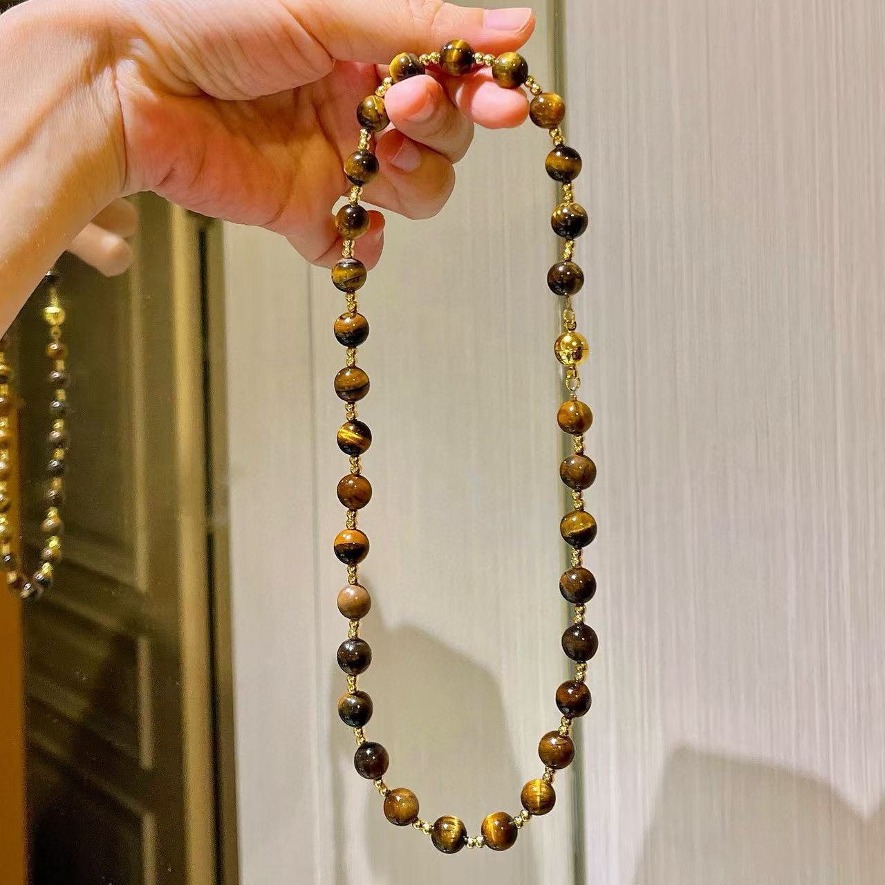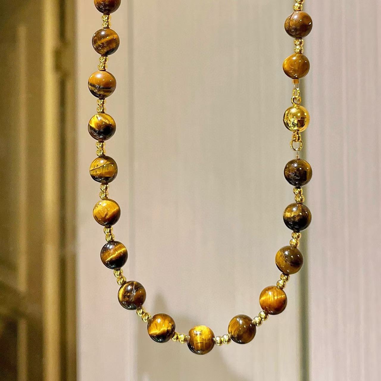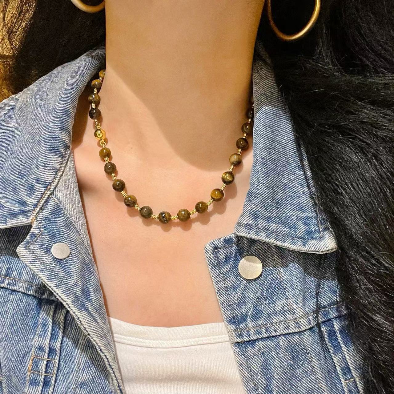 10mm天然虎眼石设计感项链锁骨链