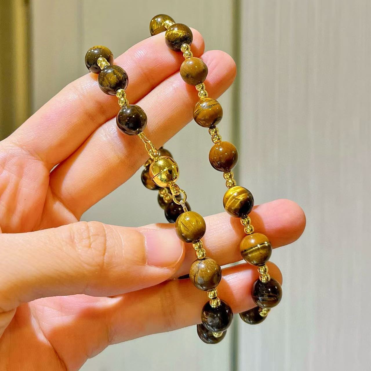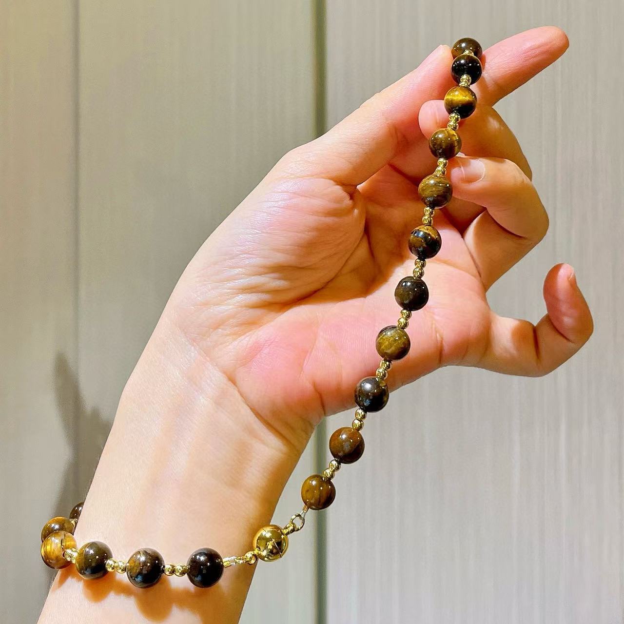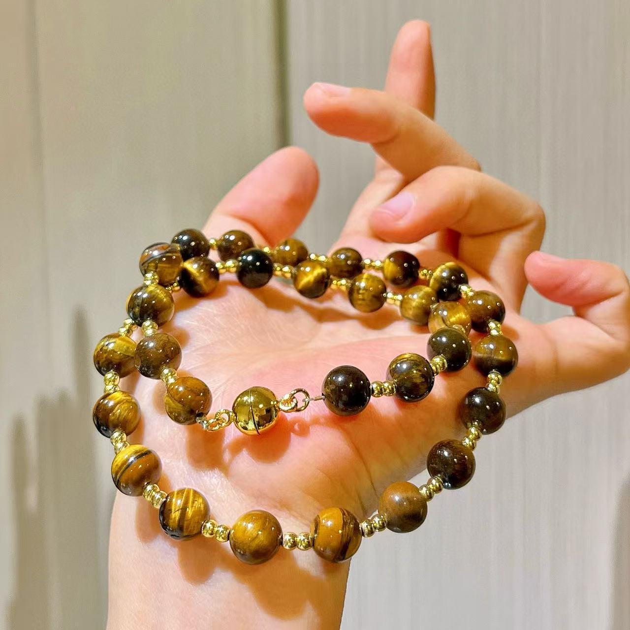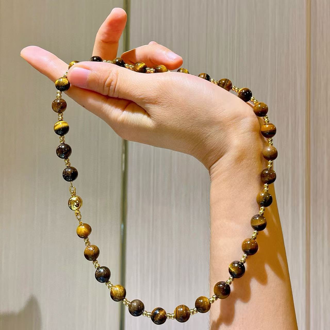 10mm天然虎眼石设计感项链锁骨链