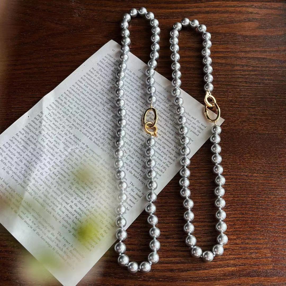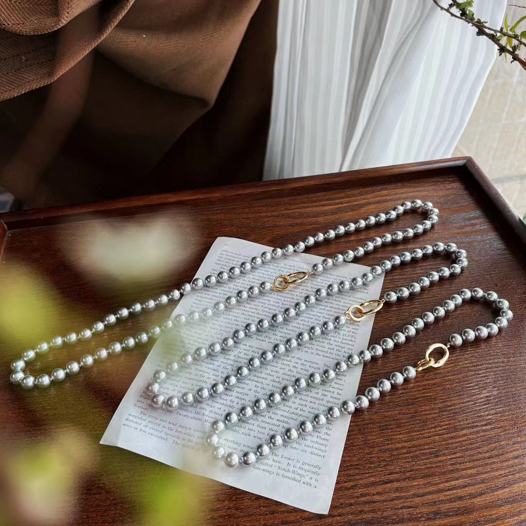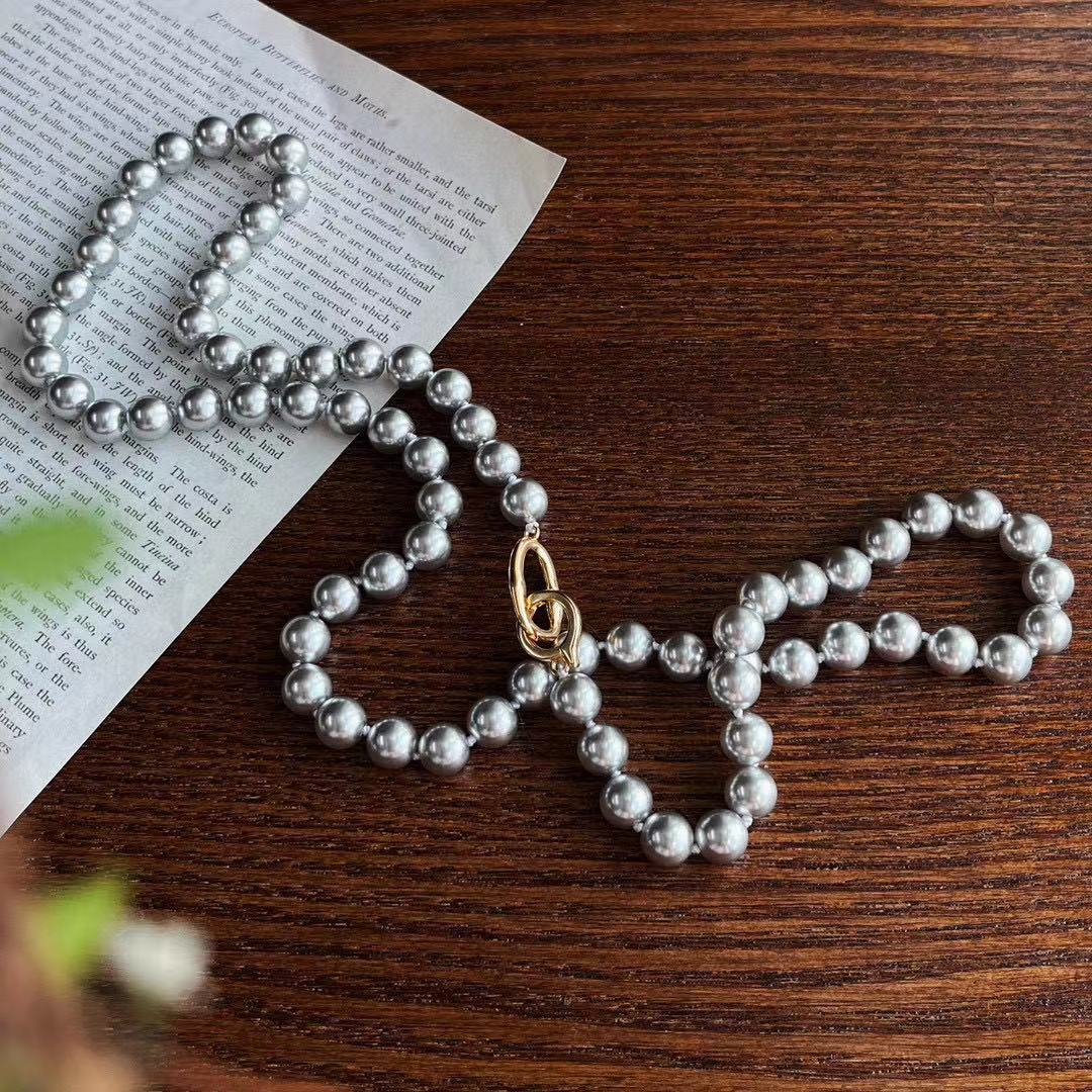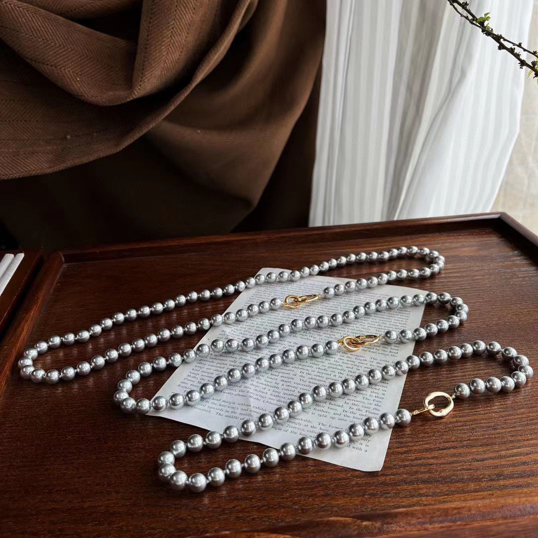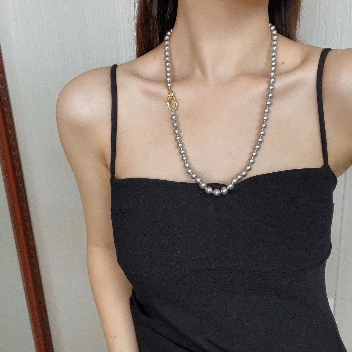 925银真多麻色银灰施家珍珠项链女毛衣链