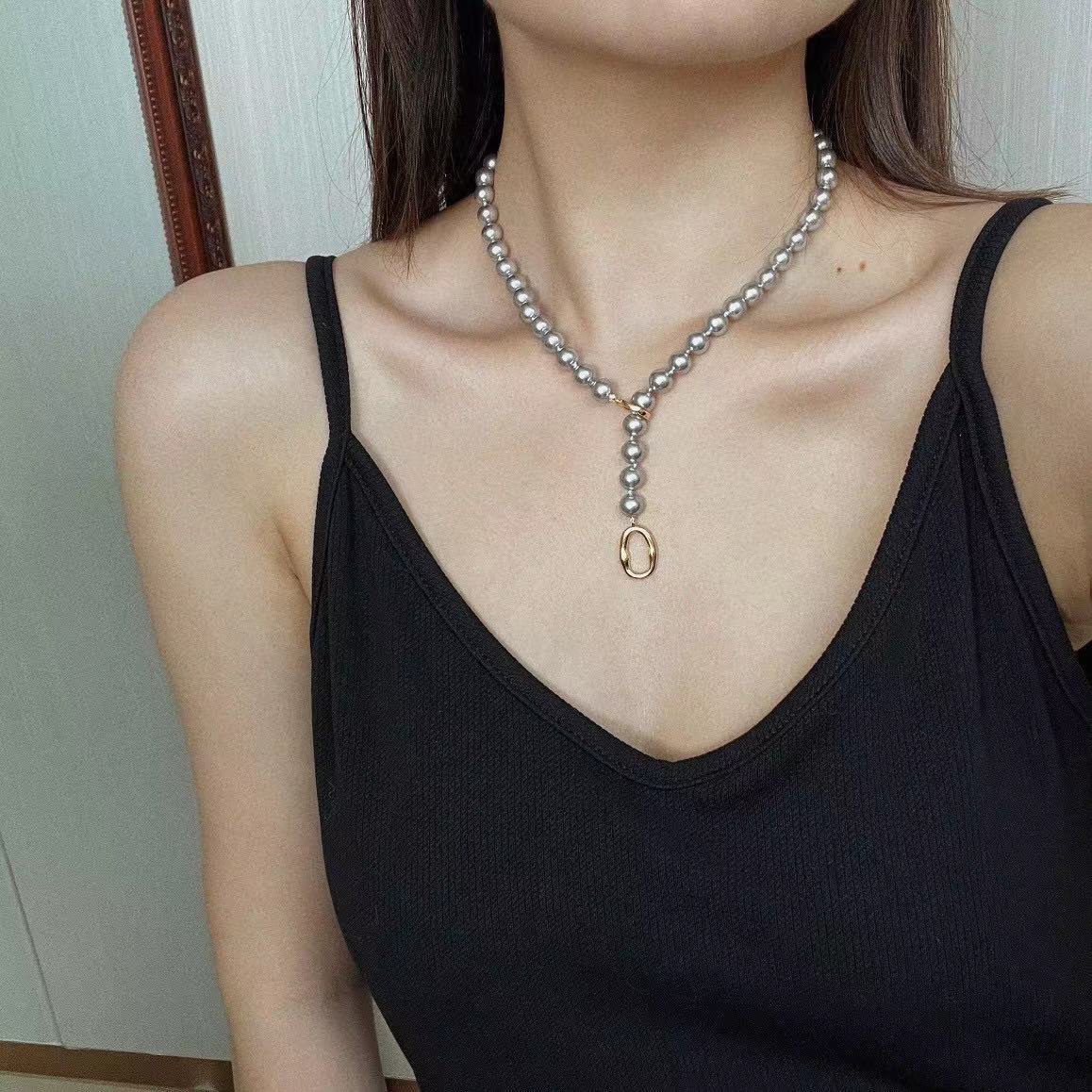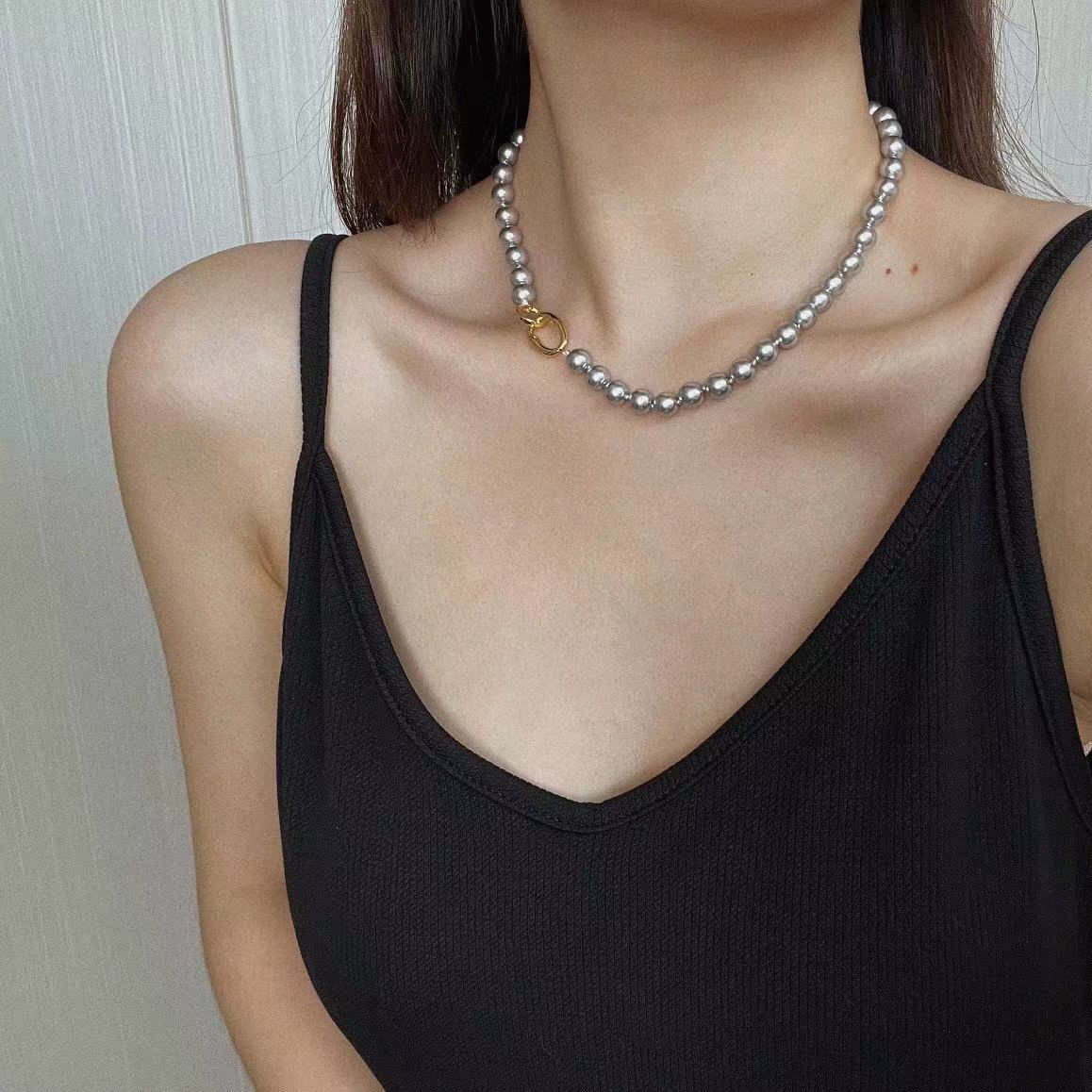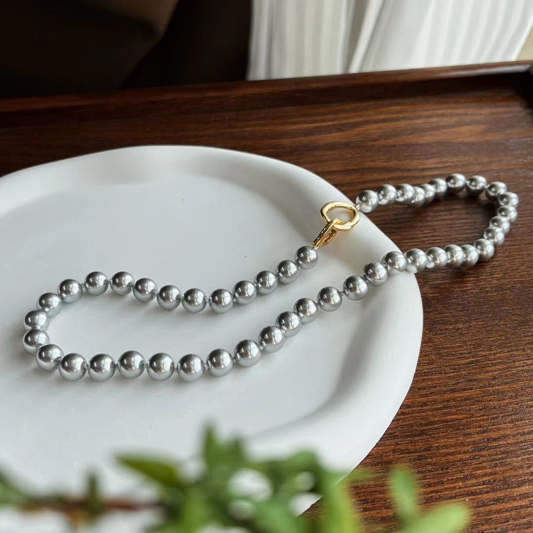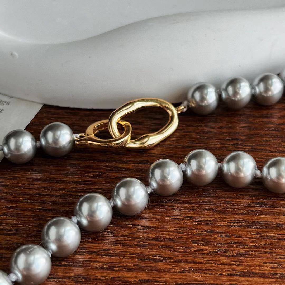 925银真多麻色银灰施家珍珠项链女毛衣链