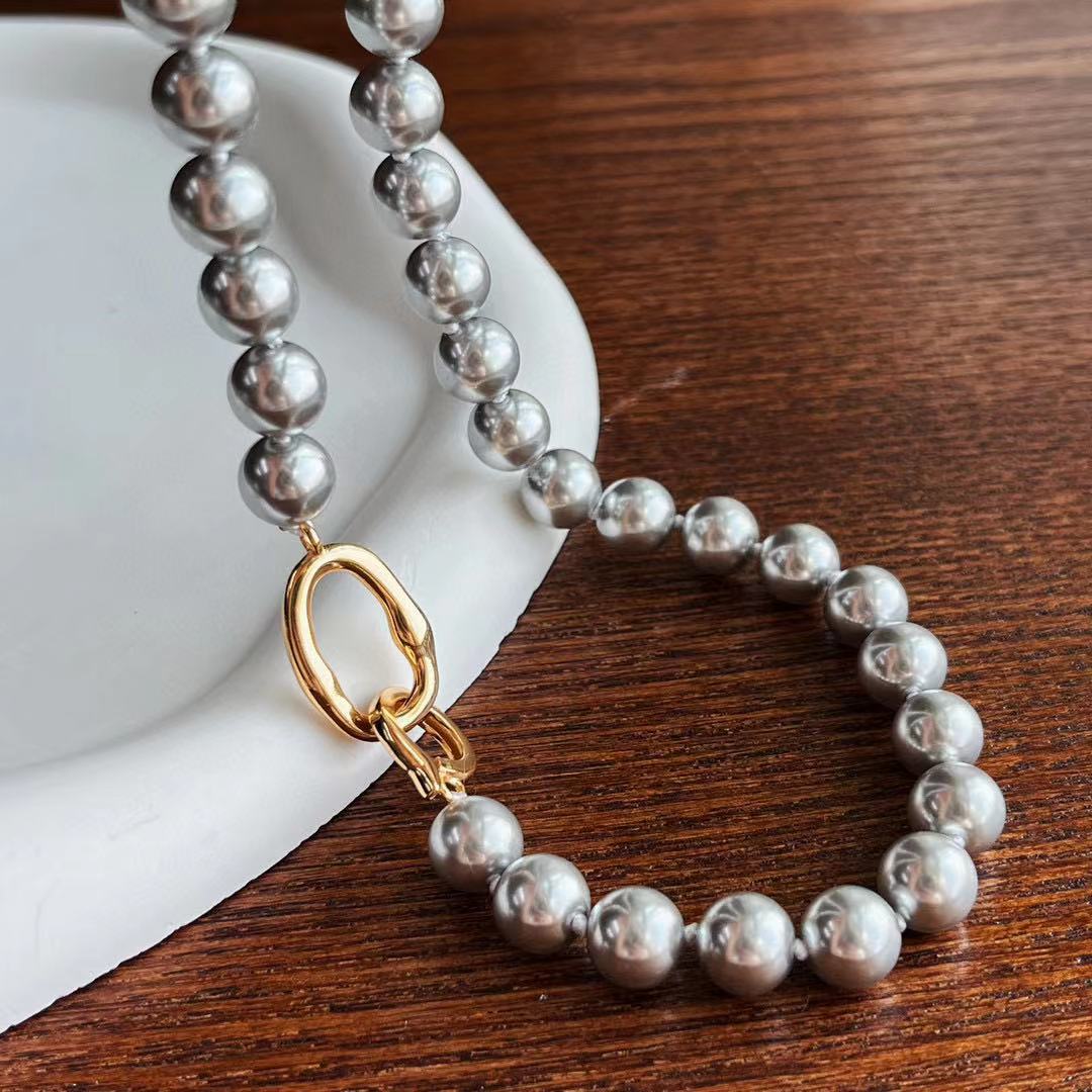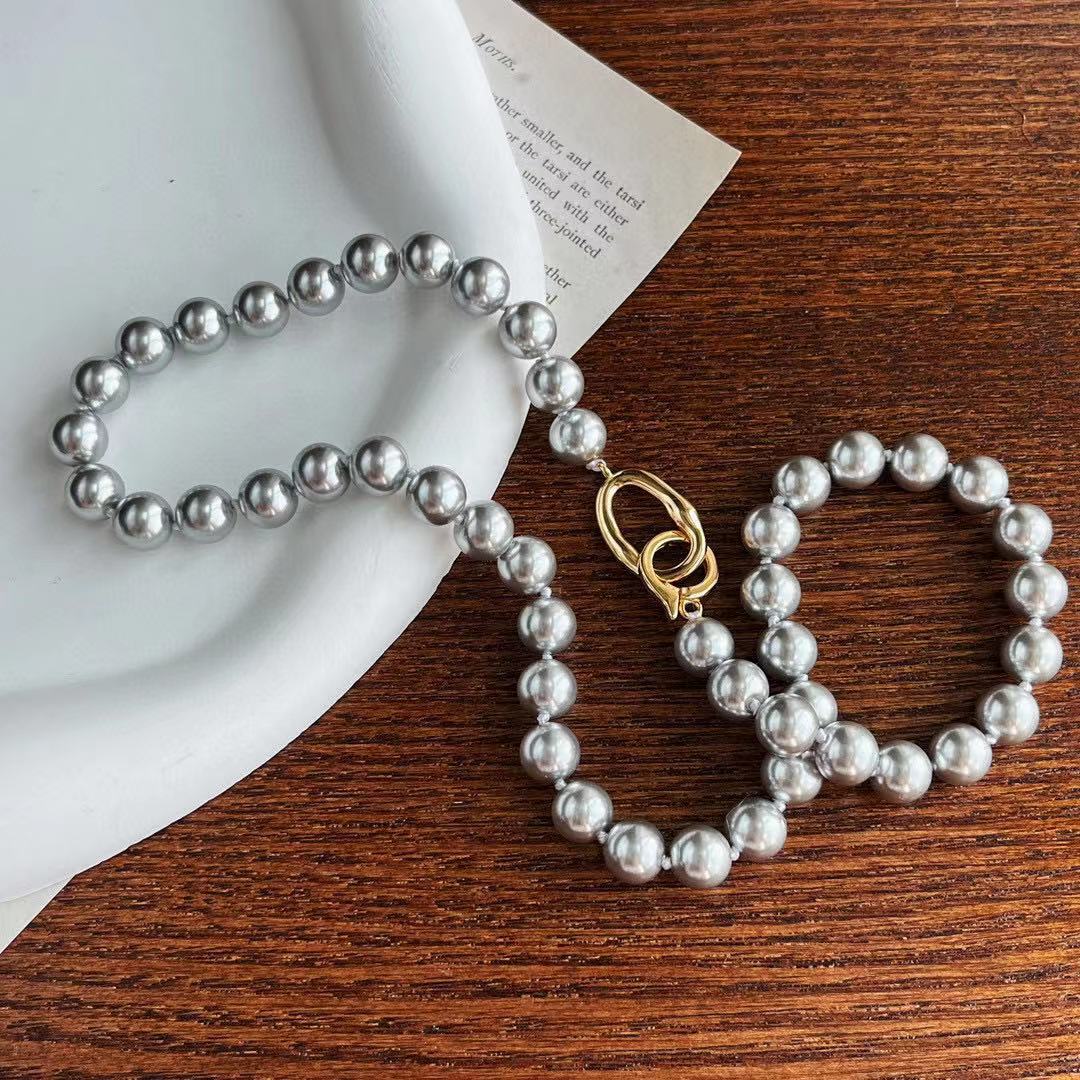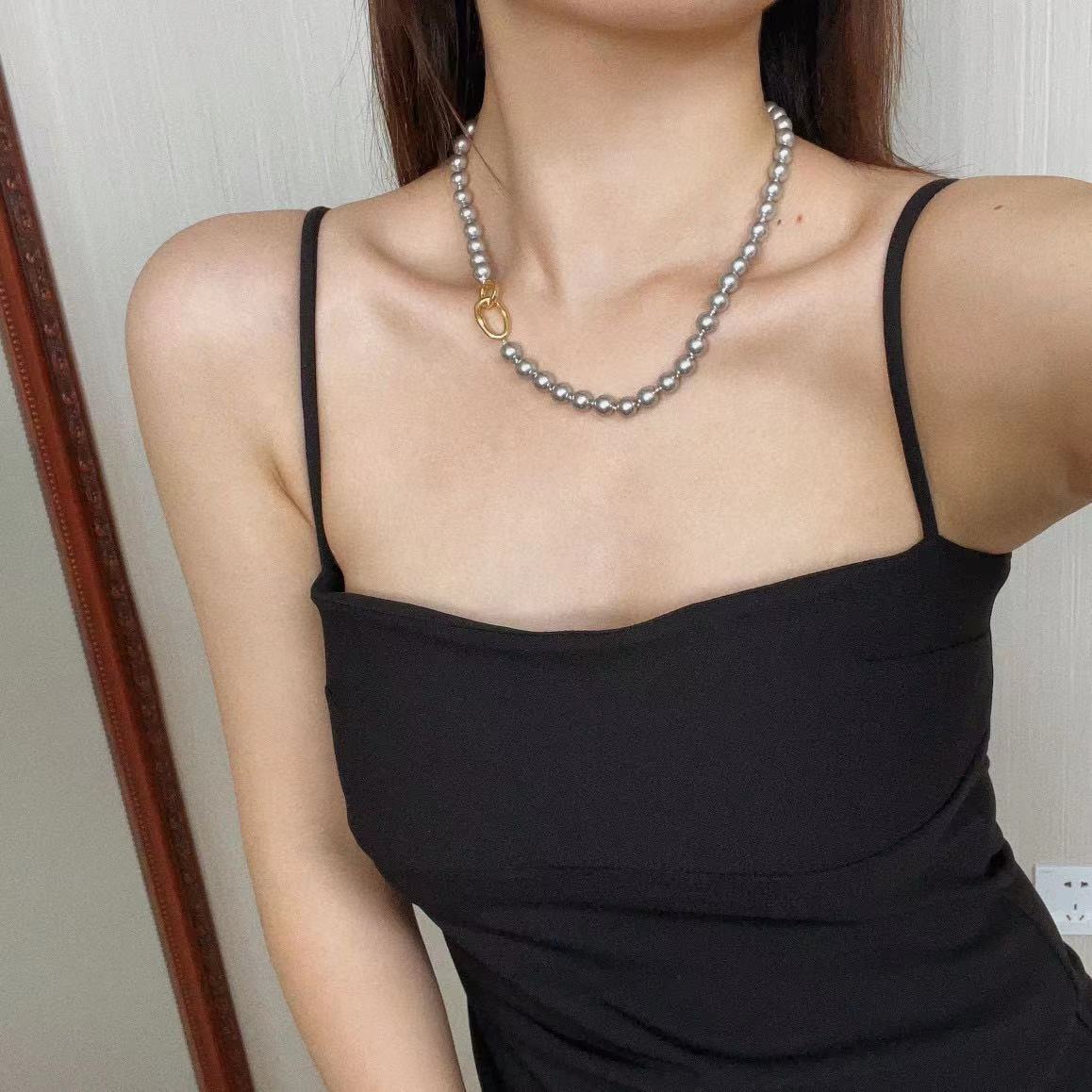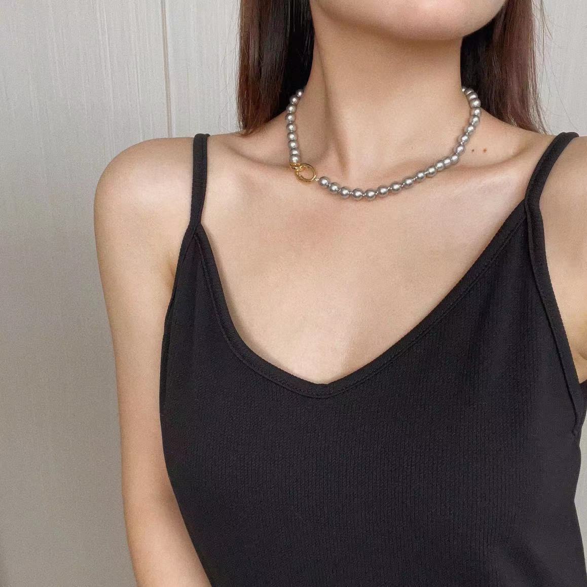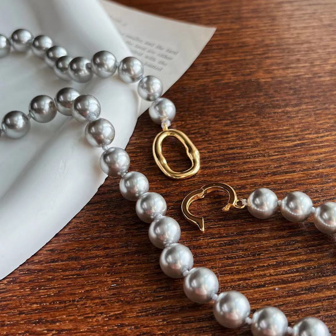 925银真多麻色银灰施家珍珠项链女毛衣链