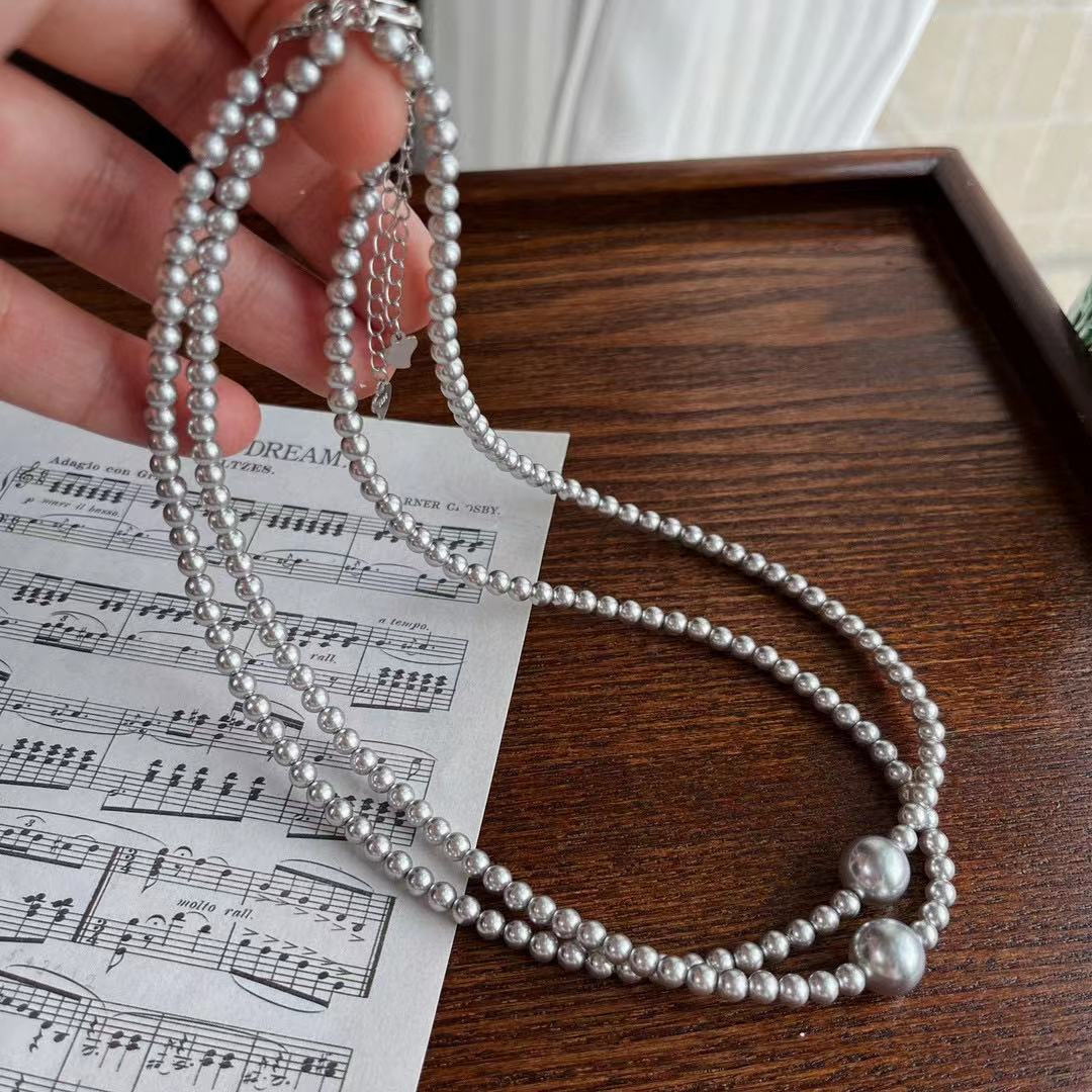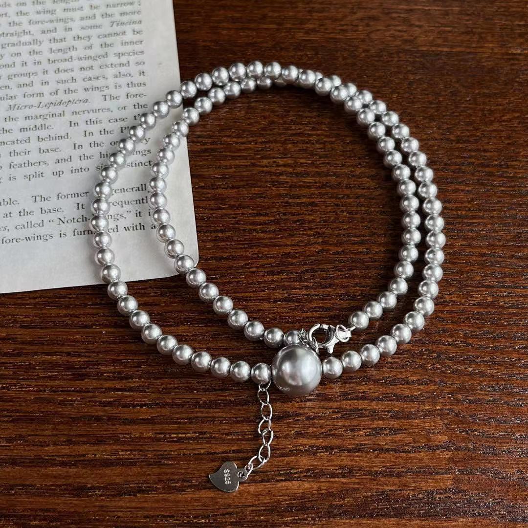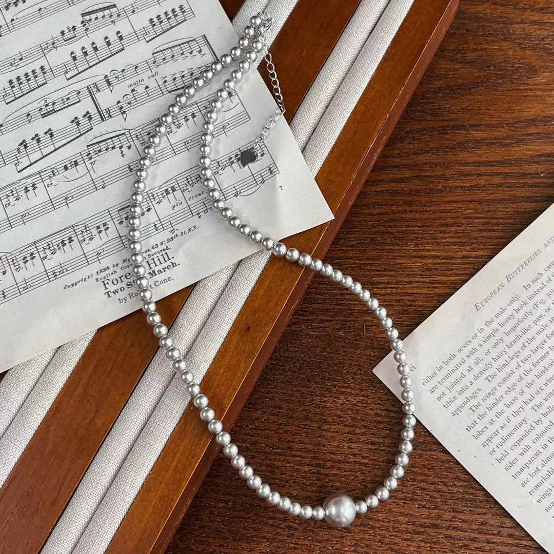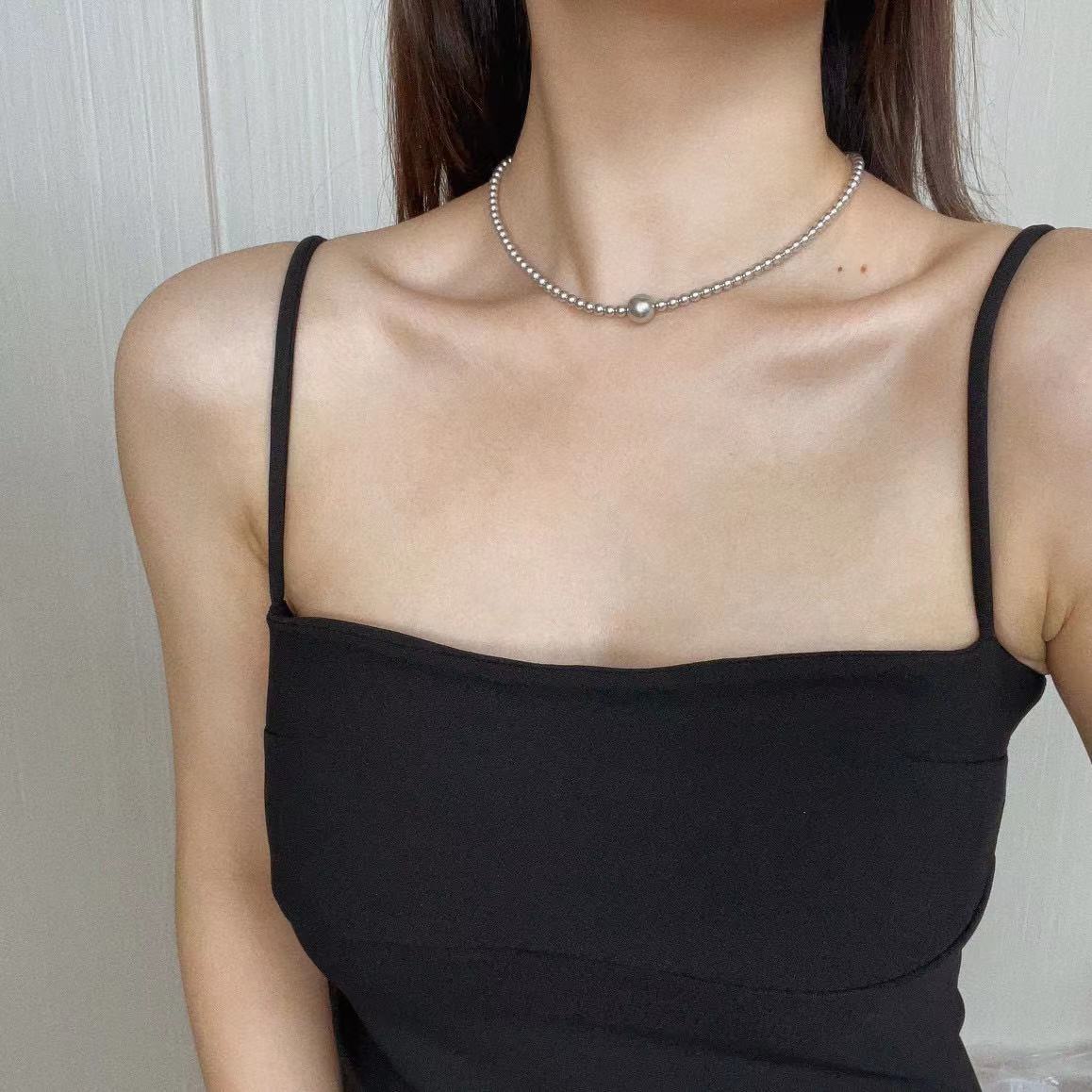 高品质简约单颗施家强光正圆珍珠项链复古感轻奢锁骨链春夏