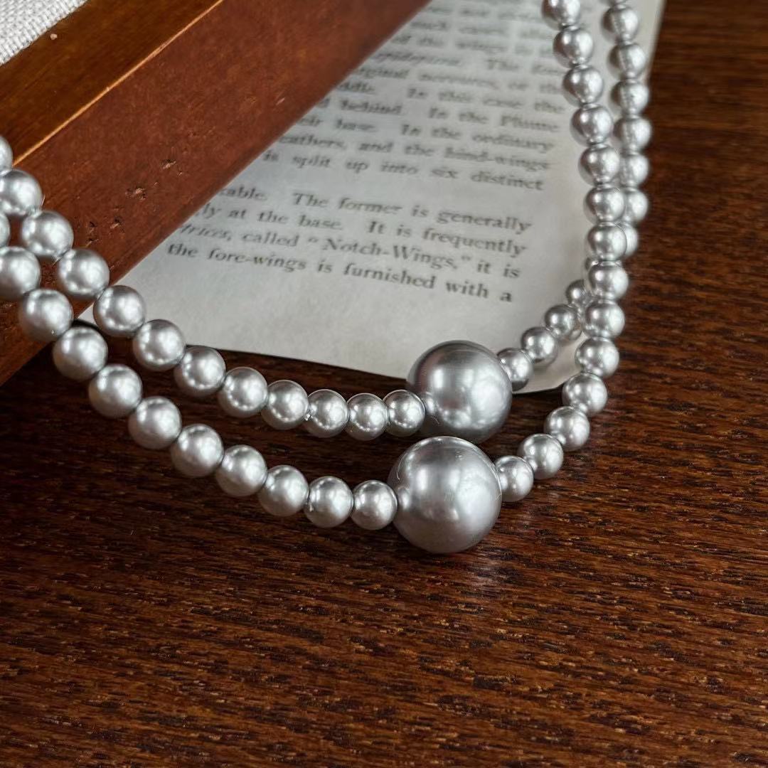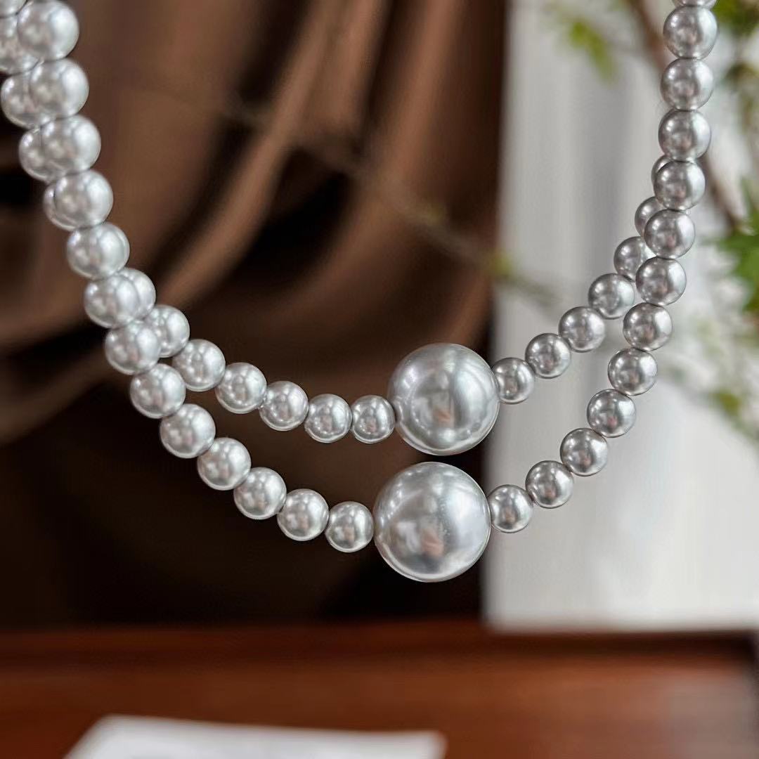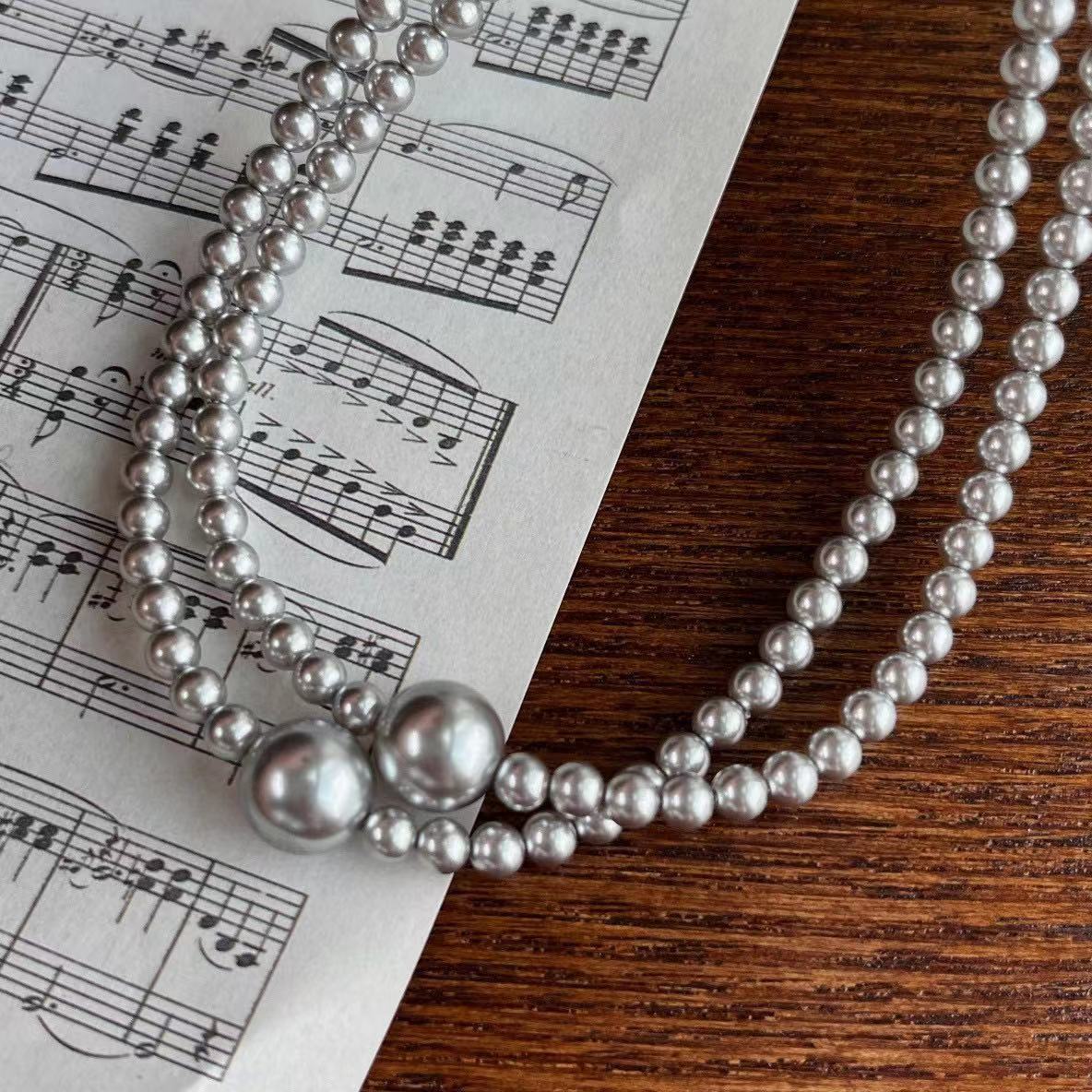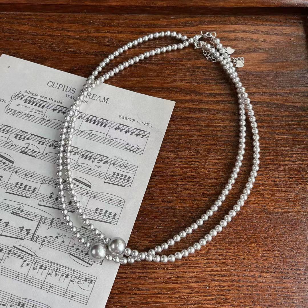 高品质简约单颗施家强光正圆珍珠项链复古感轻奢锁骨链春夏