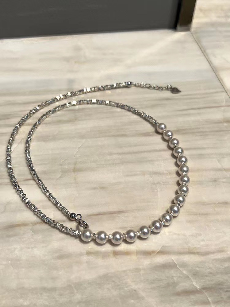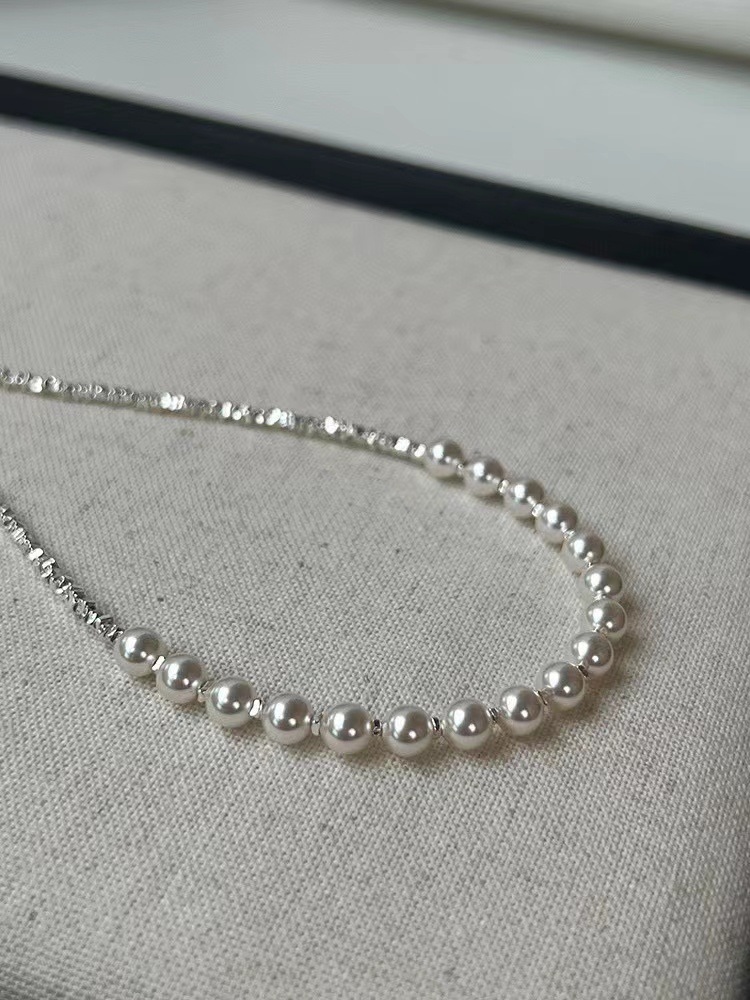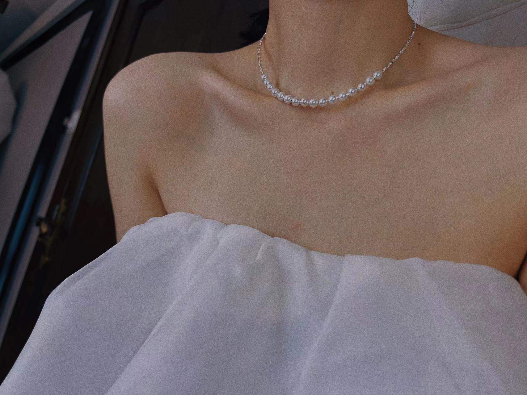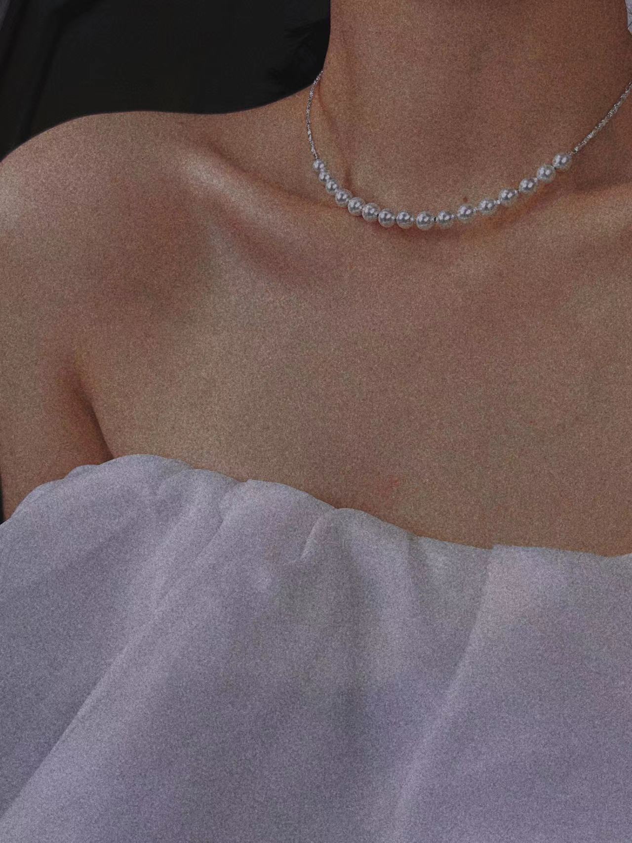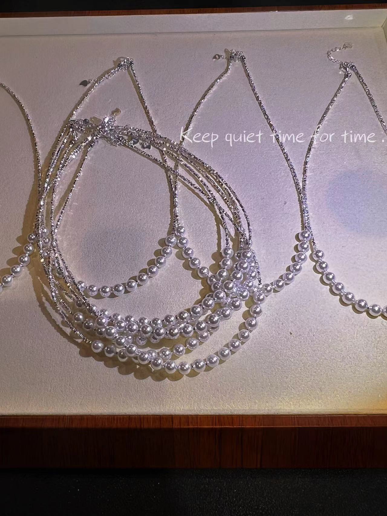 波光粼粼S925银银碎银子项链施家珍珠项链贝珠颈链