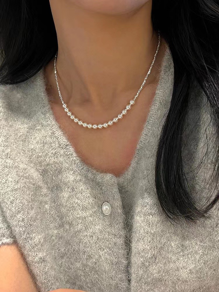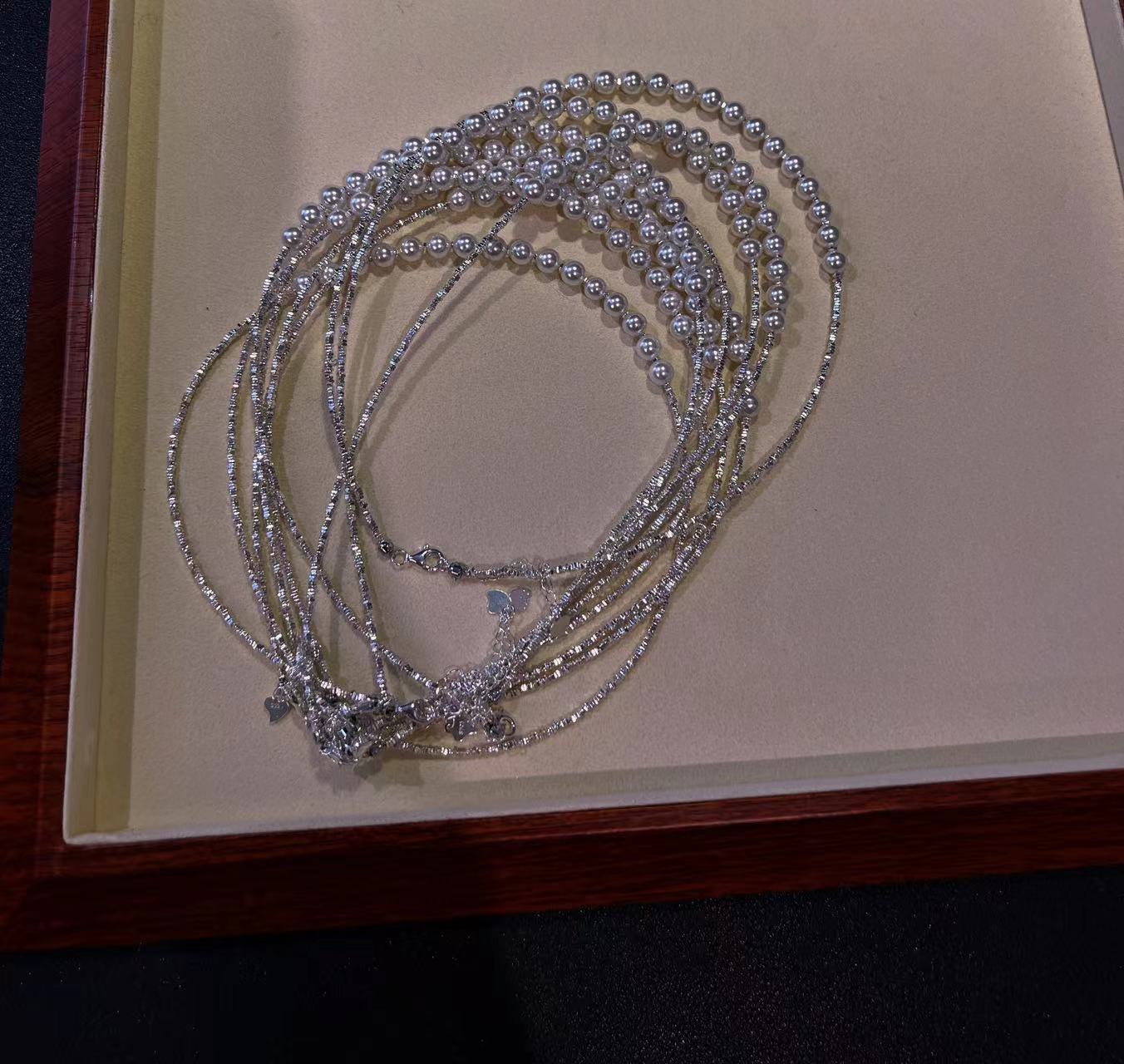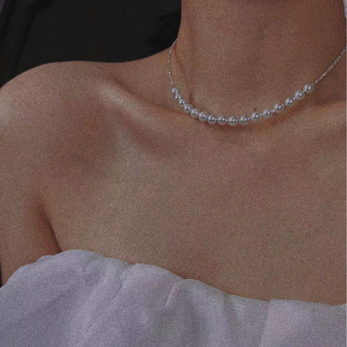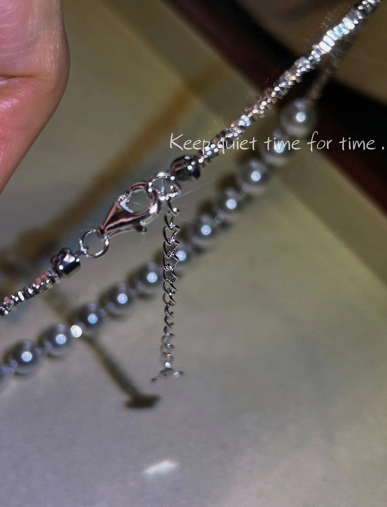 波光粼粼S925银银碎银子项链施家珍珠项链贝珠颈链