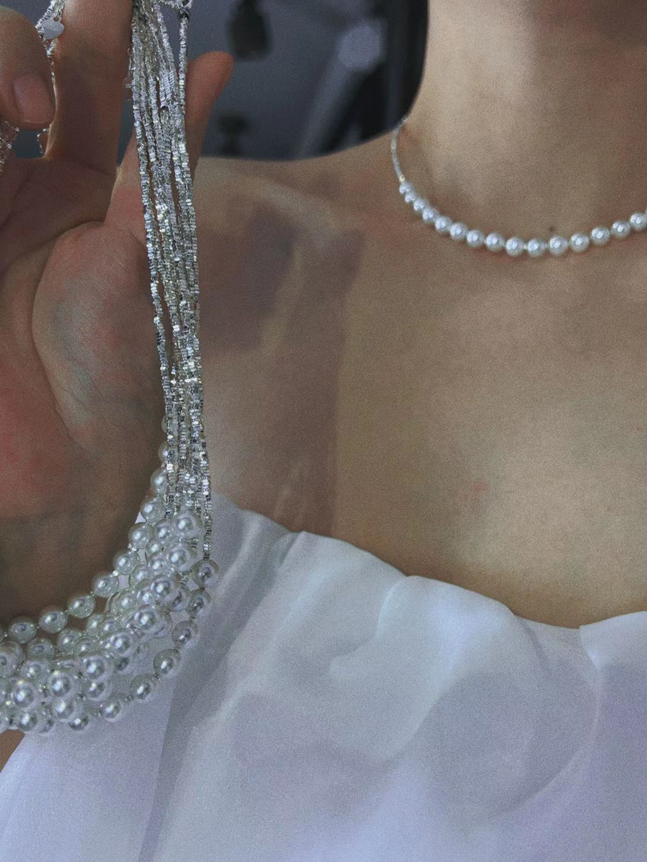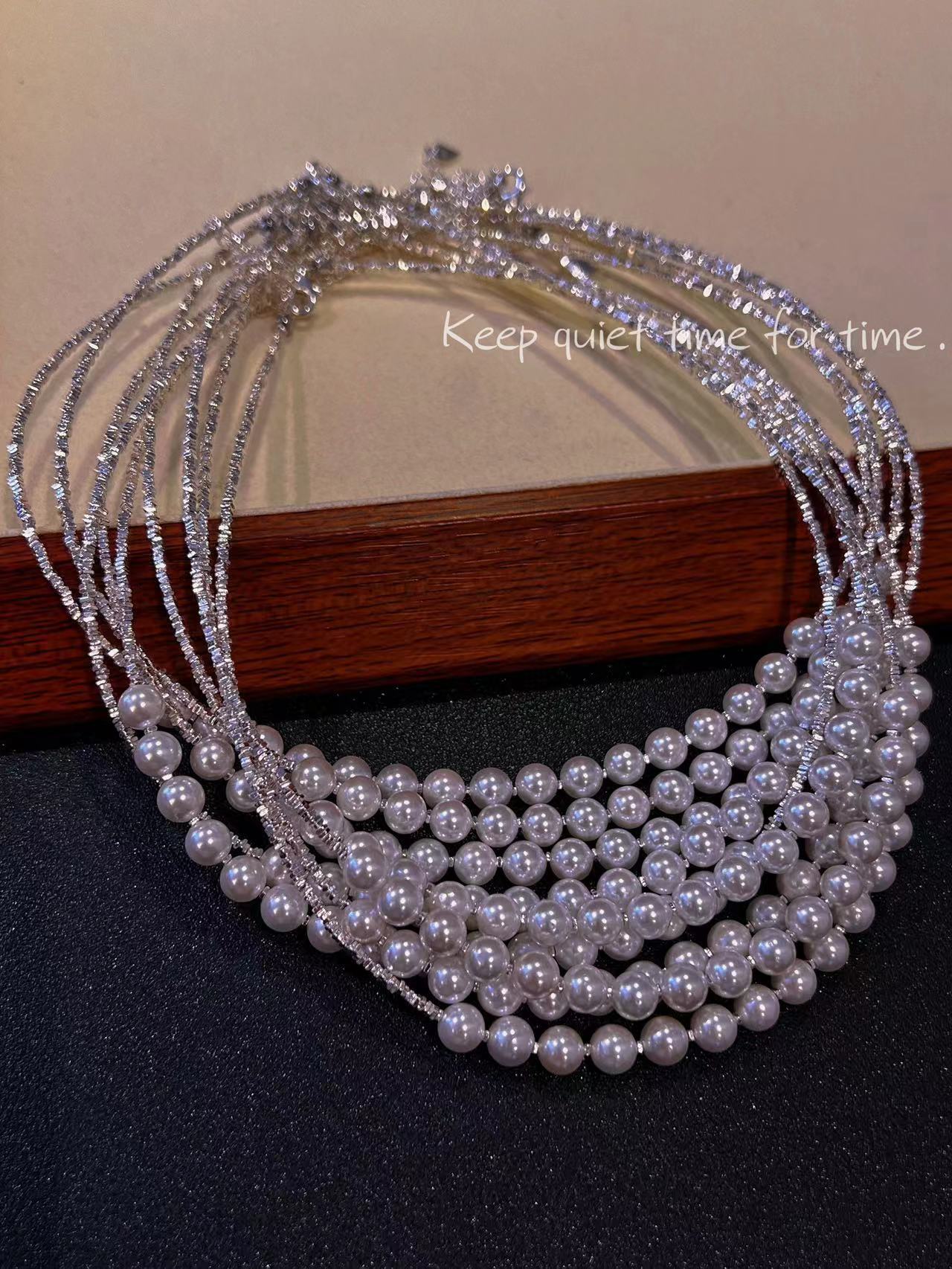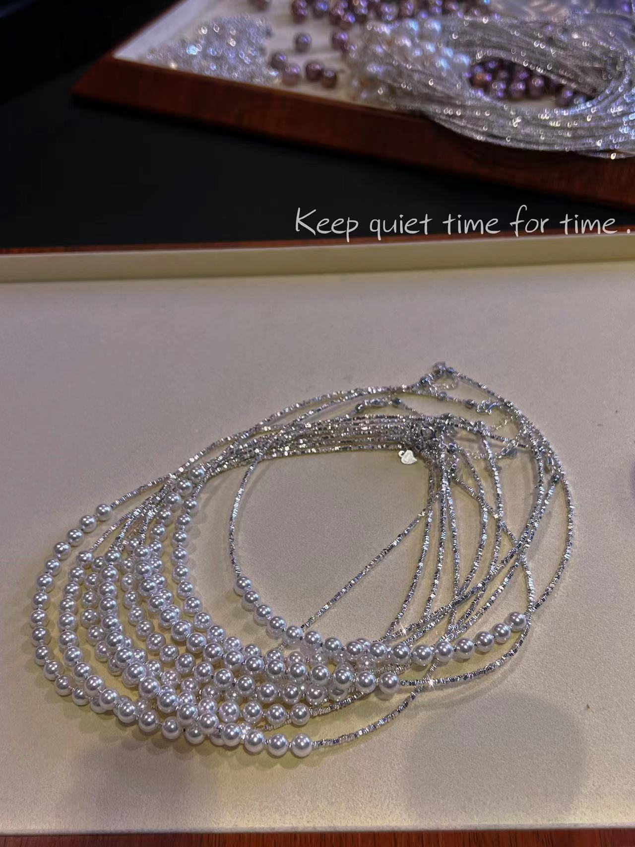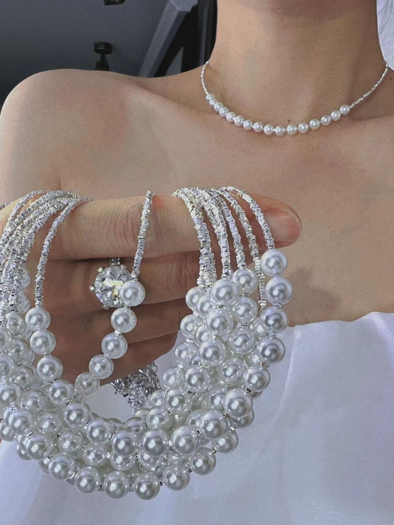波光粼粼S925银银碎银子项链施家珍珠项链贝珠颈链