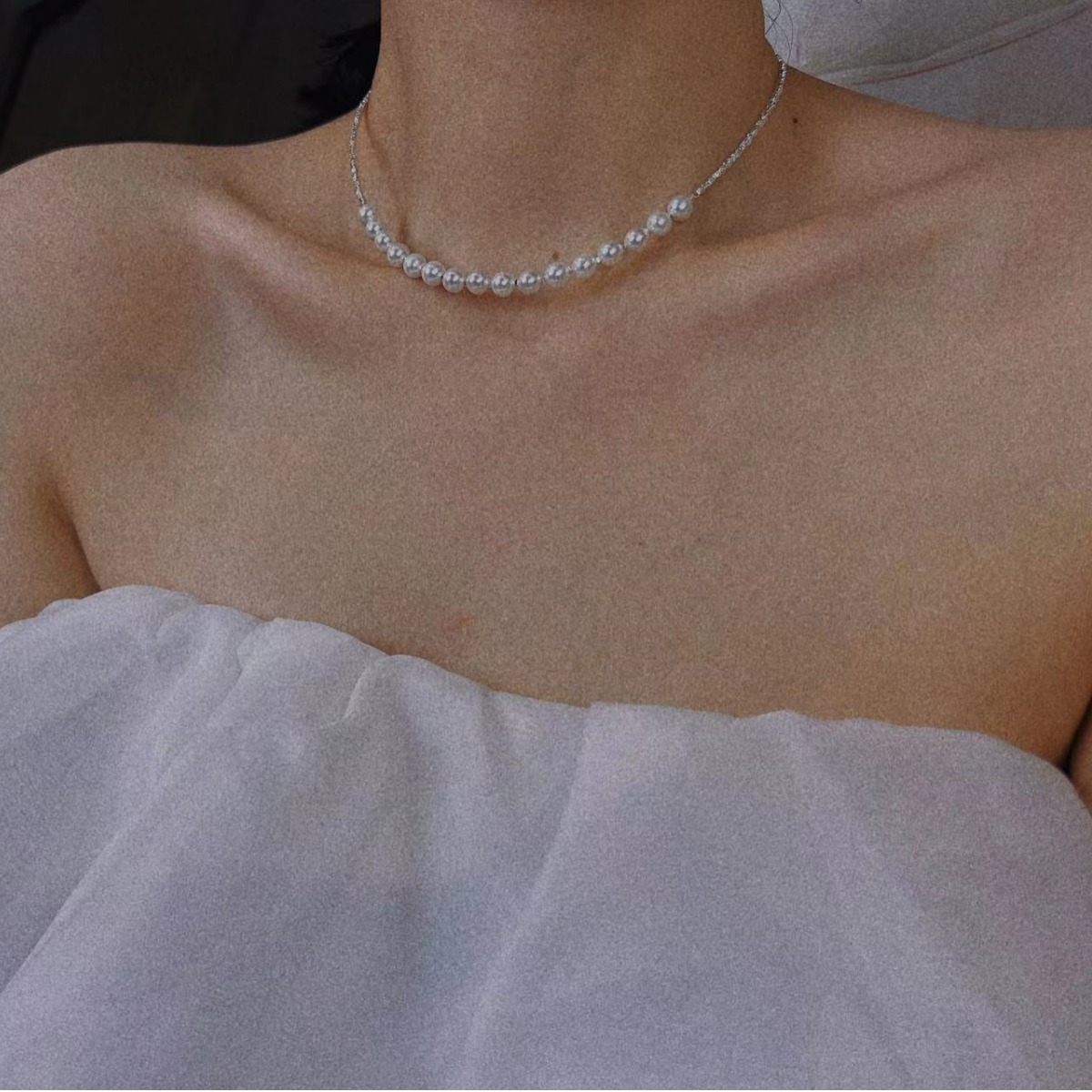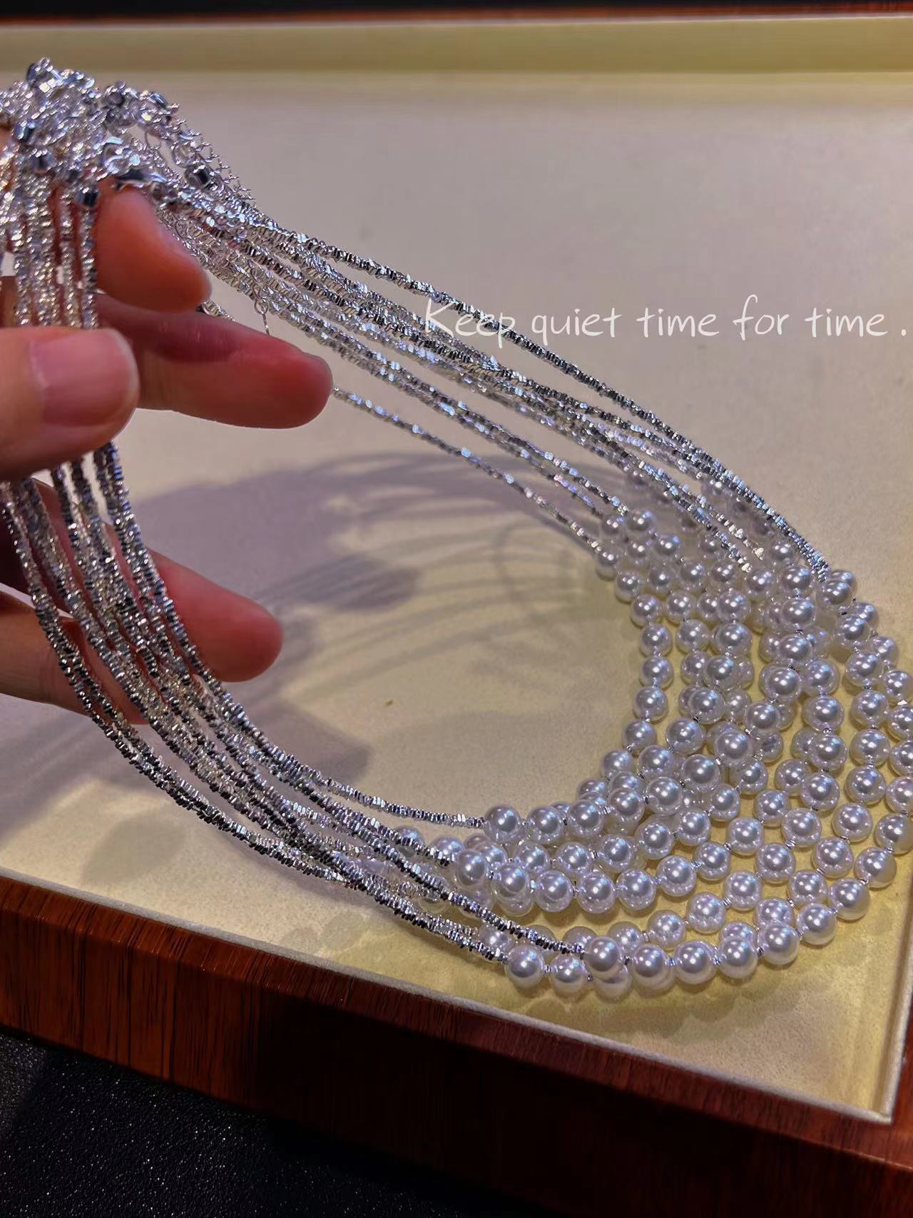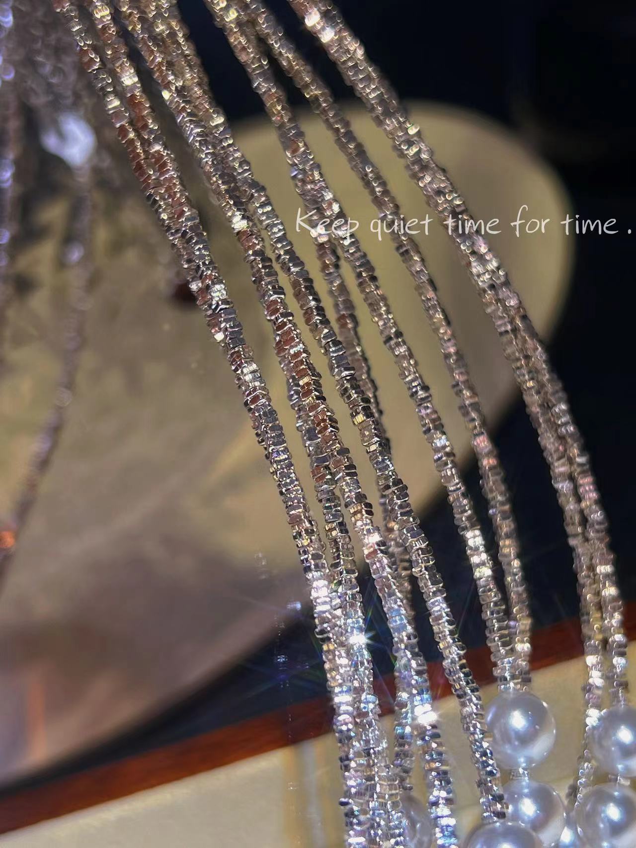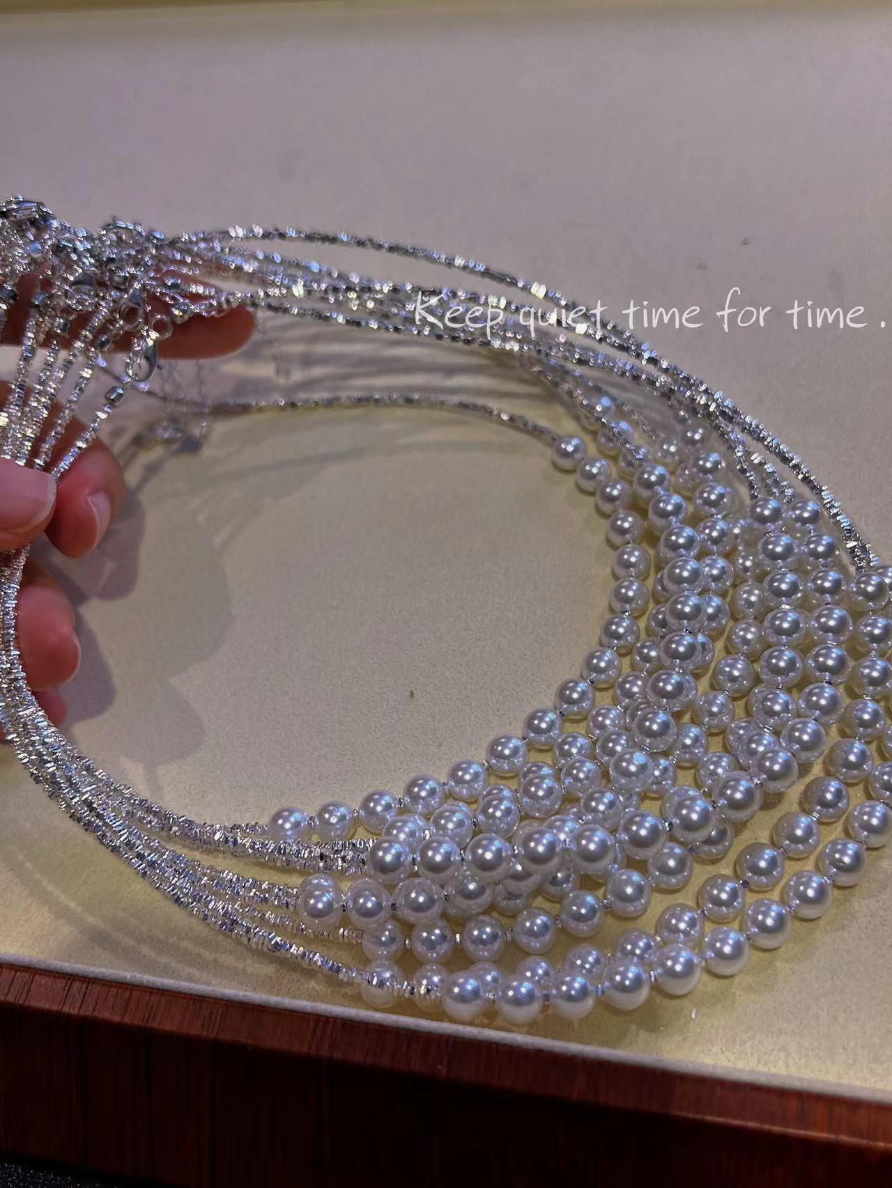 波光粼粼S925银银碎银子项链施家珍珠项链贝珠颈链