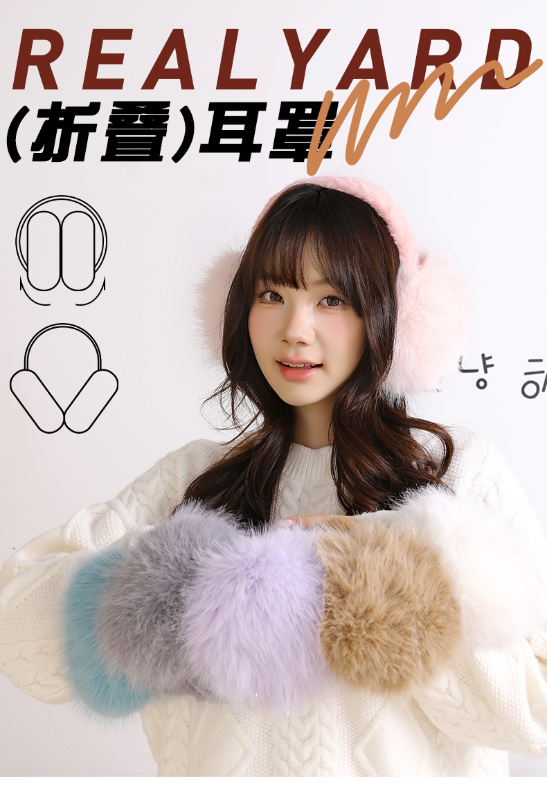 升级仿狐狸毛折叠耳罩2025时尚保暖纯色简约护耳包秋冬防寒冷耳捂