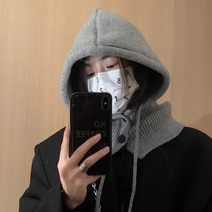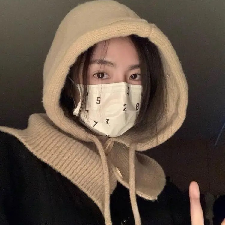 工厂直销新款巴拉克拉法帽冬季保暖护耳毛线帽围巾一体披肩针织帽