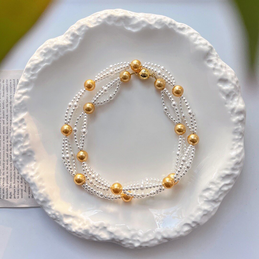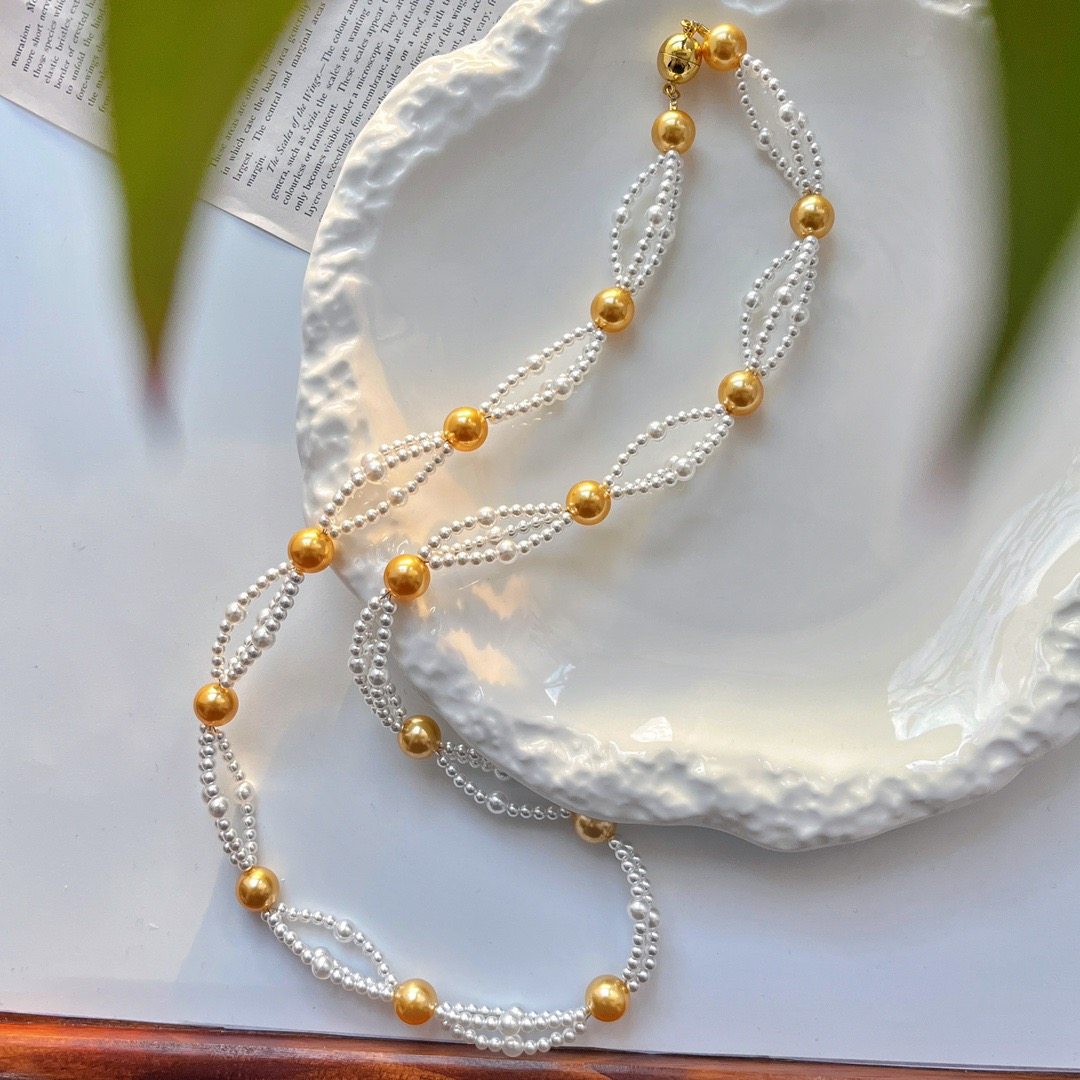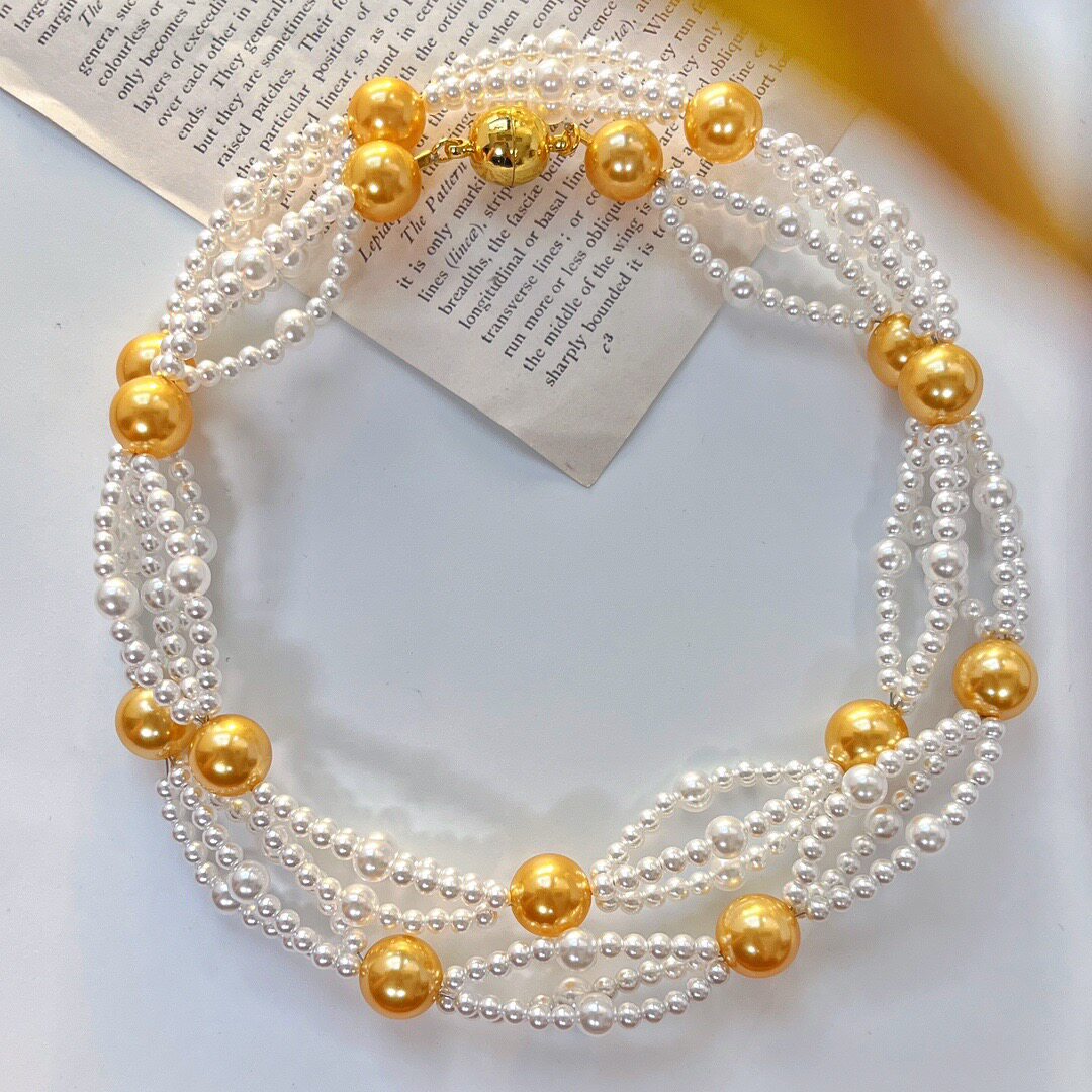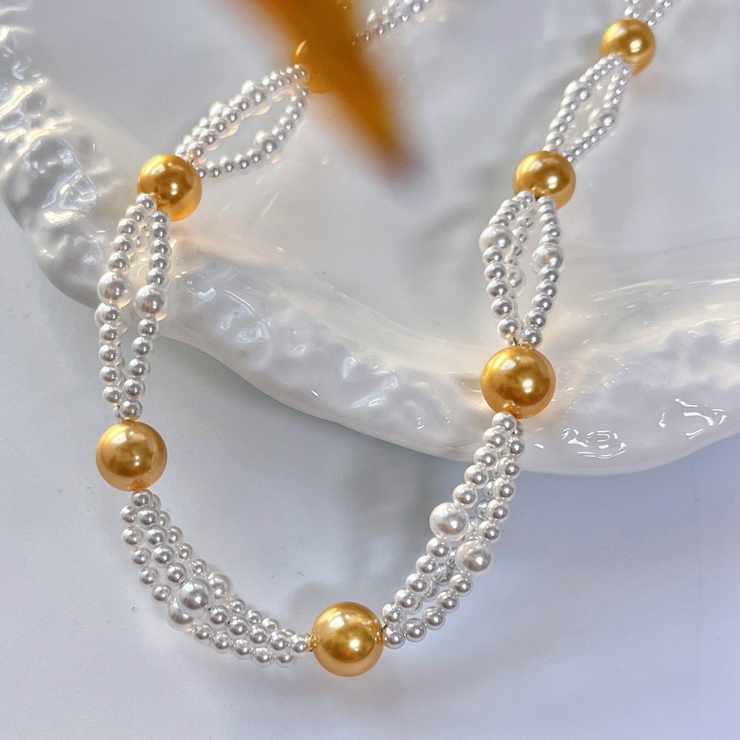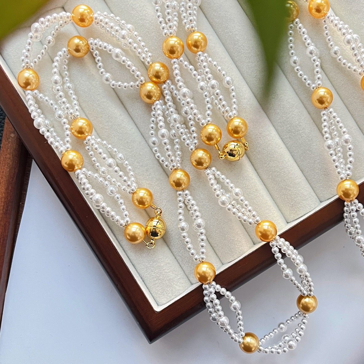 秋冬爆款原创法式复古手工编织混彩渐变人造水晶珍珠项链毛衣链