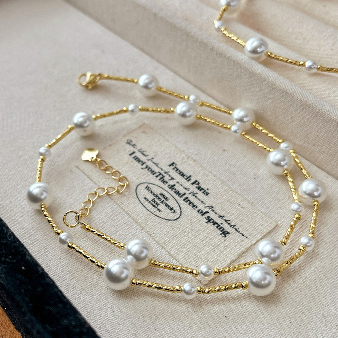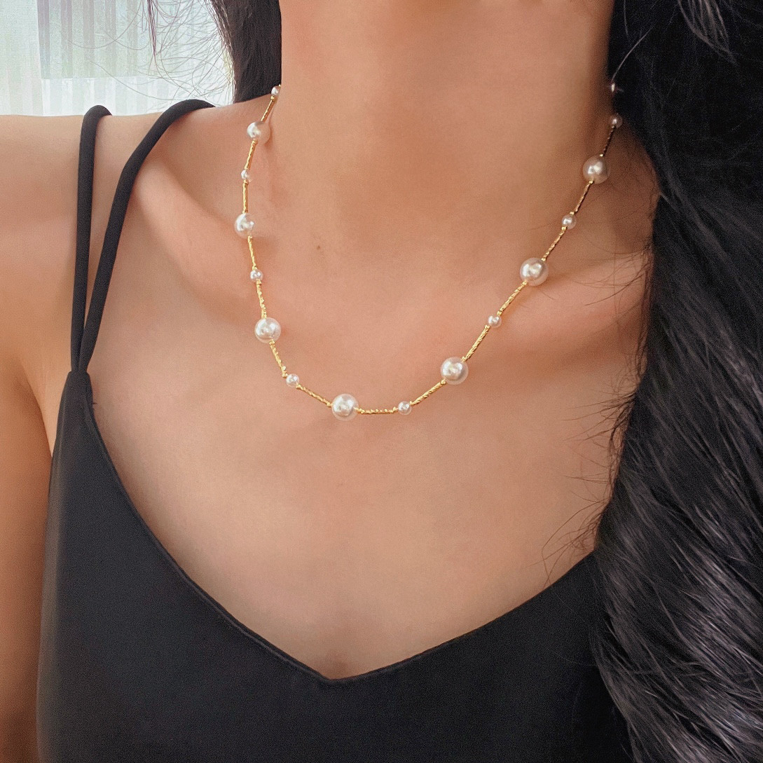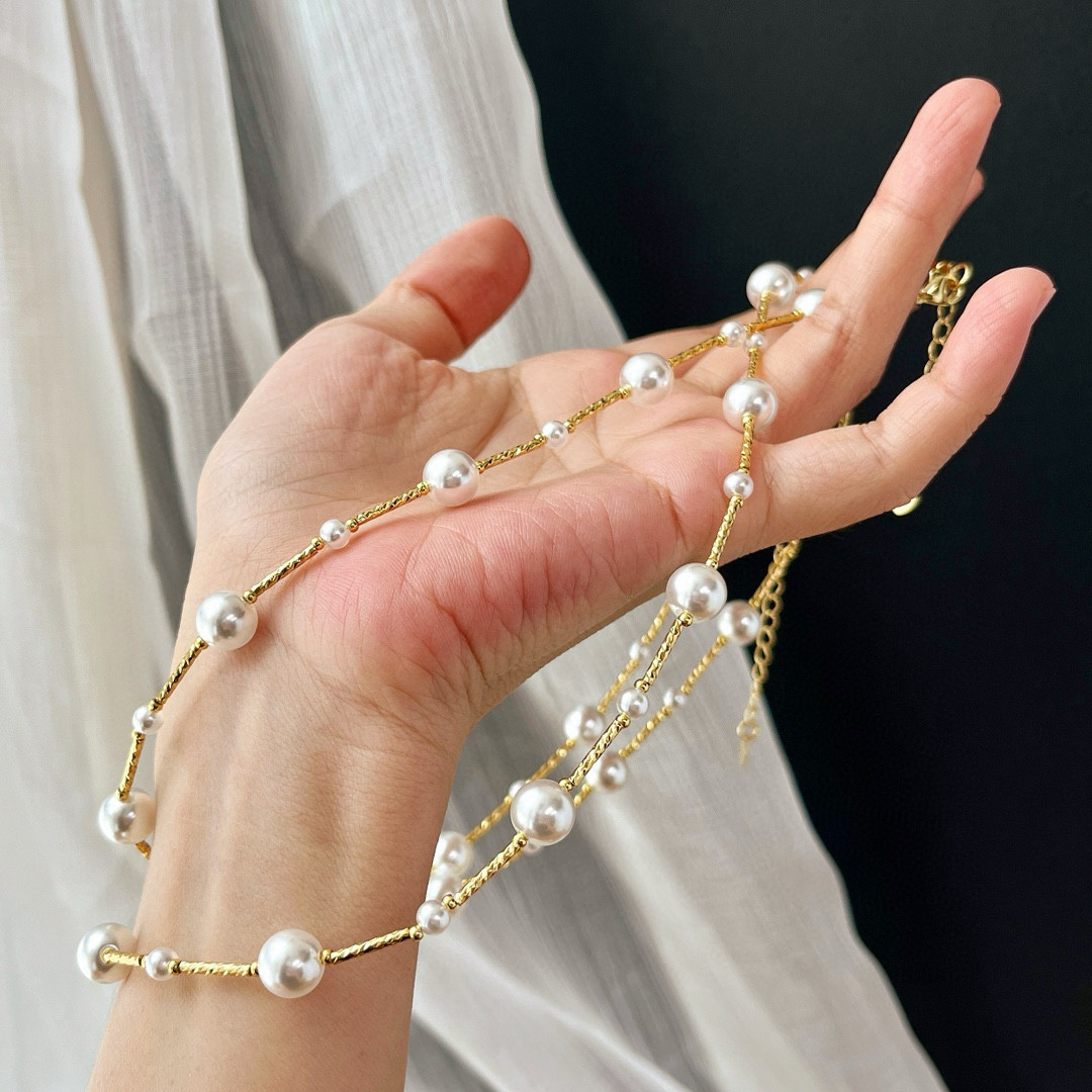 繁星点点法式竹节施家珍珠项链满天星冷淡轻奢高级锁骨链日韩时尚