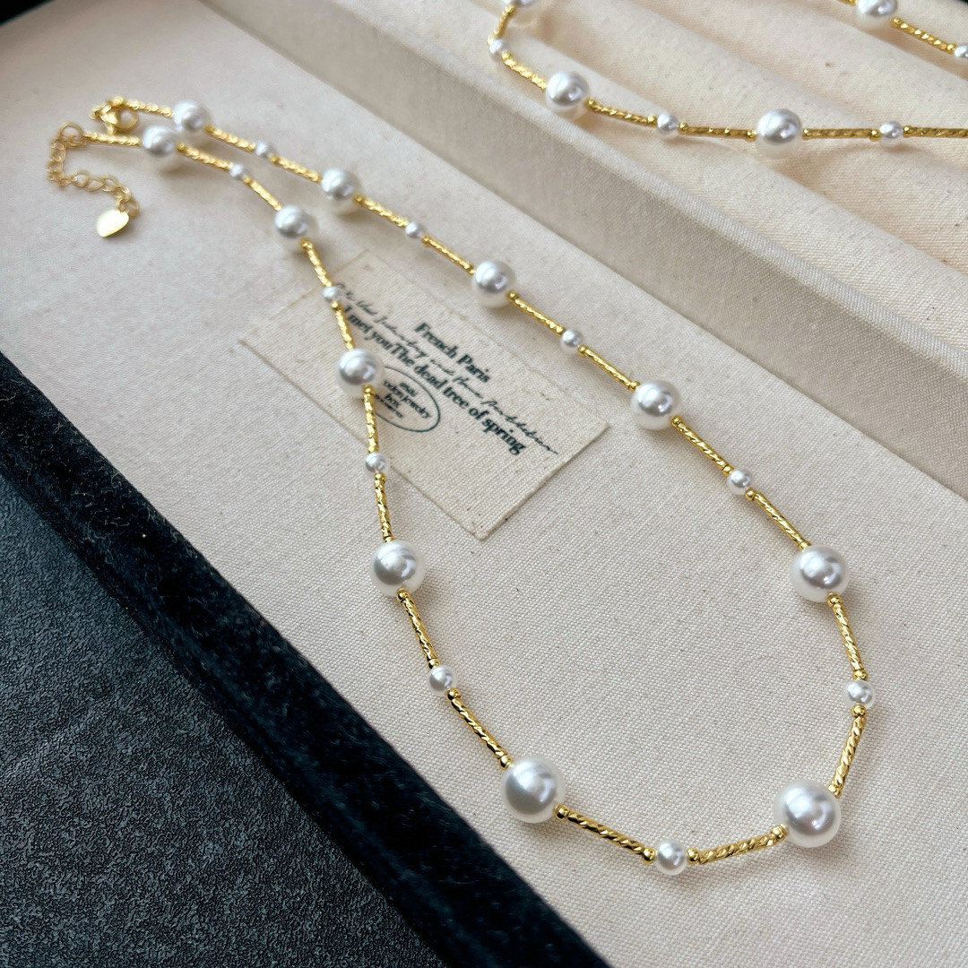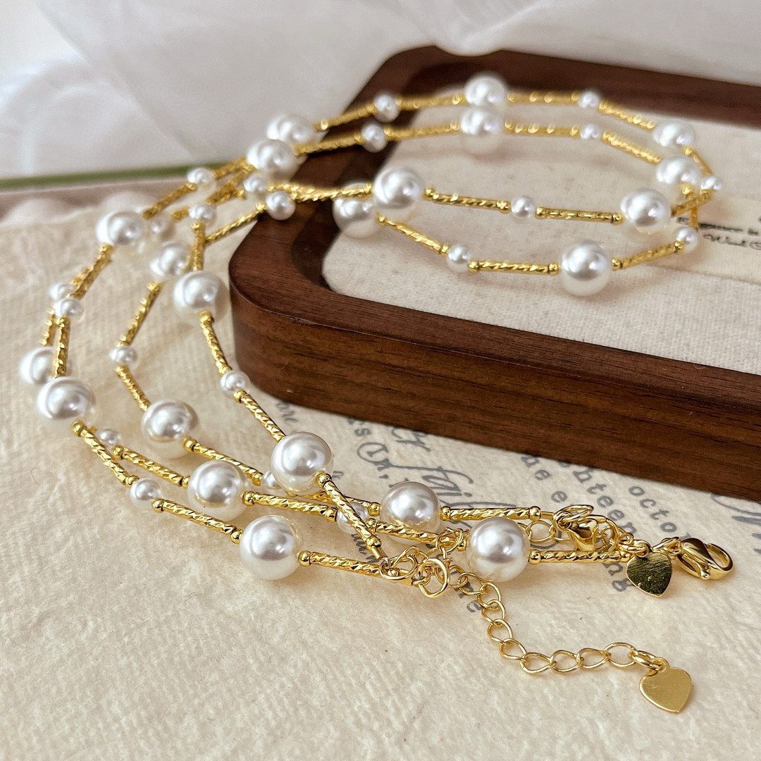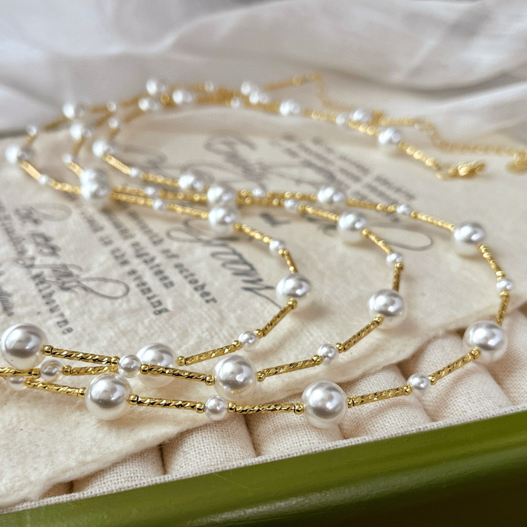 繁星点点法式竹节施家珍珠项链满天星冷淡轻奢高级锁骨链日韩时尚