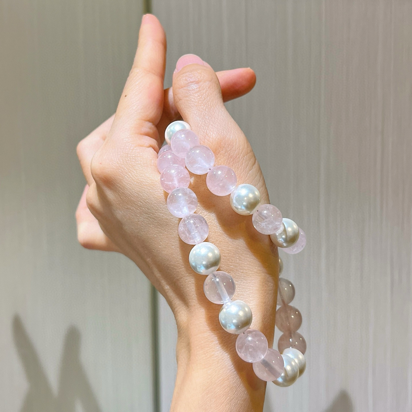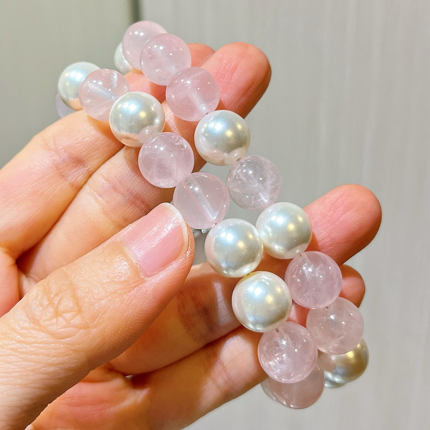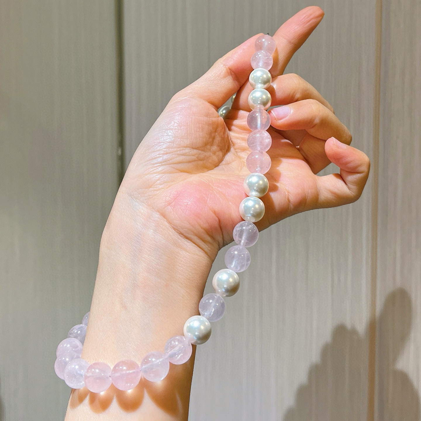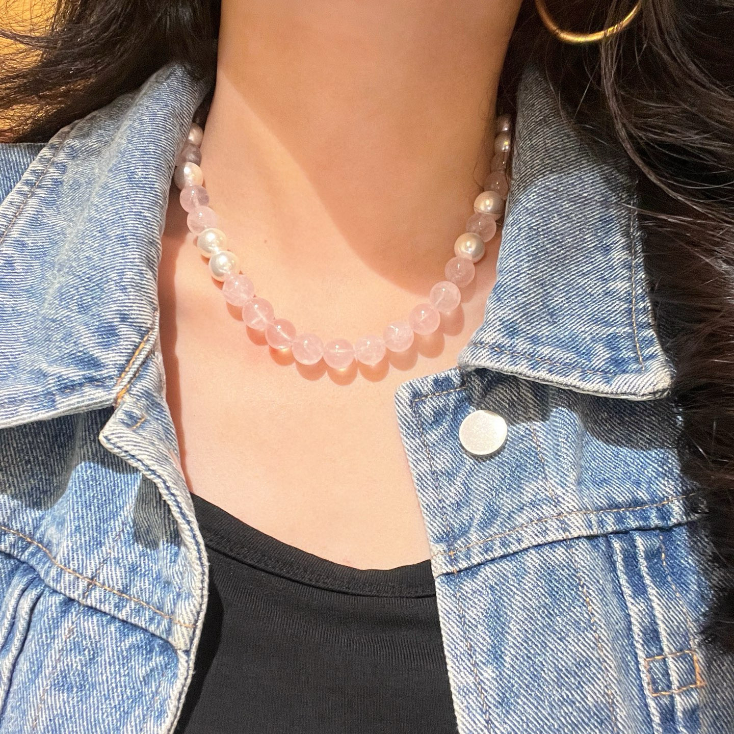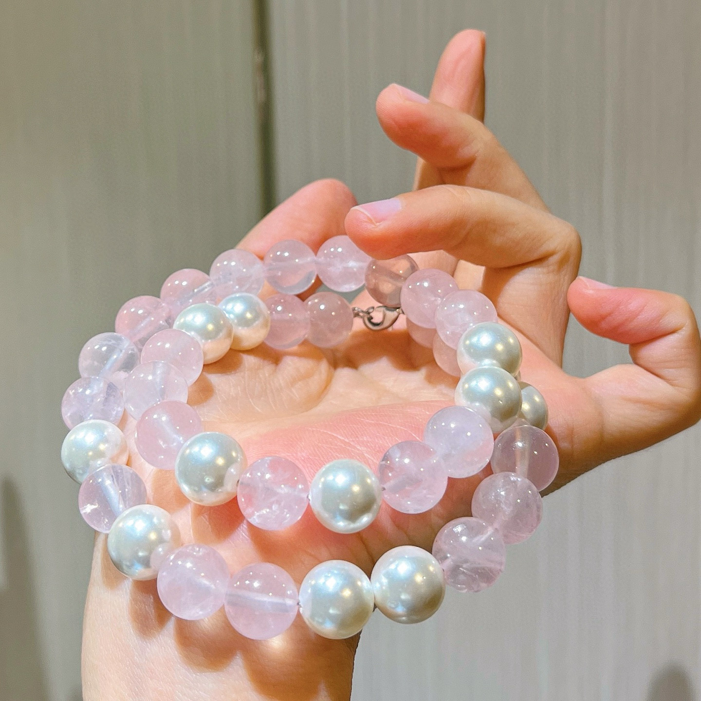 10mm天然粉晶人造珍珠贝珠项链锁骨链轻奢小众设计感高级气质颈链
