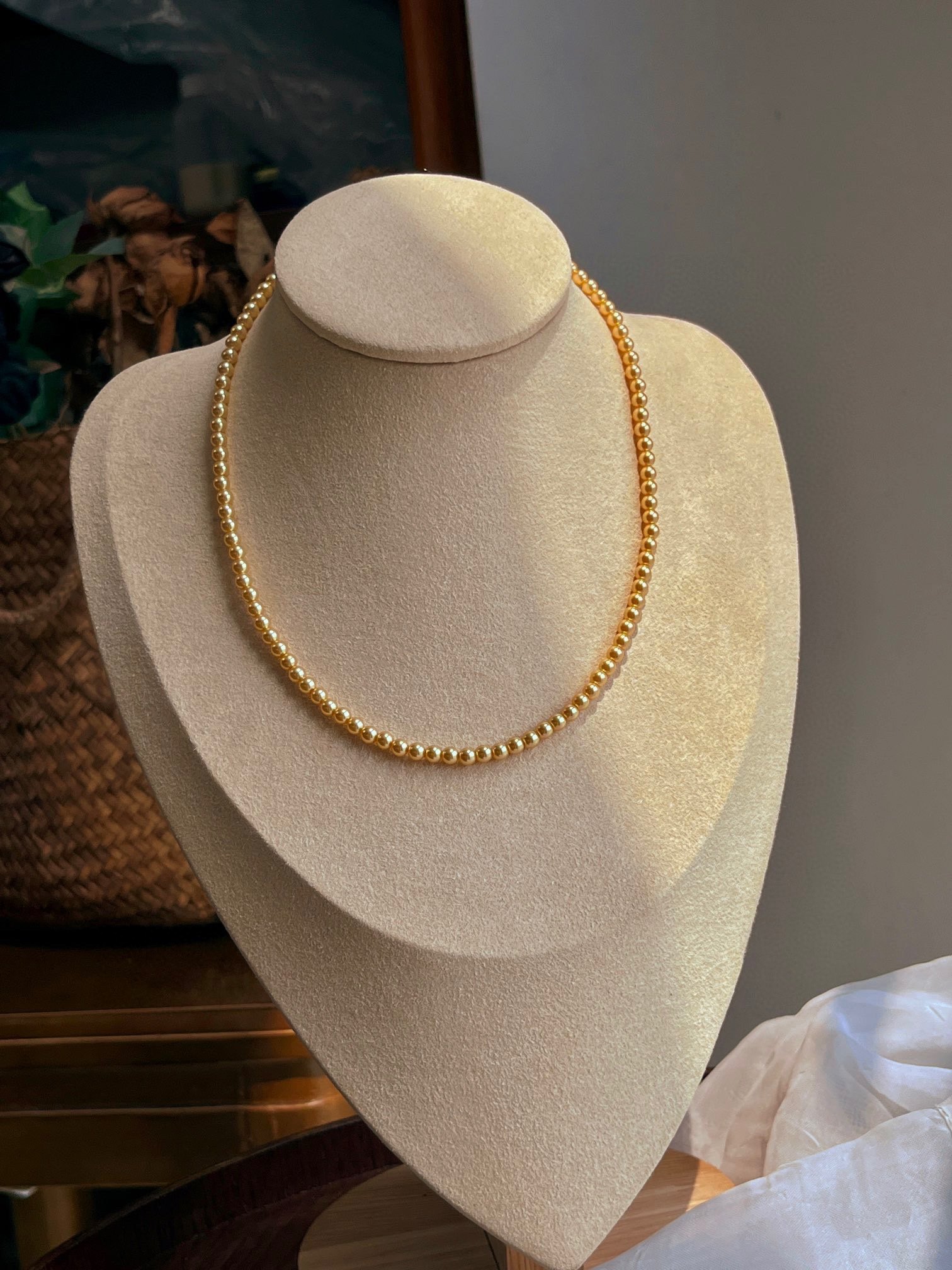 4mm浅金色baby珠正圆施家珍珠锁骨链高级感小众时尚百搭气质项链