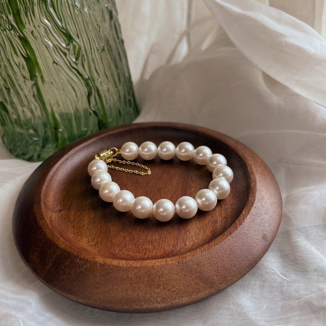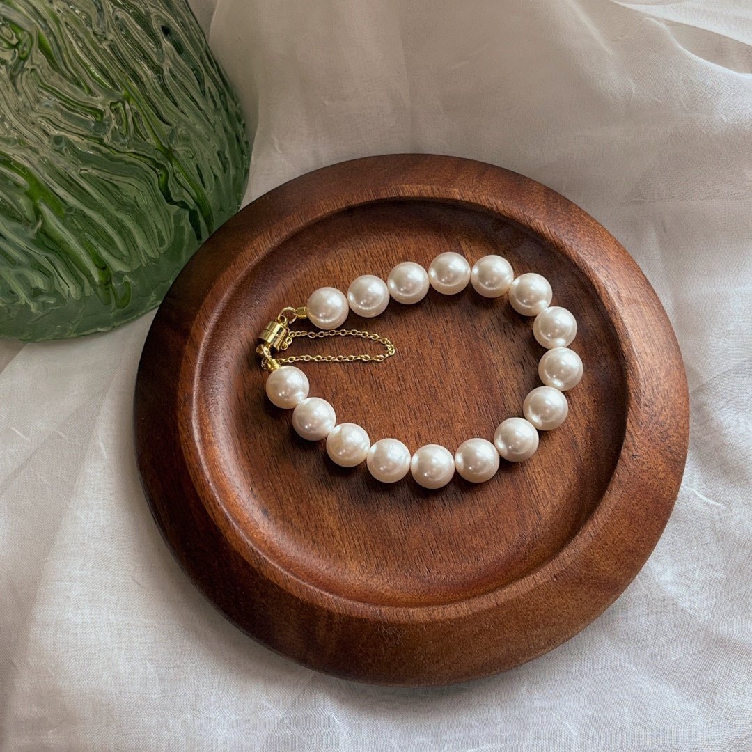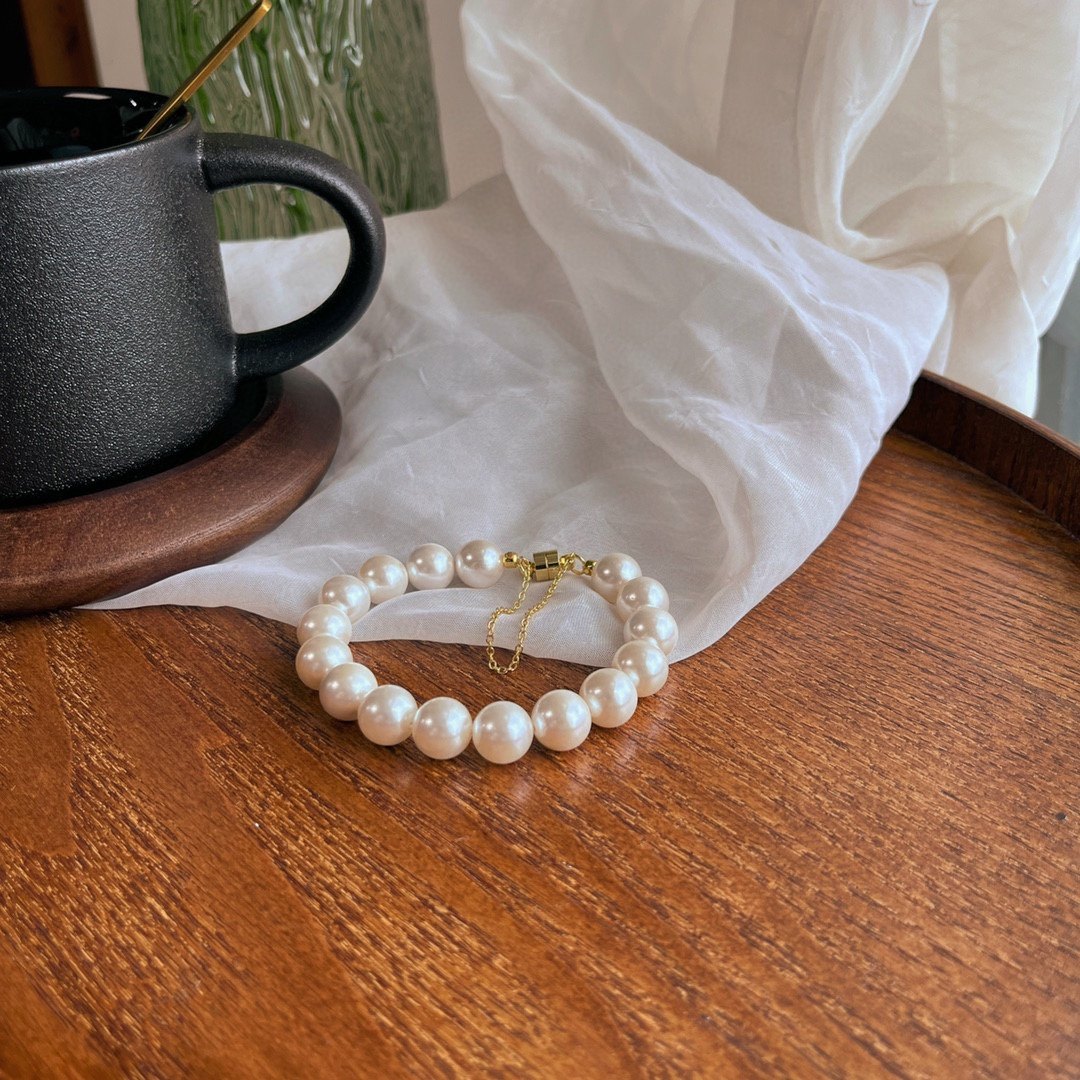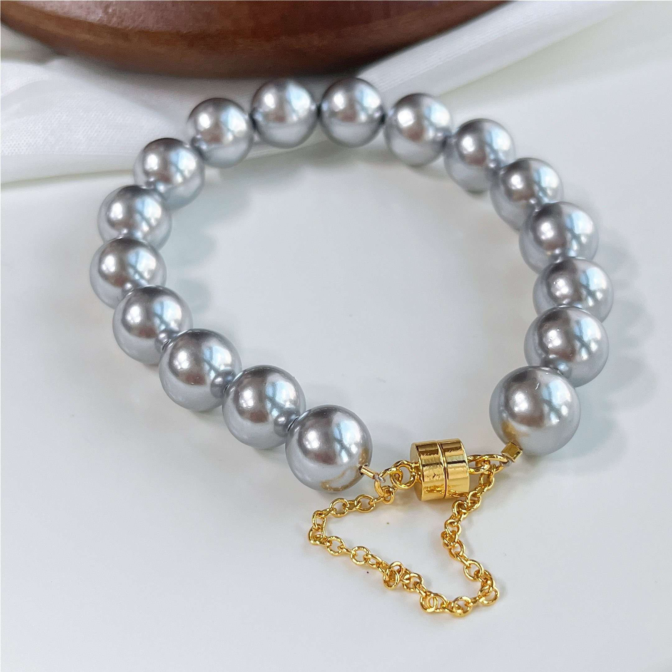 10mm天然深海铂金灰贝珠手链女简约磁铁扣百搭小众女新款送闺蜜