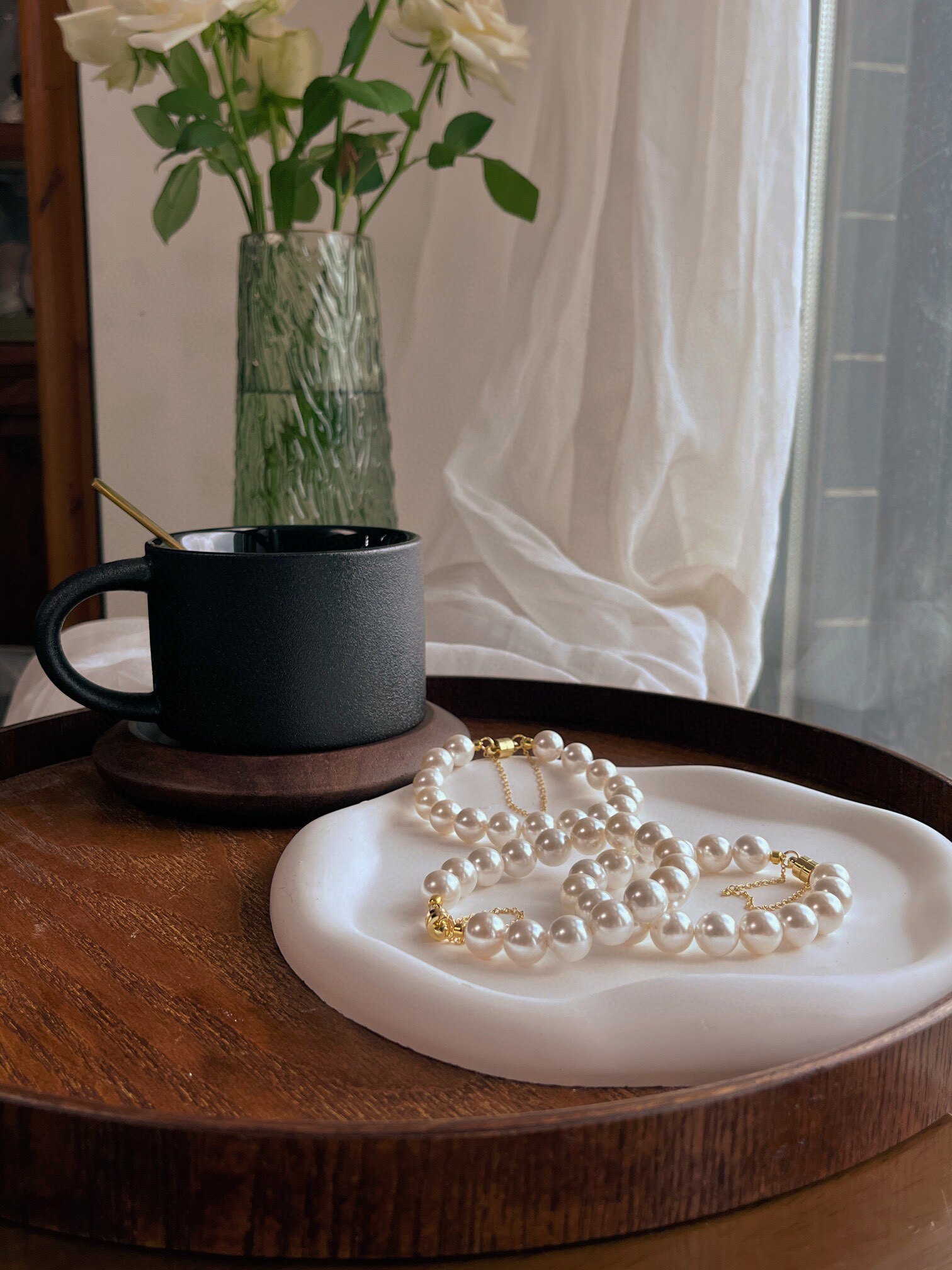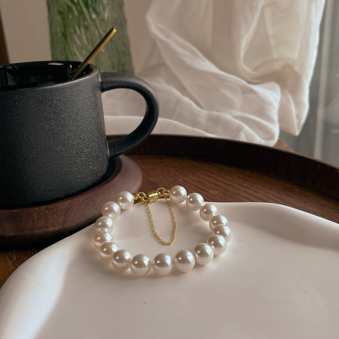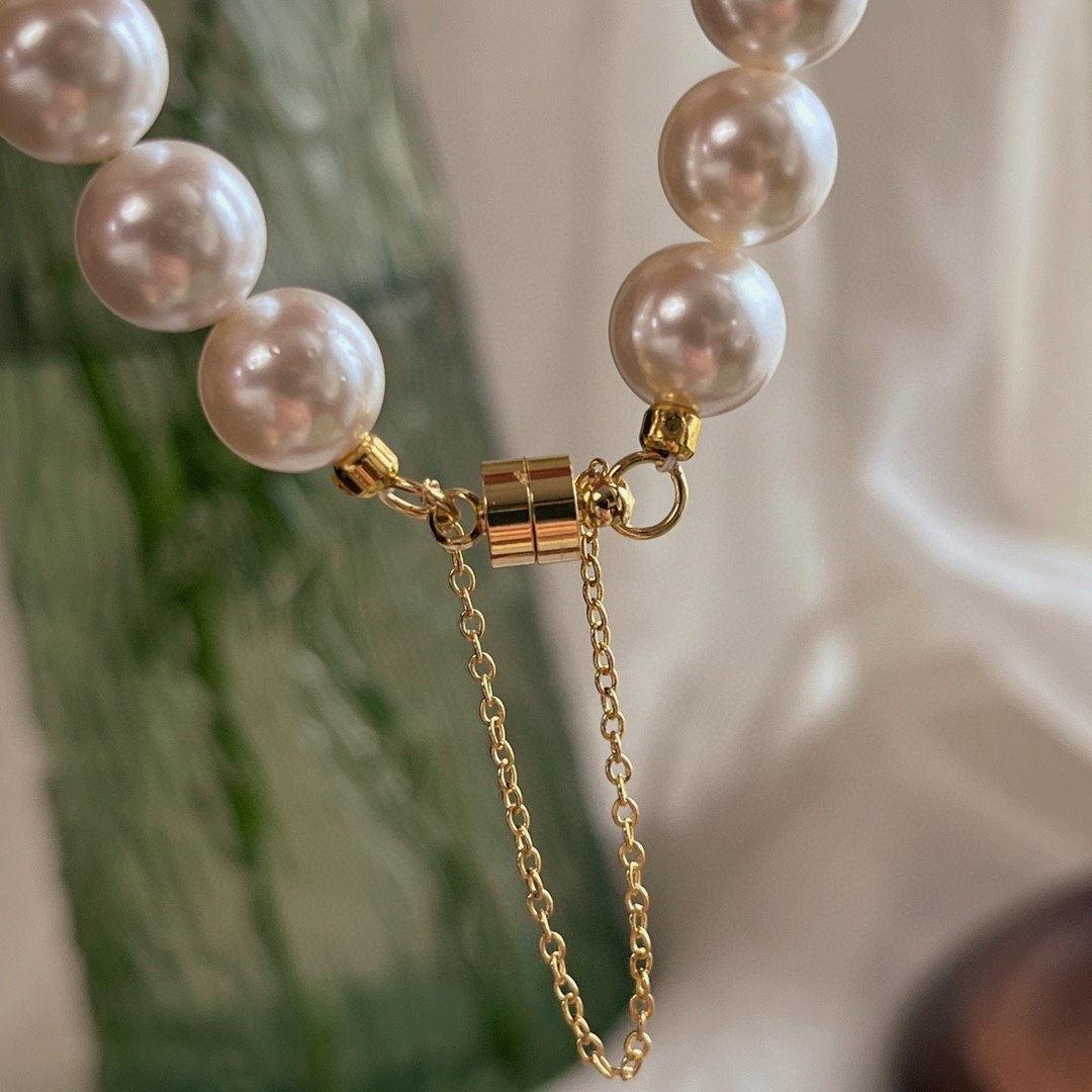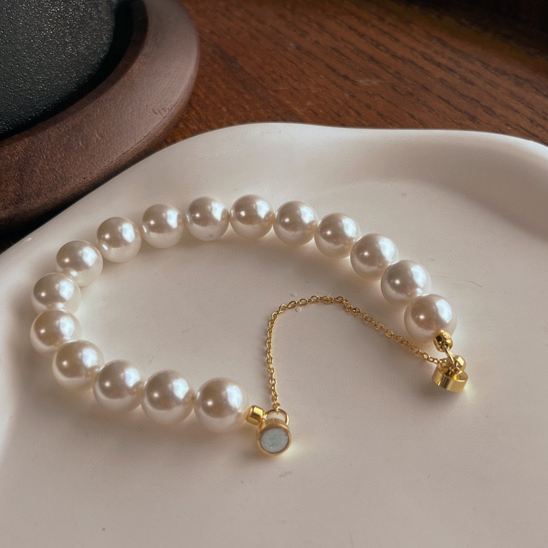 10mm天然深海铂金灰贝珠手链女简约磁铁扣百搭小众女新款送闺蜜