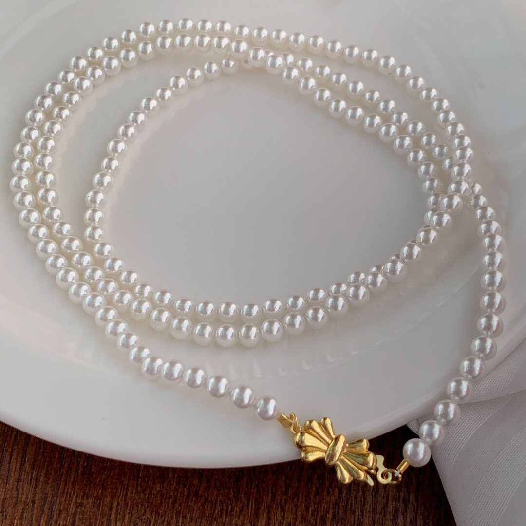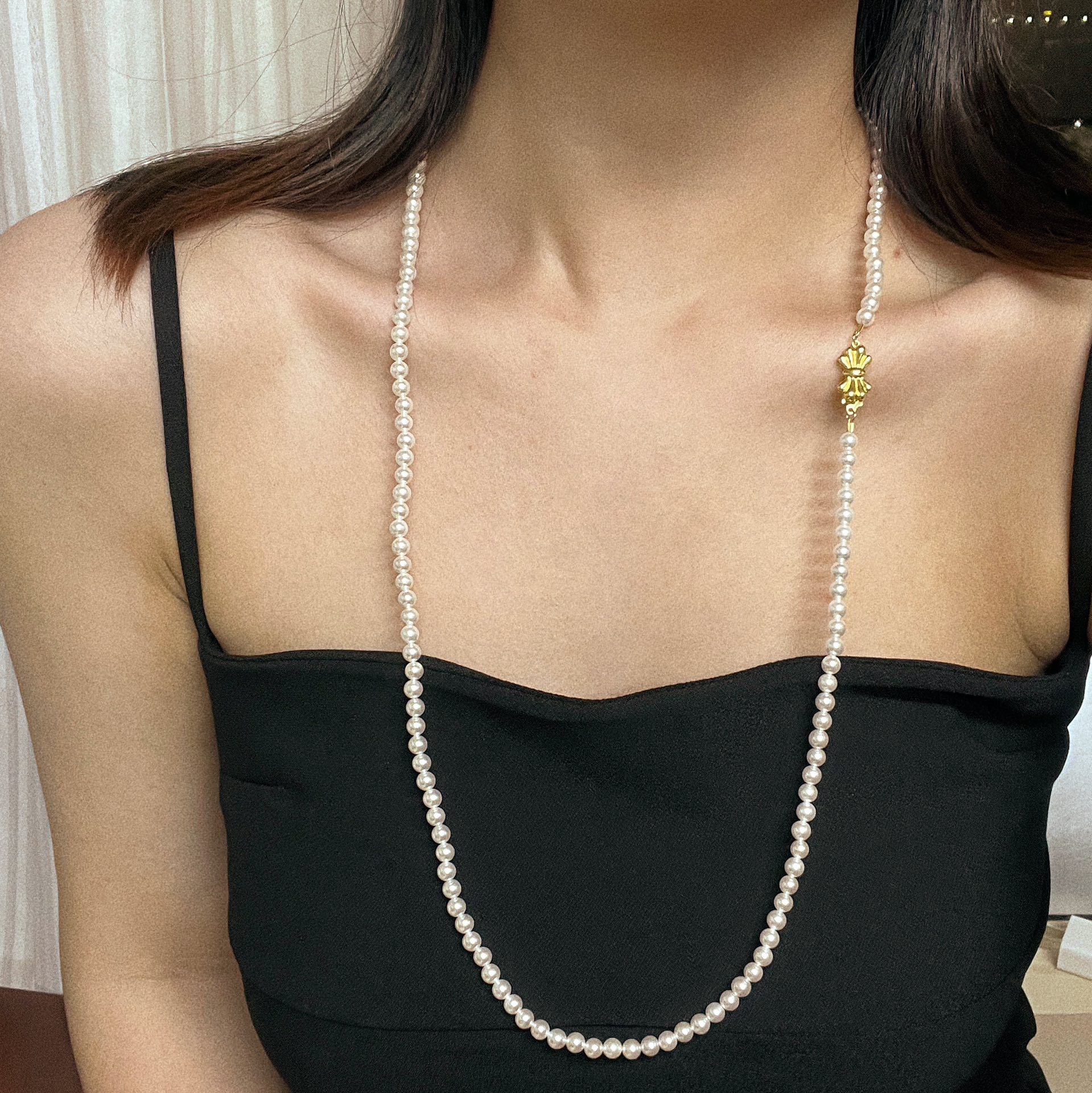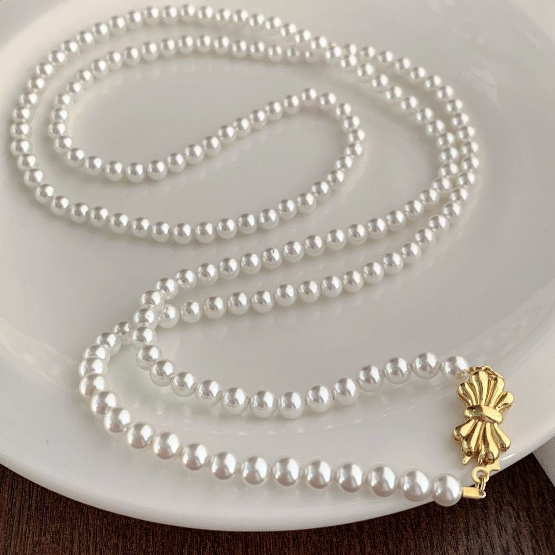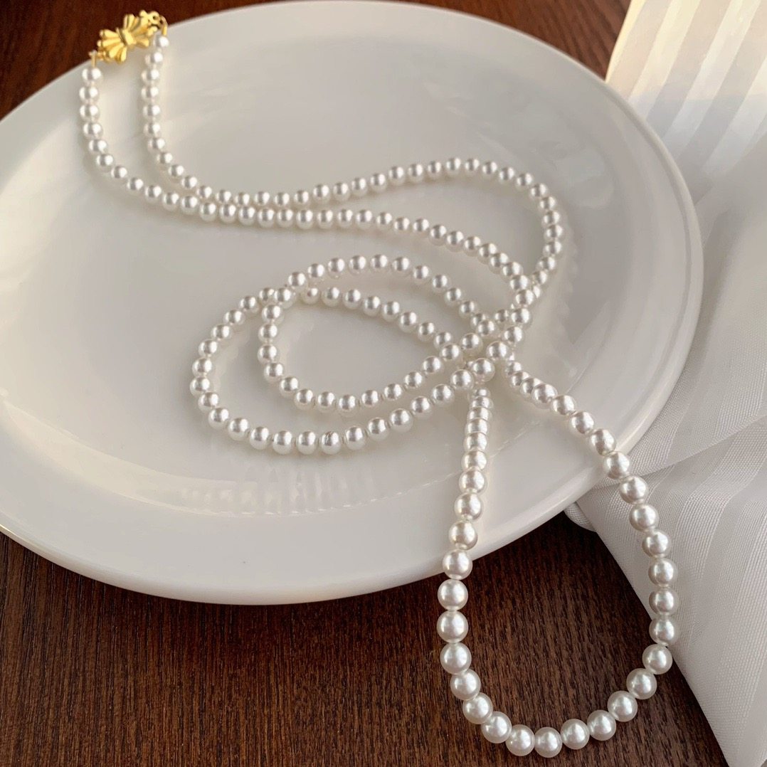 小个性香风5mm正圆人造水晶珍珠项链简约易冷淡长款毛衣链90厘米