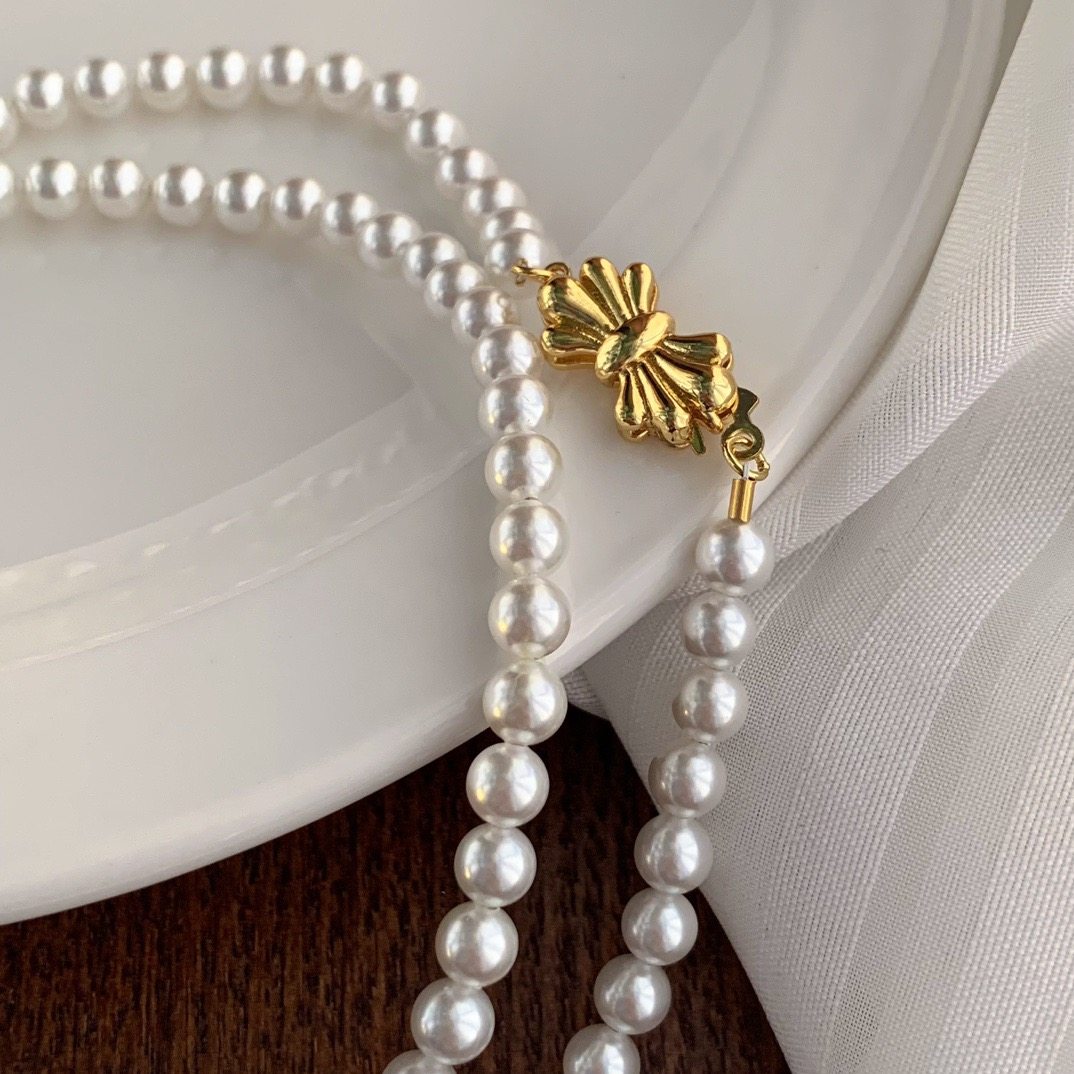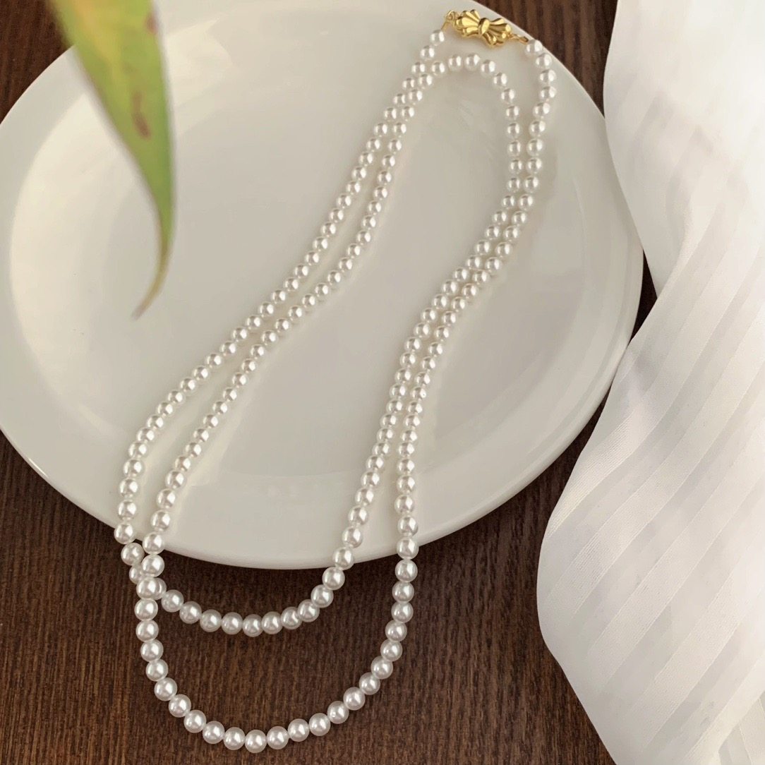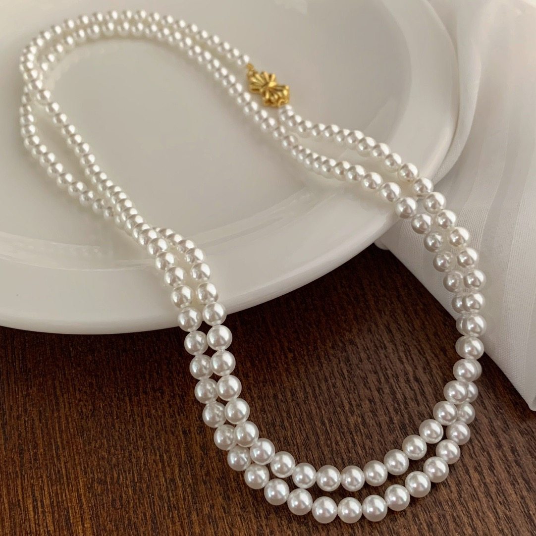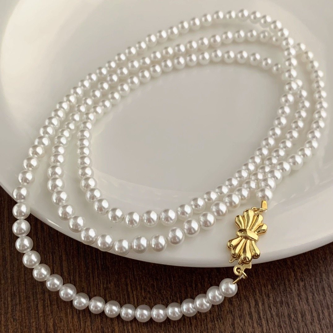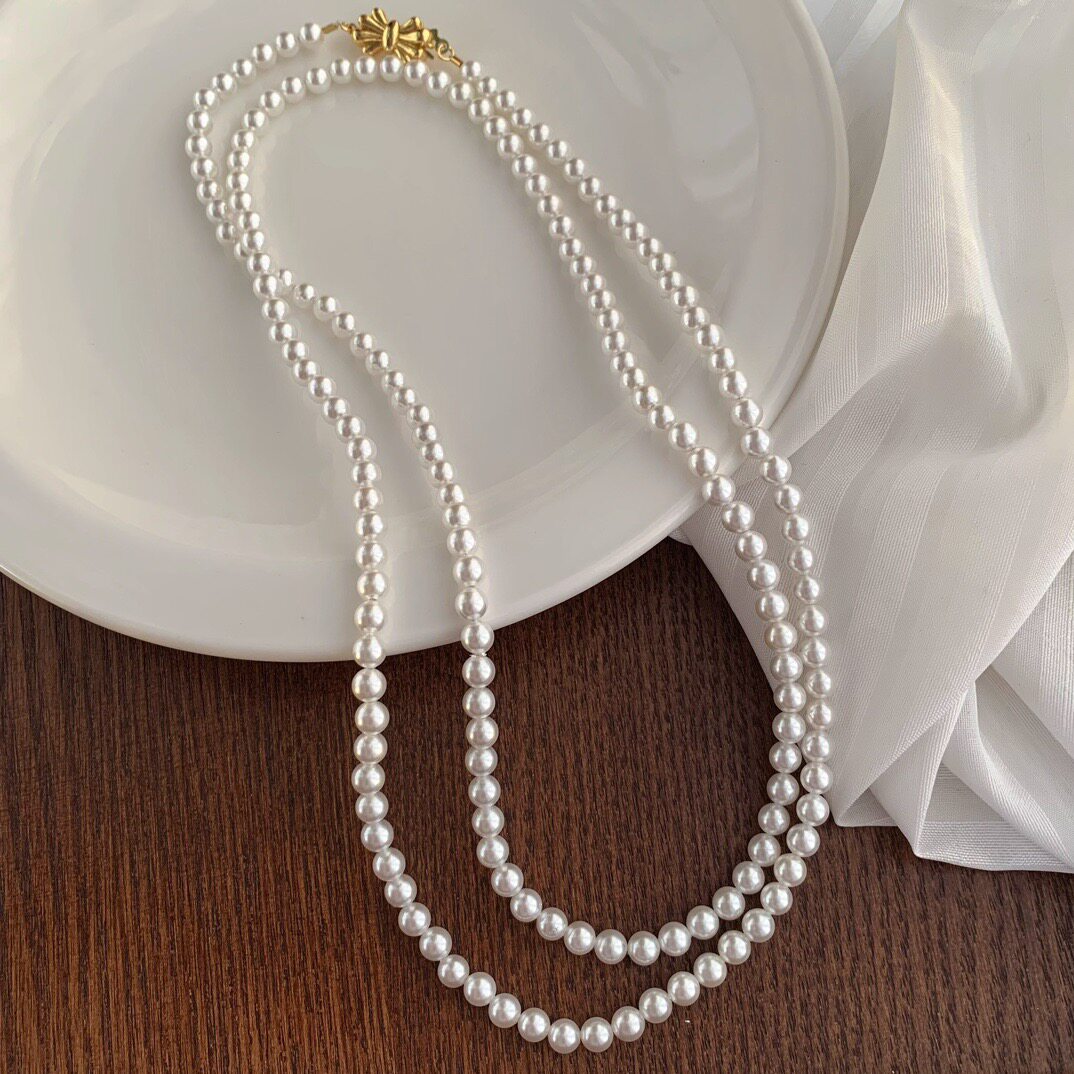 小个性香风5mm正圆人造水晶珍珠项链简约易冷淡长款毛衣链90厘米