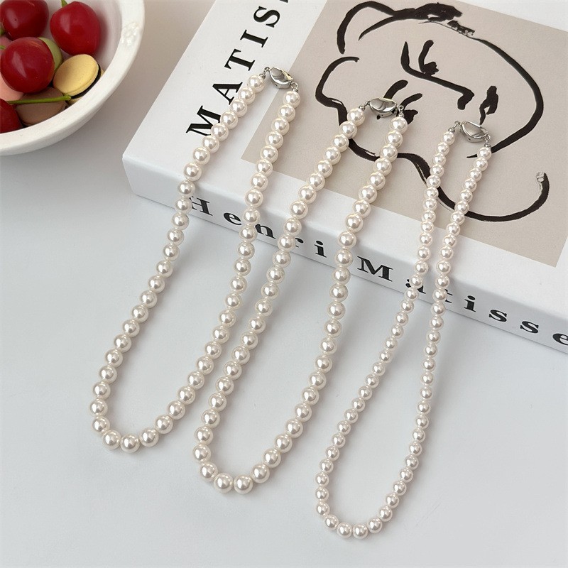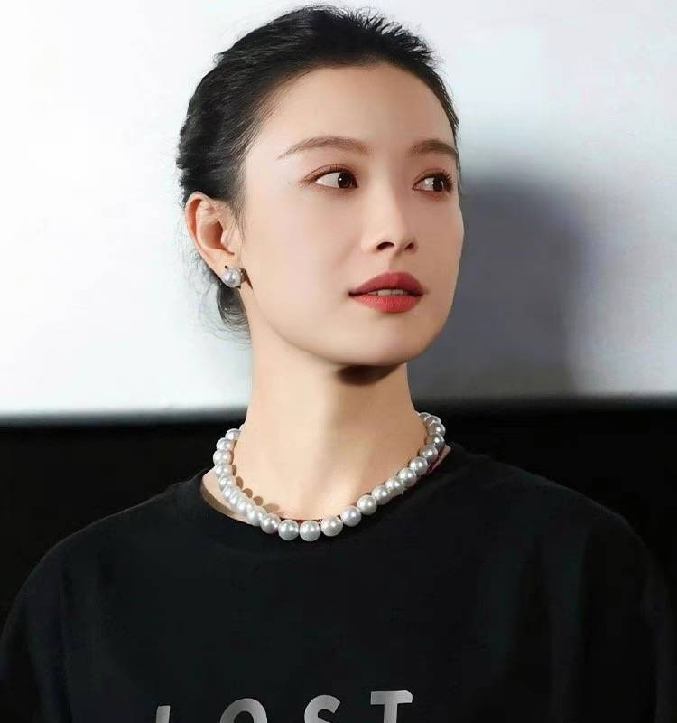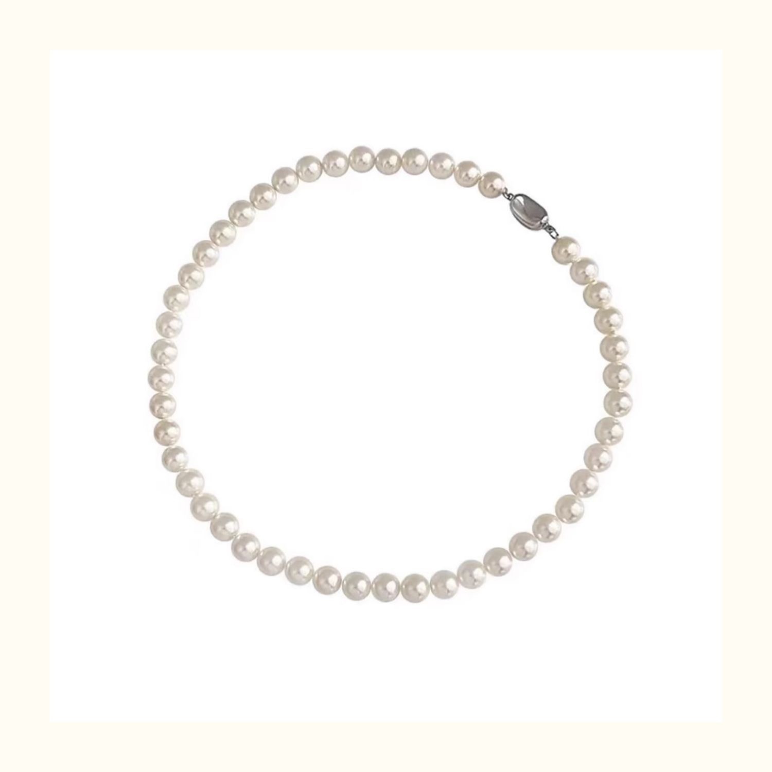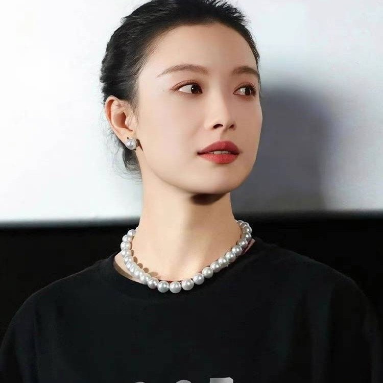 正圆施家珍珠项链女 小众轻奢颈链锁骨链 钛钢不褪色元宝扣毛衣链