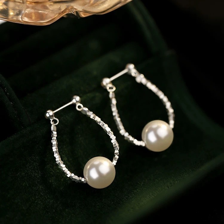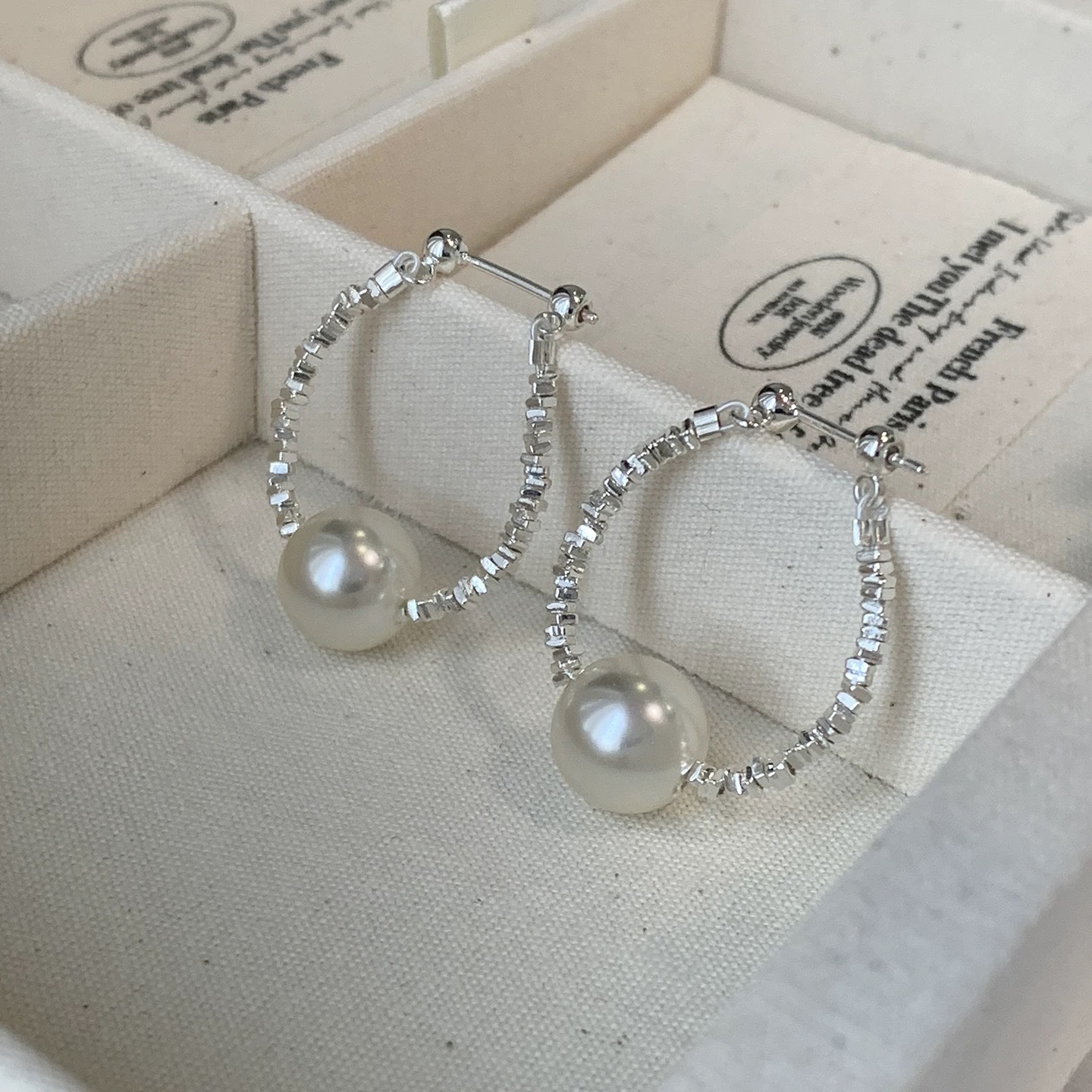碎银子珍珠耳环女 气质百搭设计感耳扣 s925银针简约冷淡风耳饰