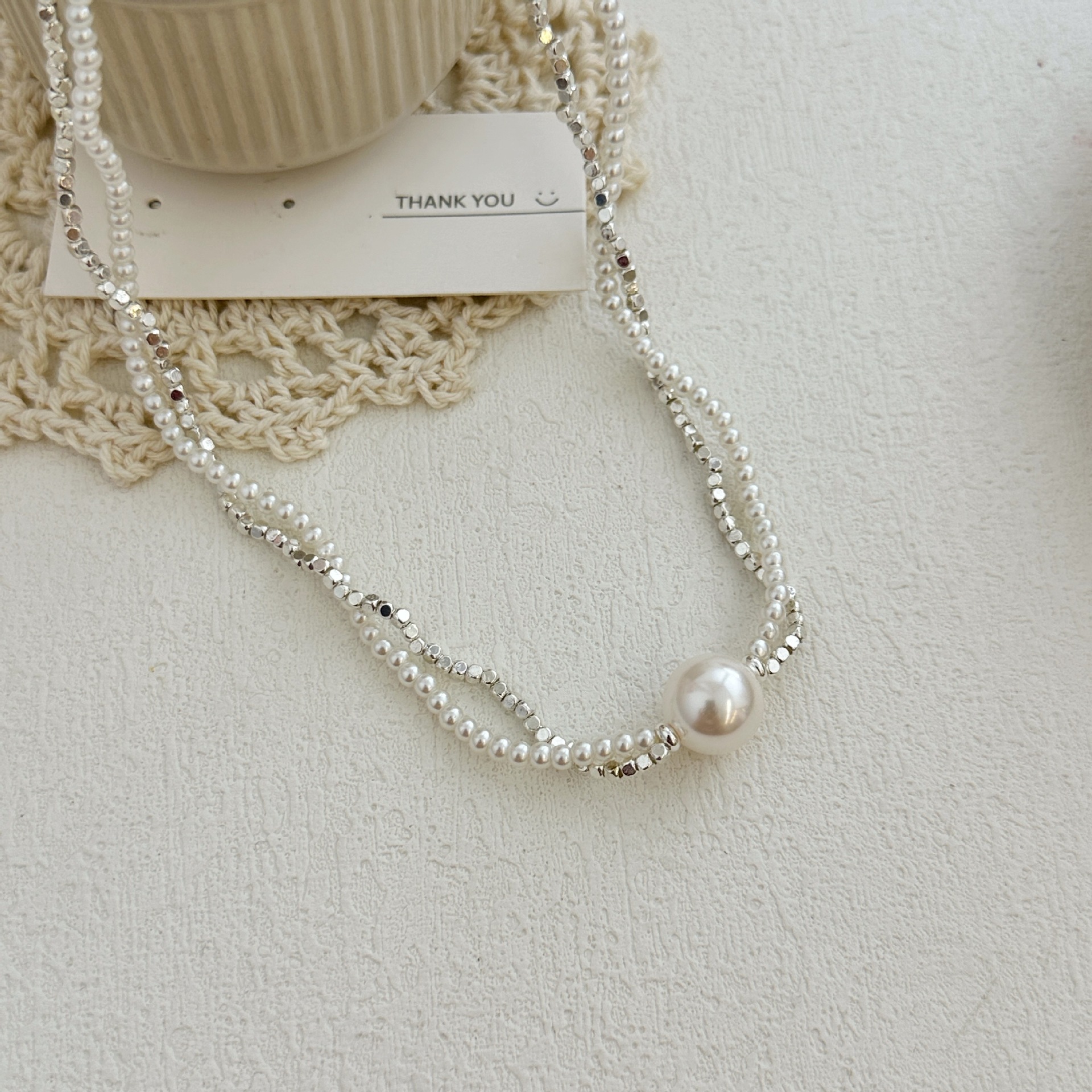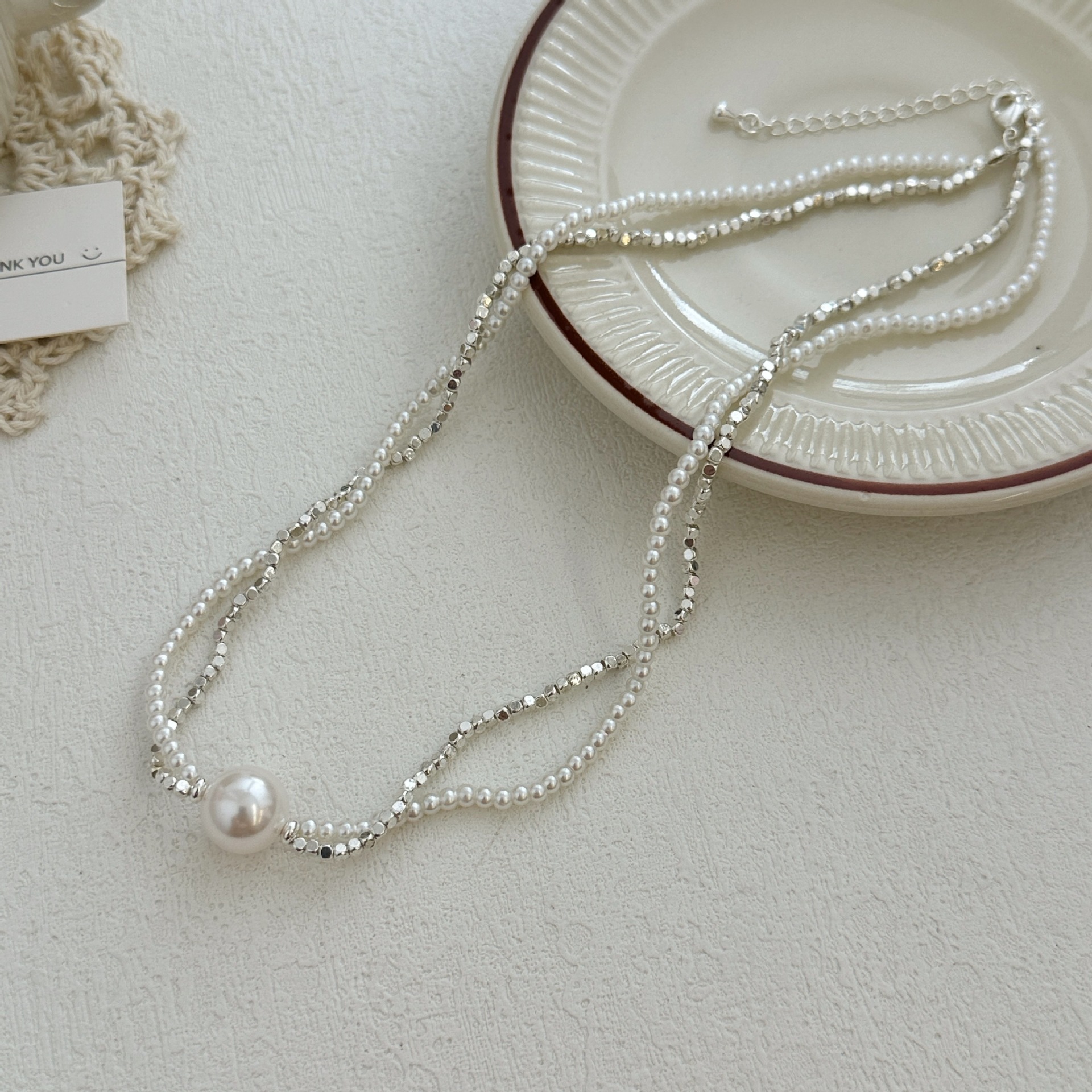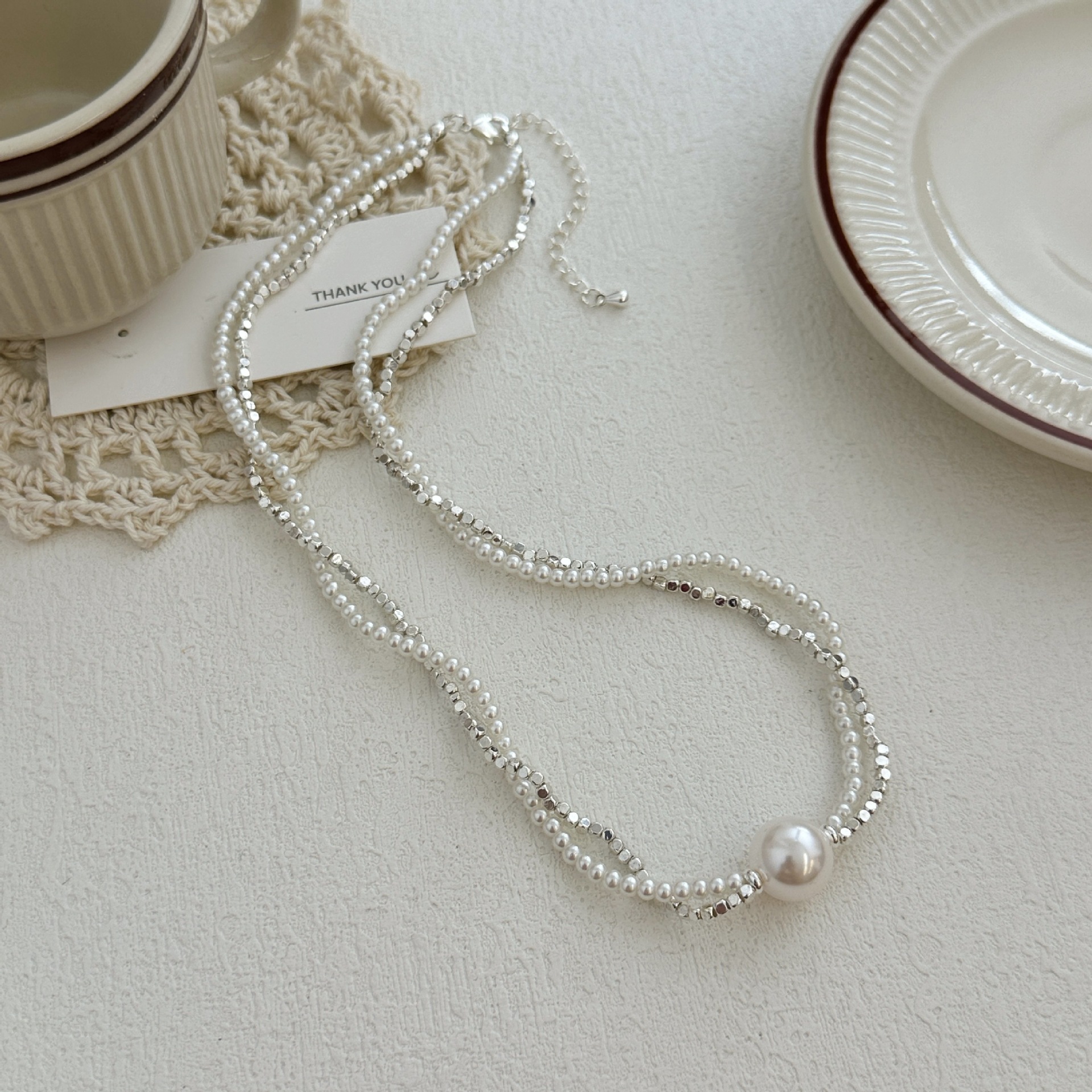 双层碎银子珍珠项链女 高级感ins风轻奢气质个性四季款锁骨链颈链