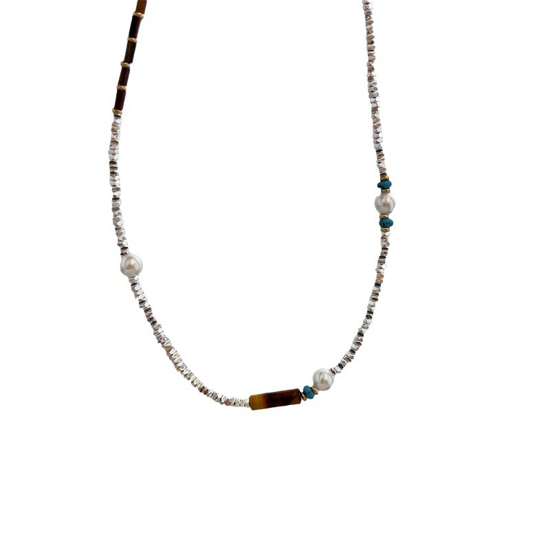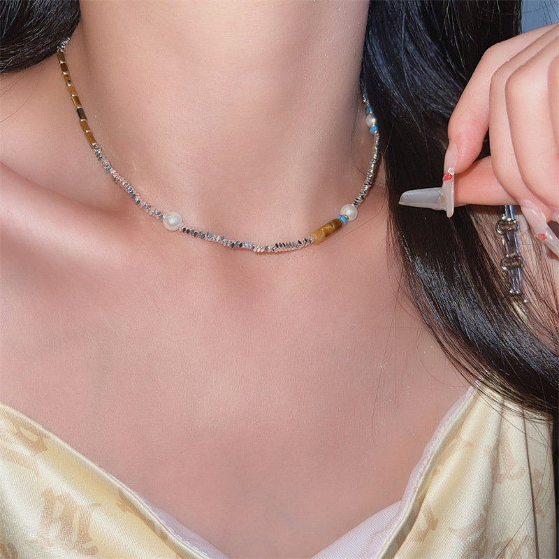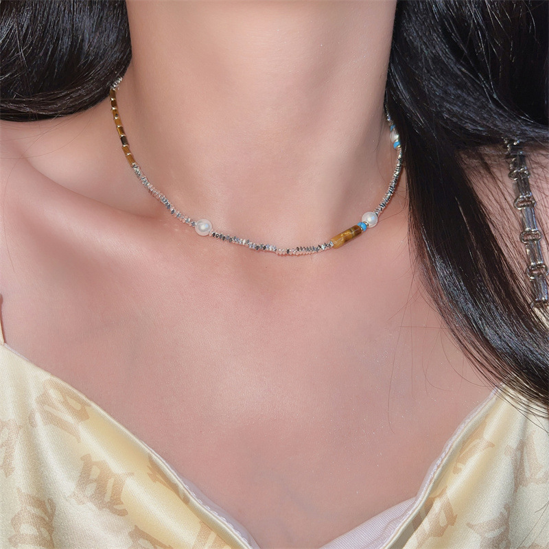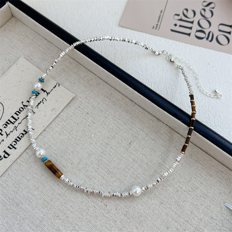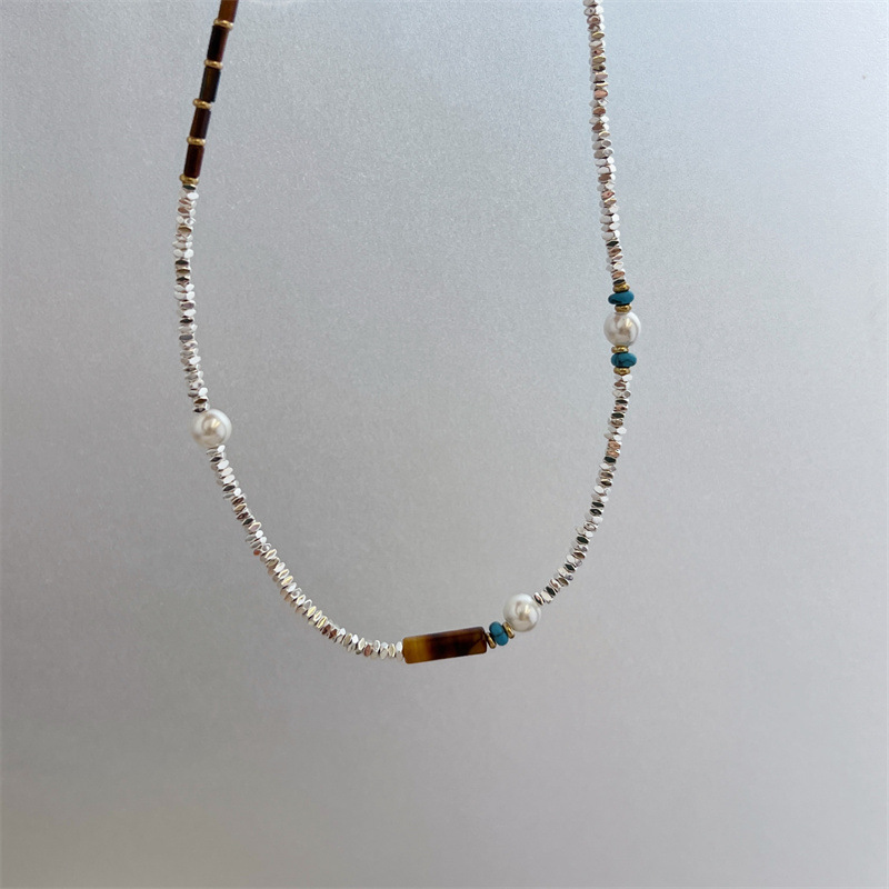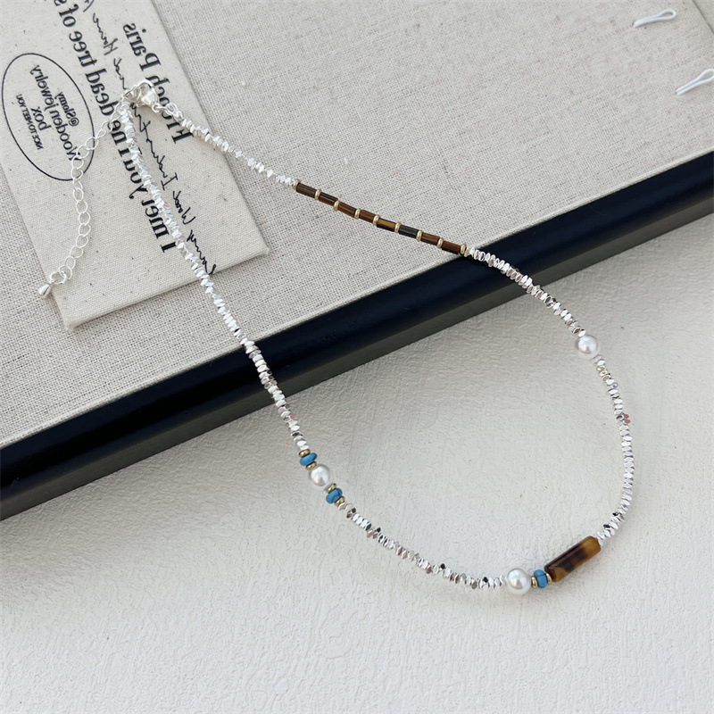 新中式碎银子仿珍珠项链女 轻奢小众高级感锁骨链 复古串珠毛衣链