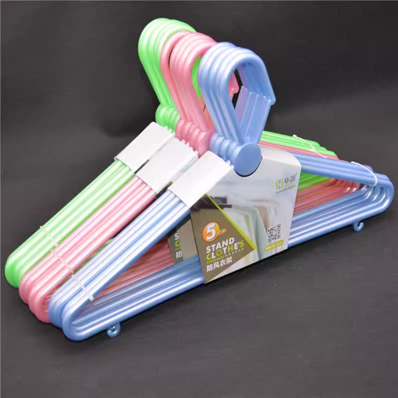 自动卡扣固定华湖H343塑料防风吹衣架成人衣挂高层晾晒室外衣撑