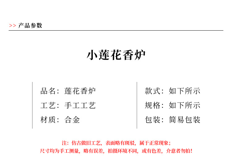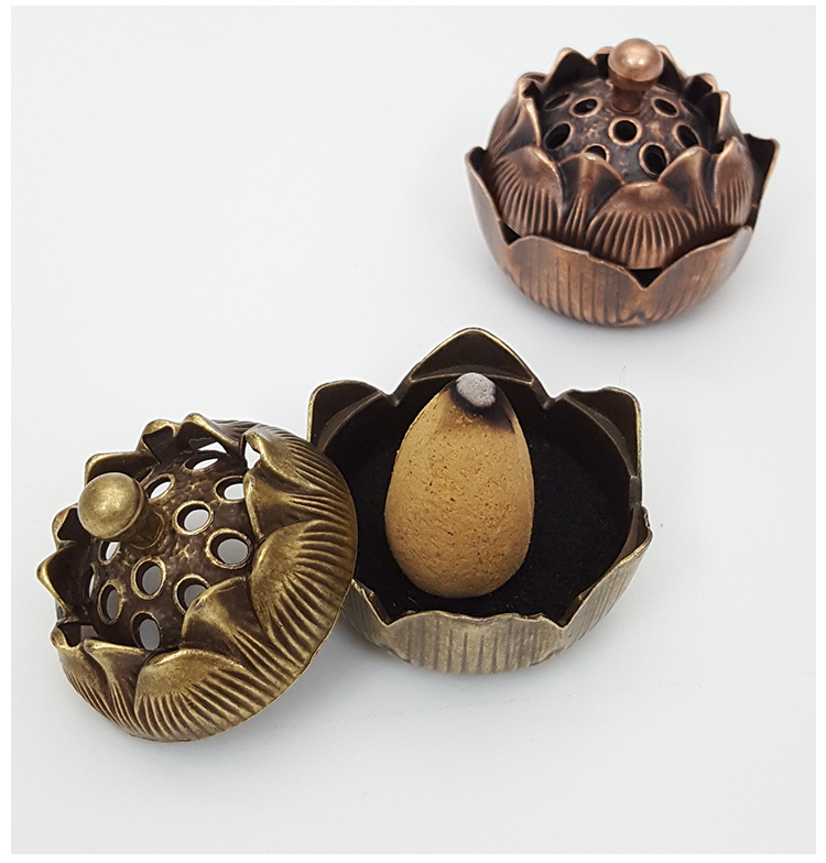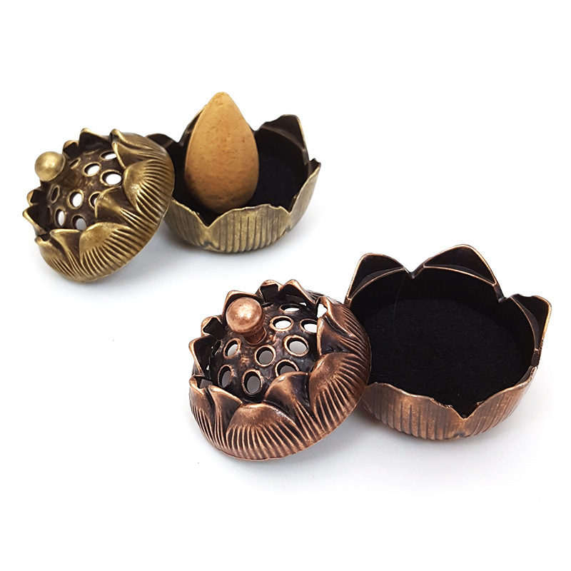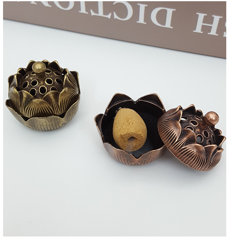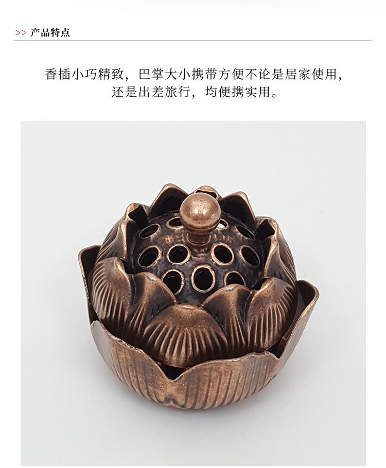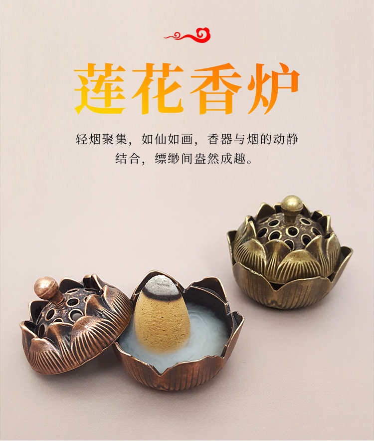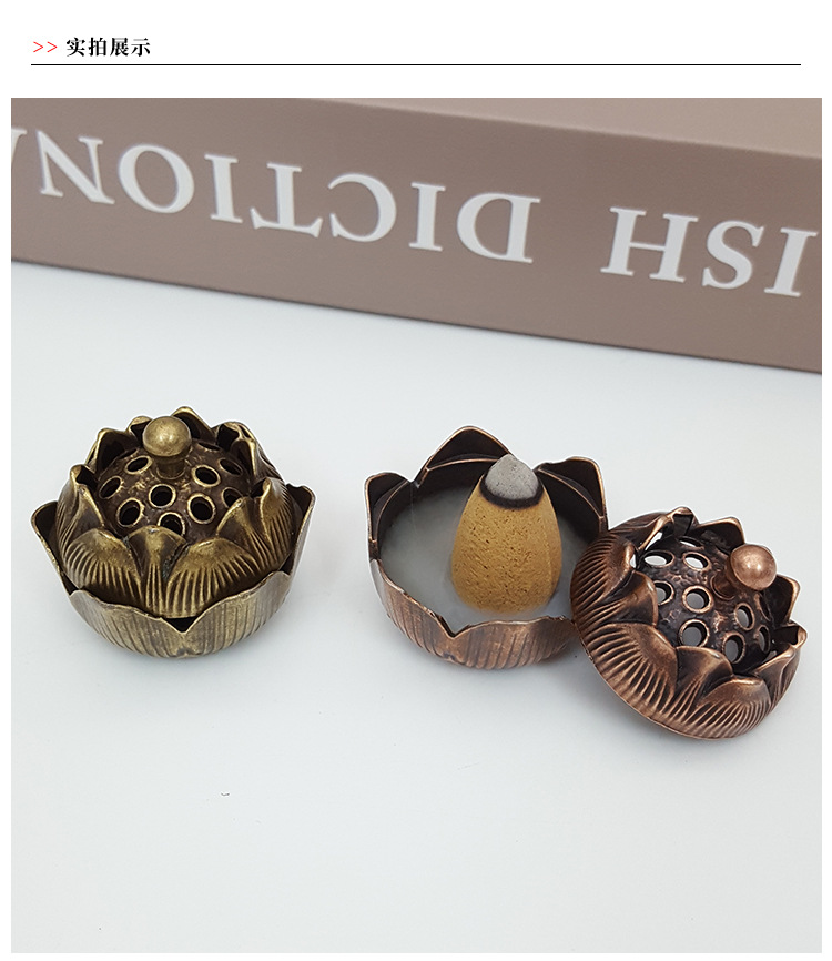 厂家批发中式合小金莲花香炉 禅意香插香炉摆件 香道复古家用办公
