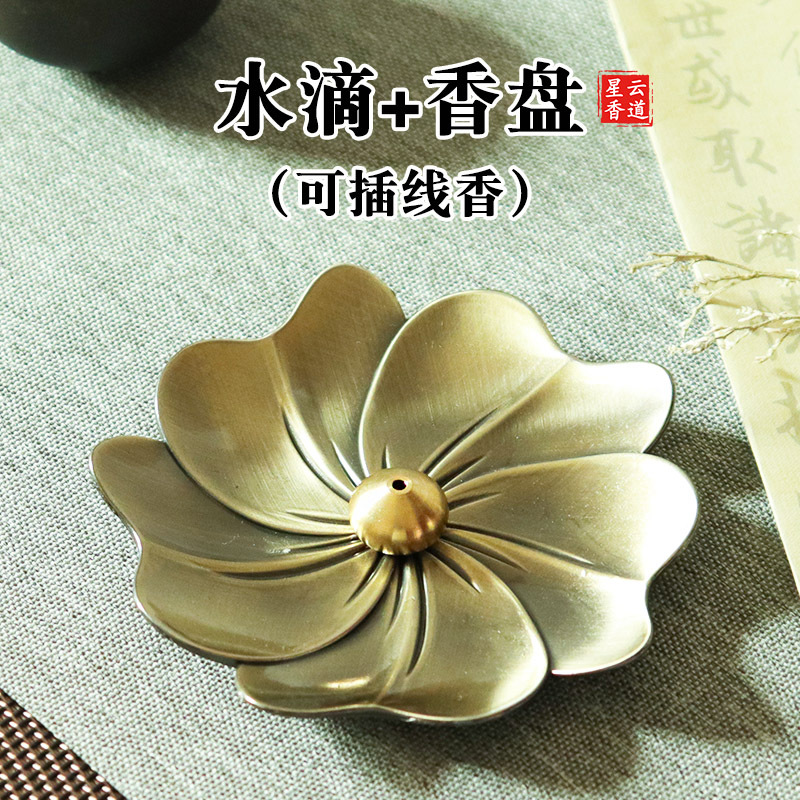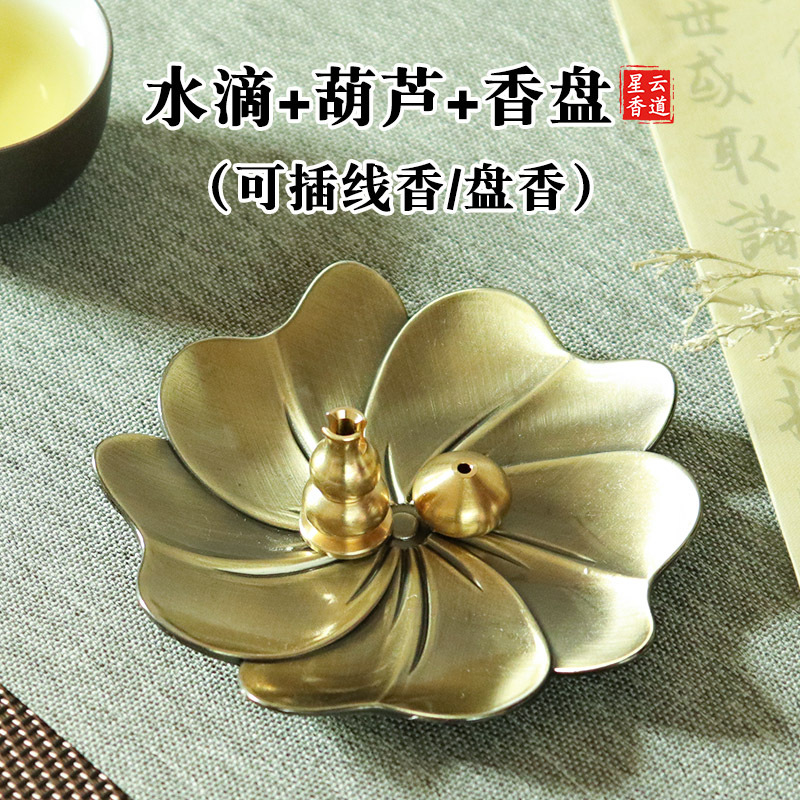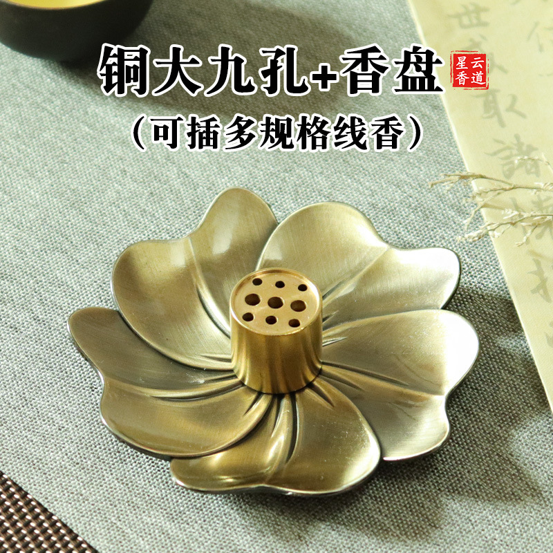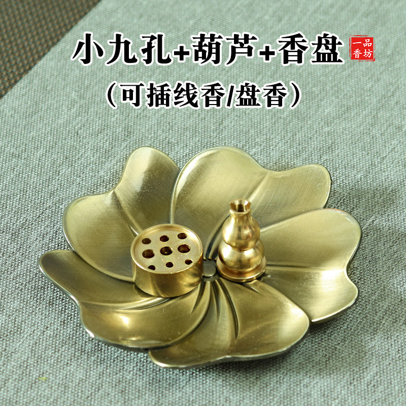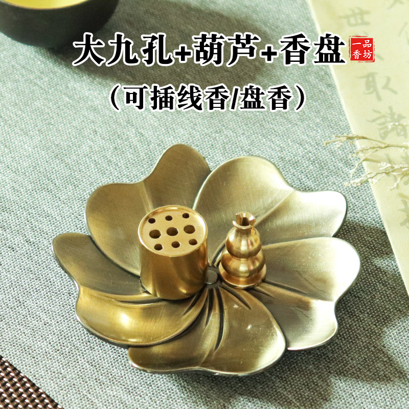 黄铜九孔香插葫芦香座大孔藏香香托线香盘香底座樱花香盘香道套装