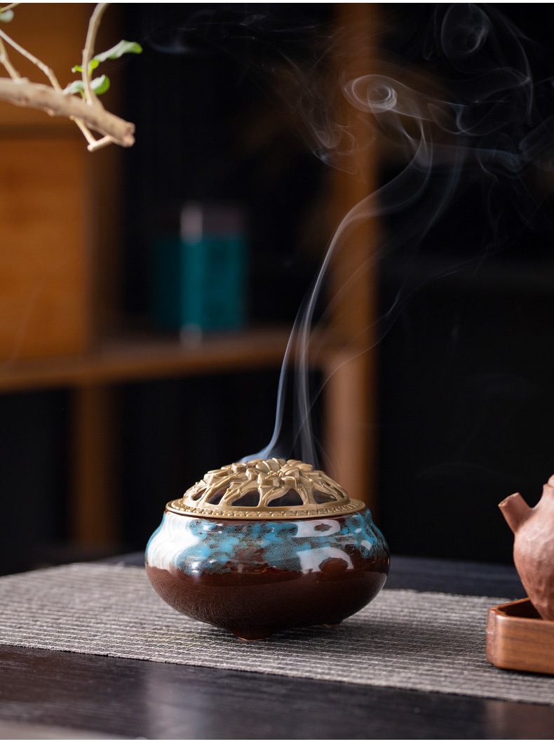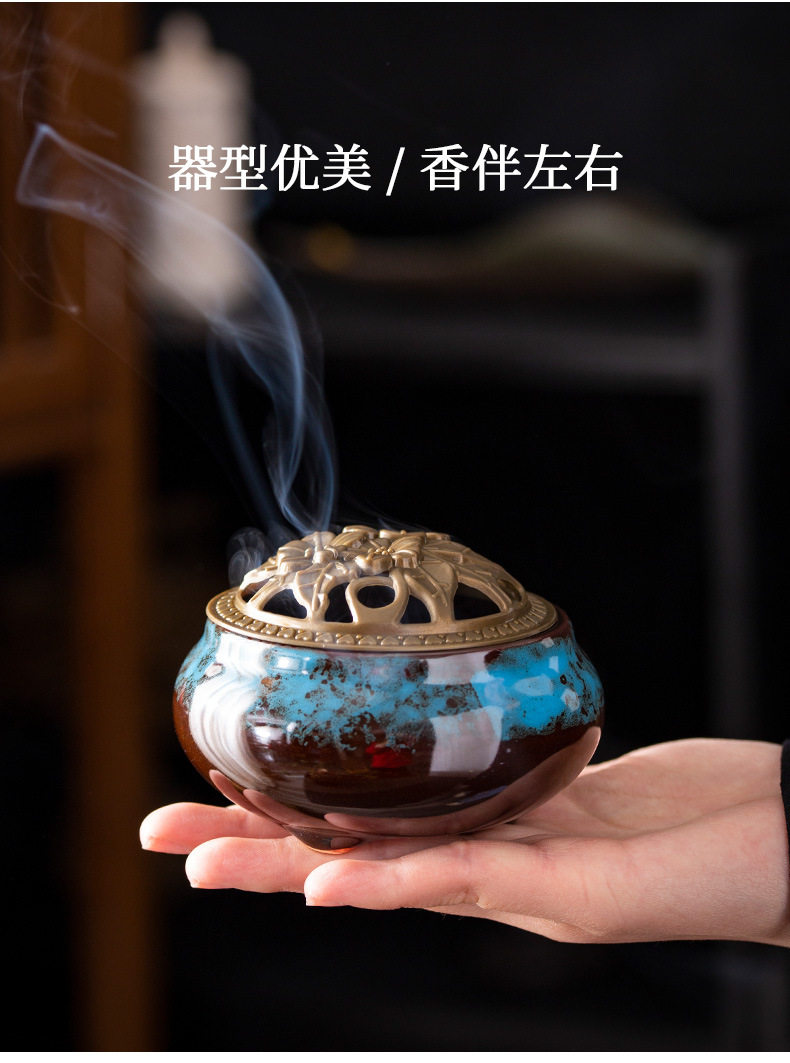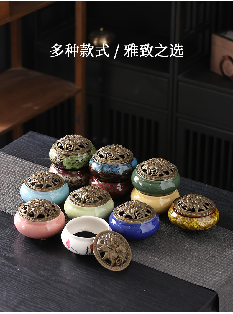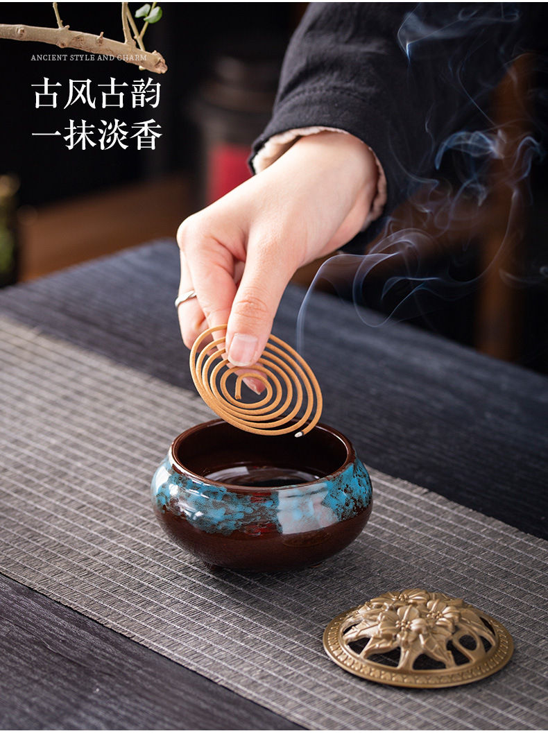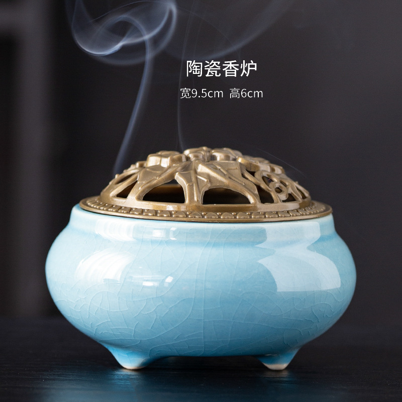 陶瓷香炉家用义乌批发熏香窑变哥窑香炉寺庙香薰盘塔香小号盘香炉