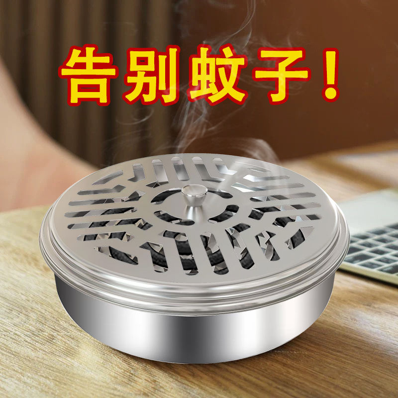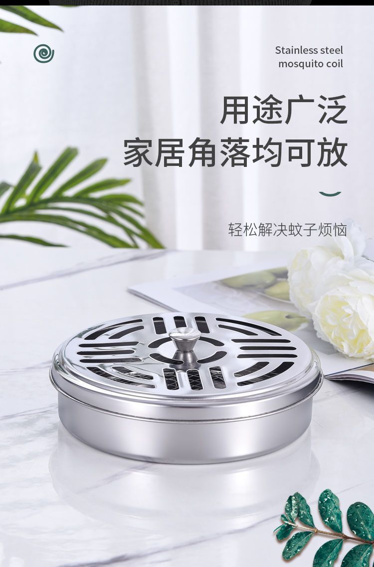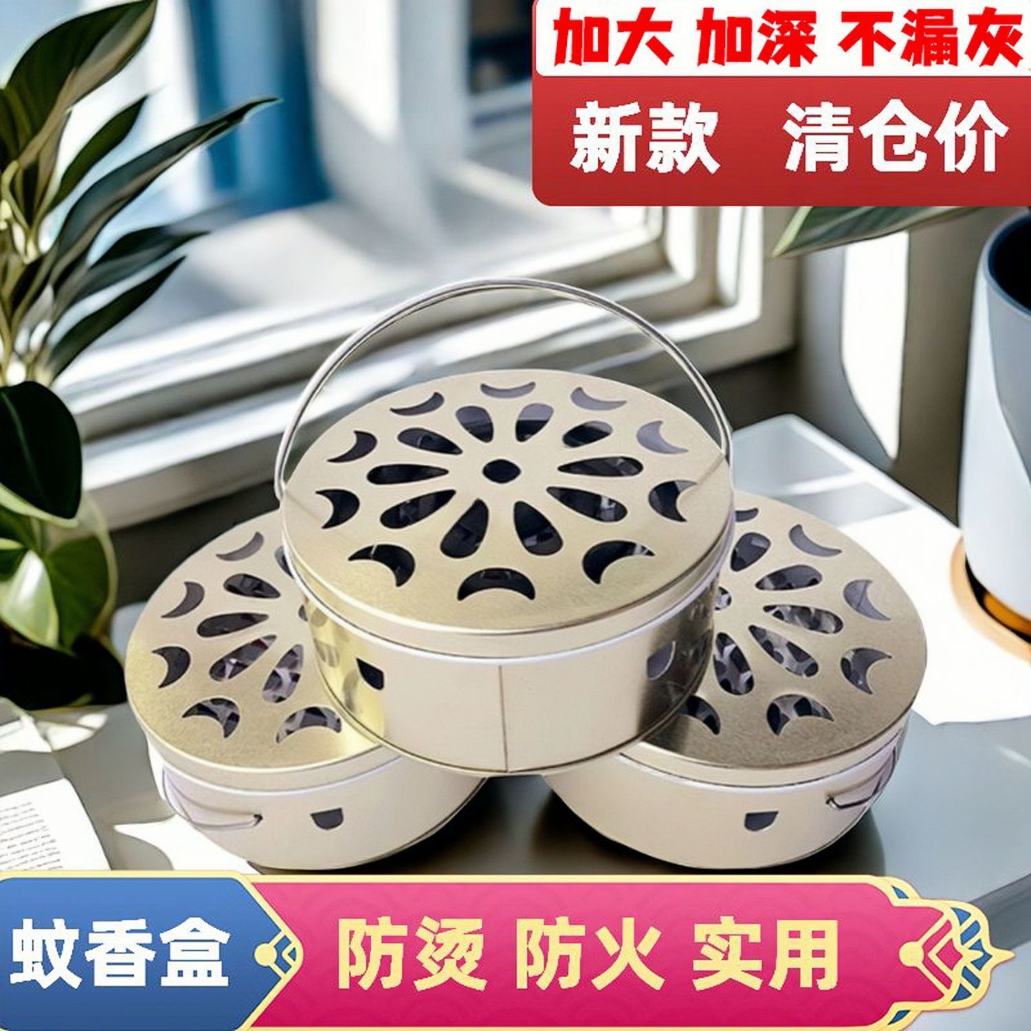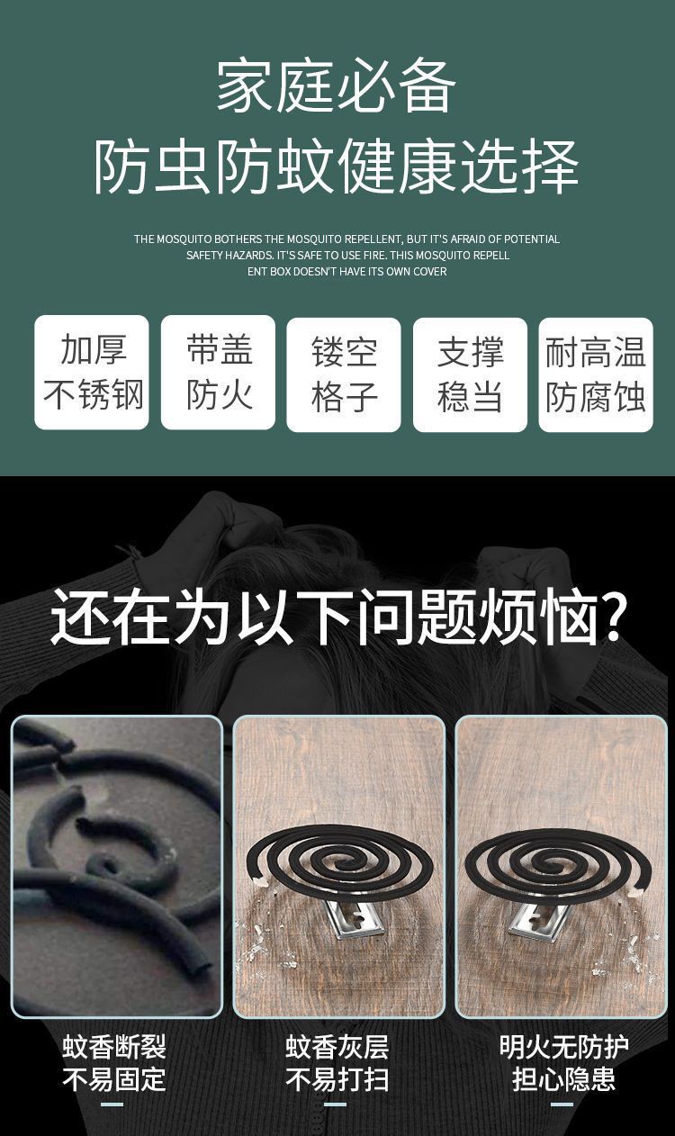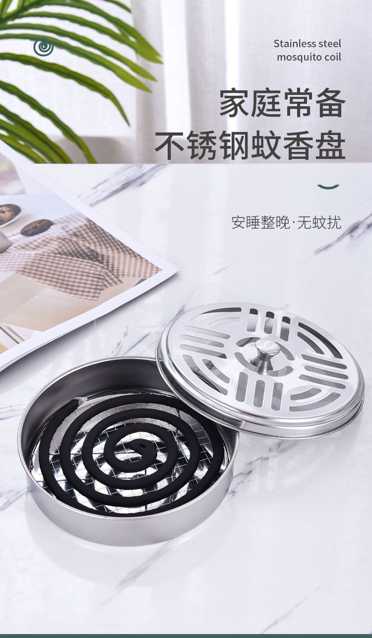防火蚊香盒家用不锈钢蚊香盘带盖除蚊盒蚊香架子创意接灰盘蚊香炉