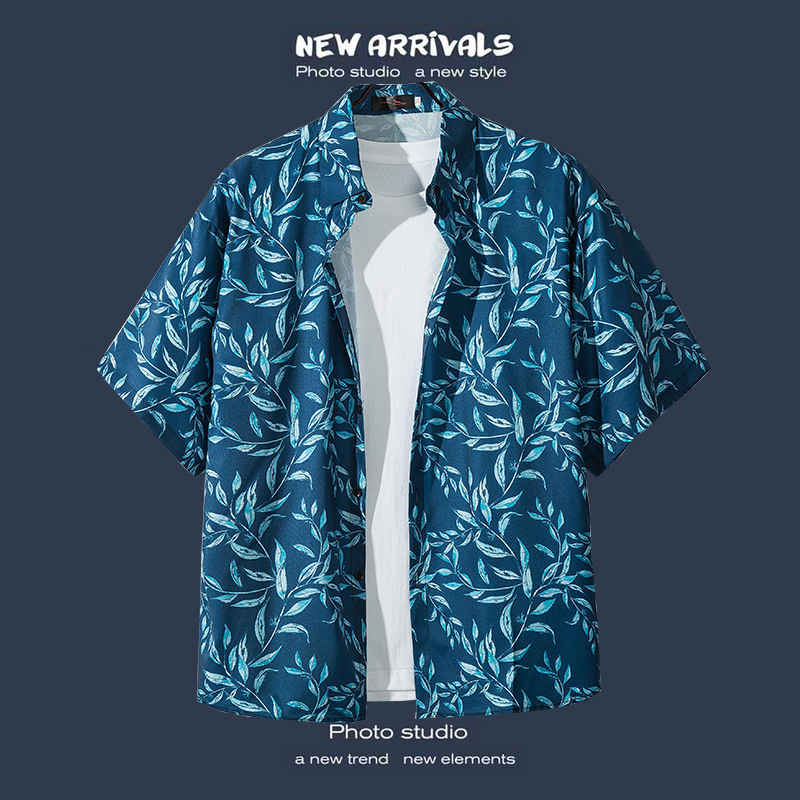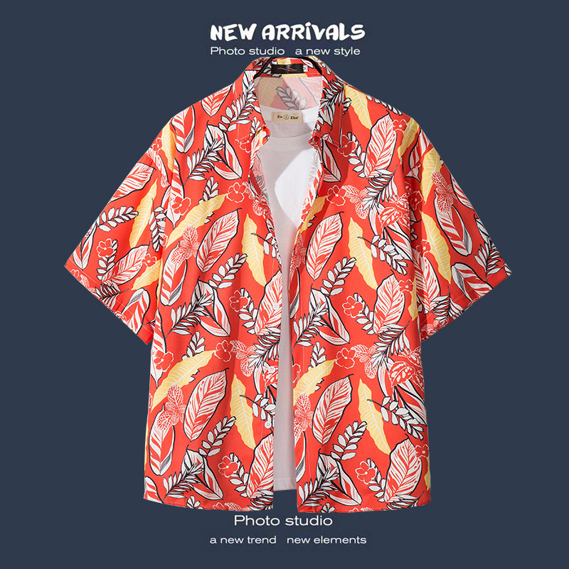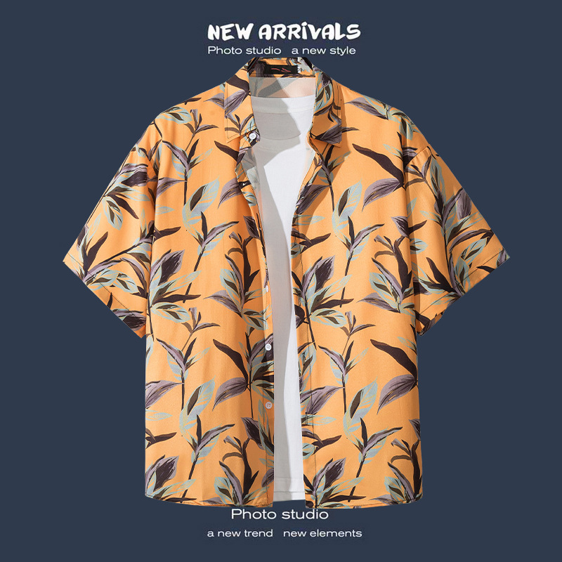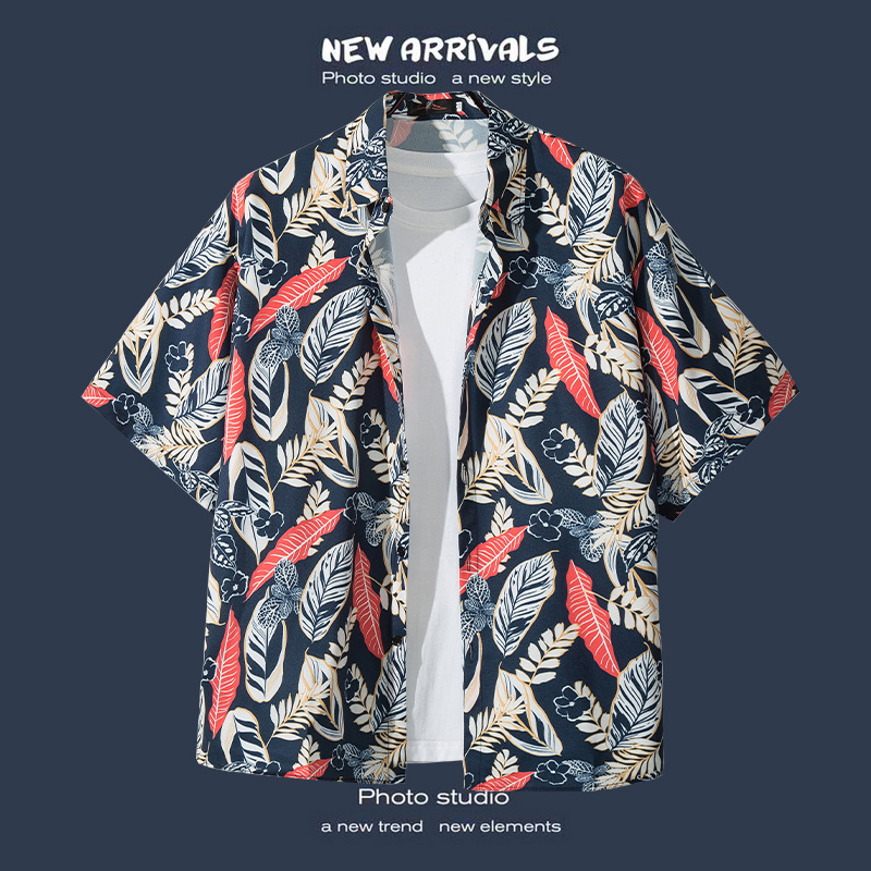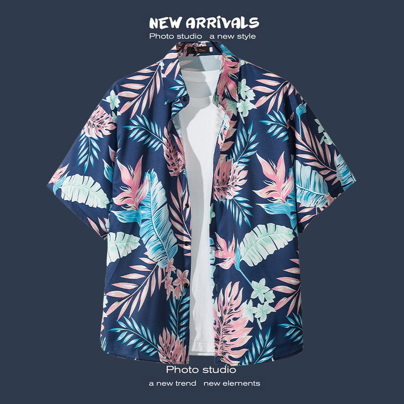 海边度假百搭花衬衫男短袖ins痞帅夏威夷复古风宽松沙滩衬衣外套