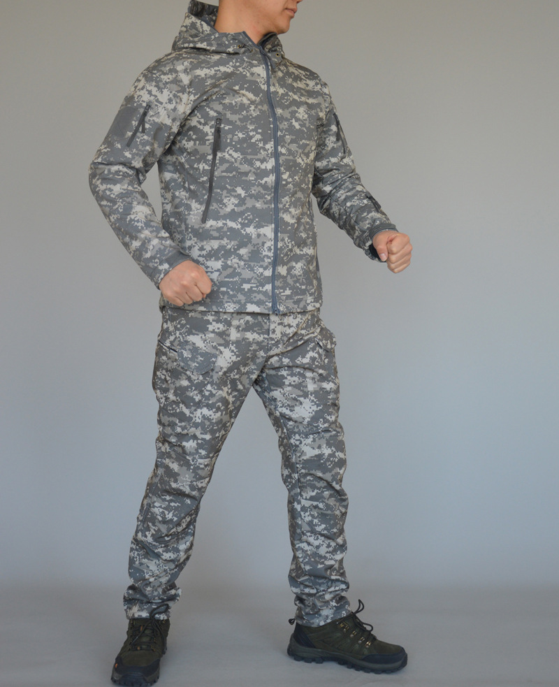 户外鲨鱼皮软壳冲锋衣套装男春秋冬季军迷防风透气加绒登山服外套