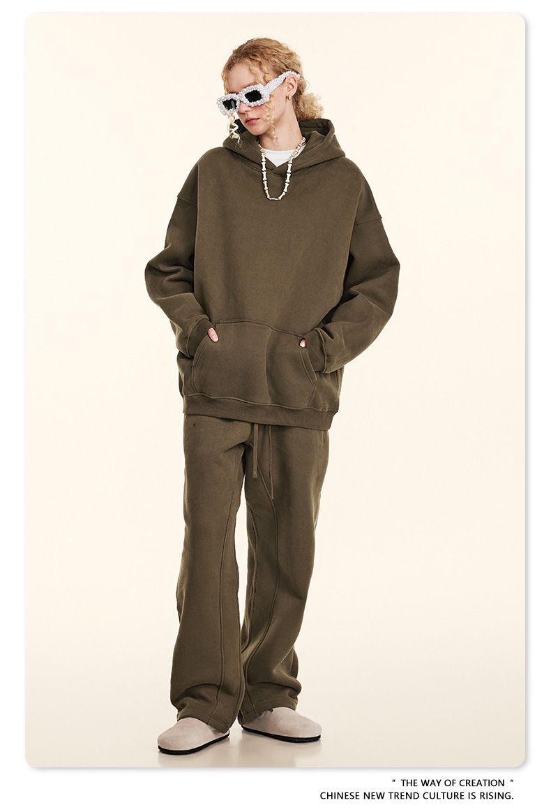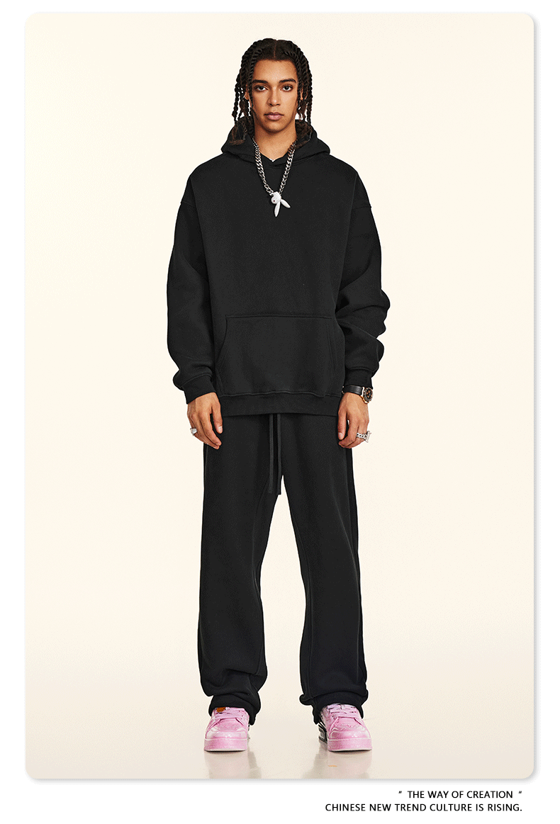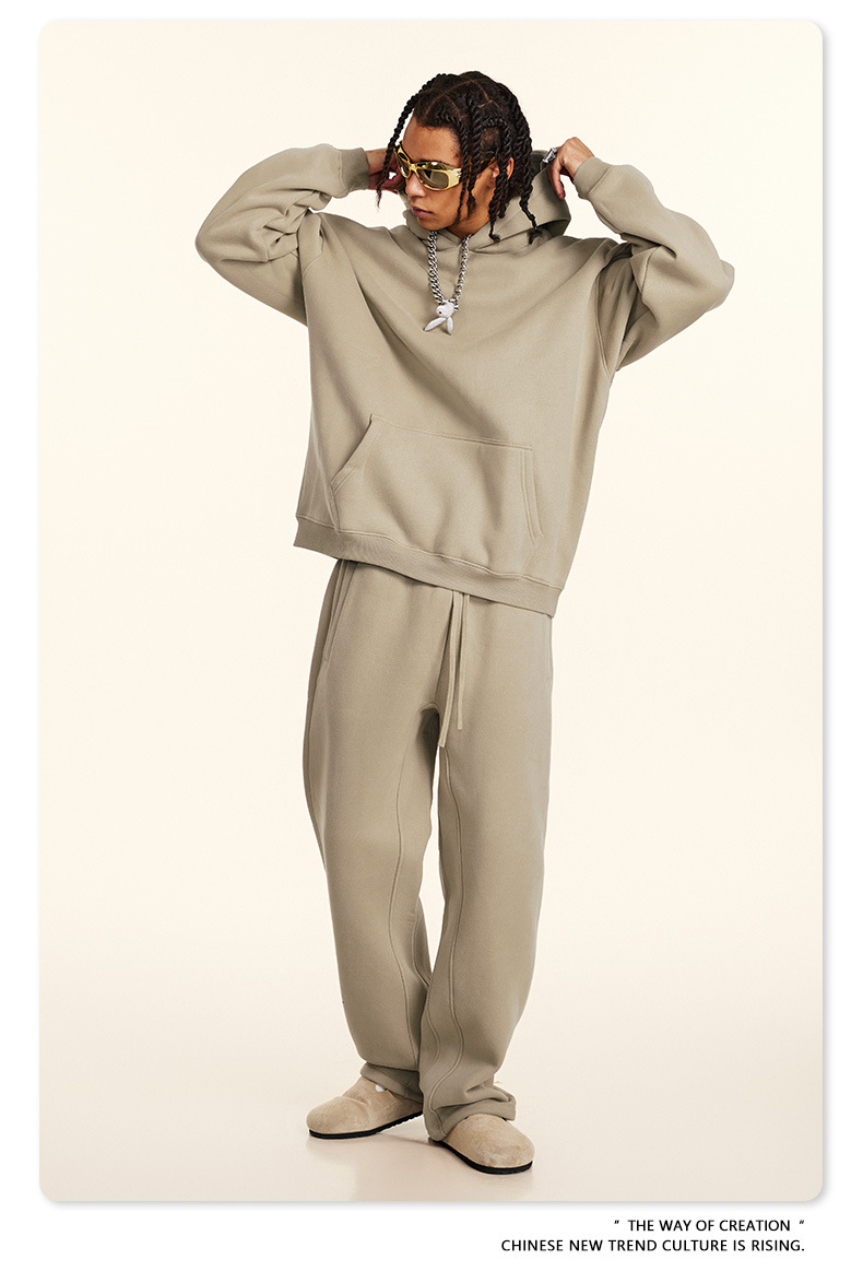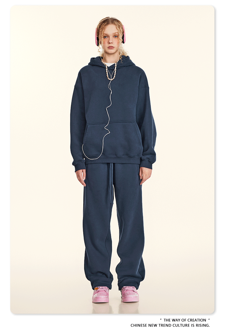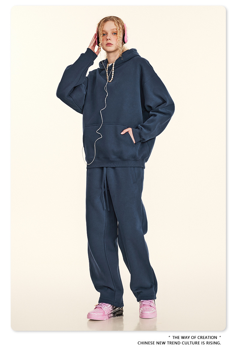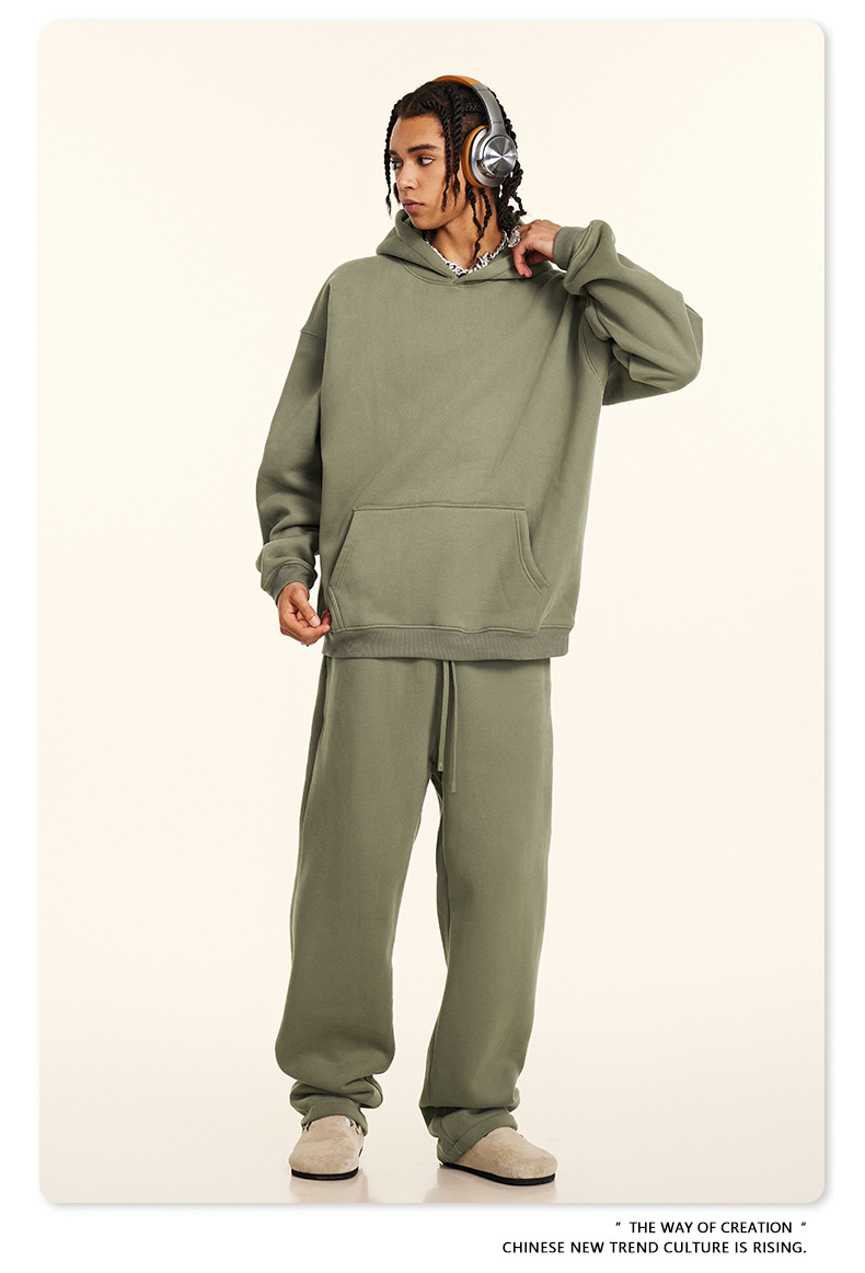 BE男装2025秋季美式潮牌休闲青少年连帽加绒卫衣卫裤运动套装男潮