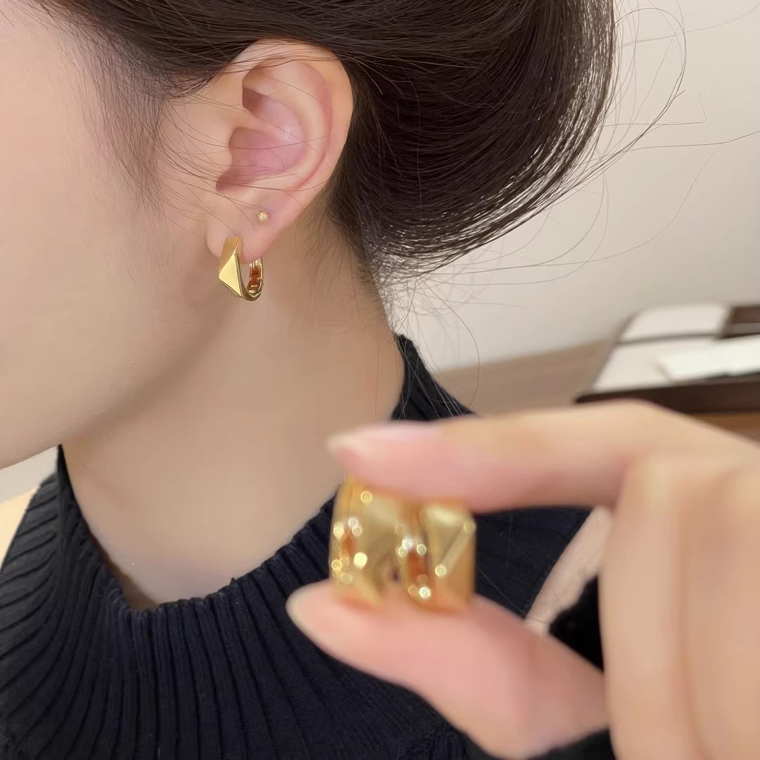 金色不规则耳环2025新款棱形简约素圈耳钉设计感气质耳环百搭耳饰