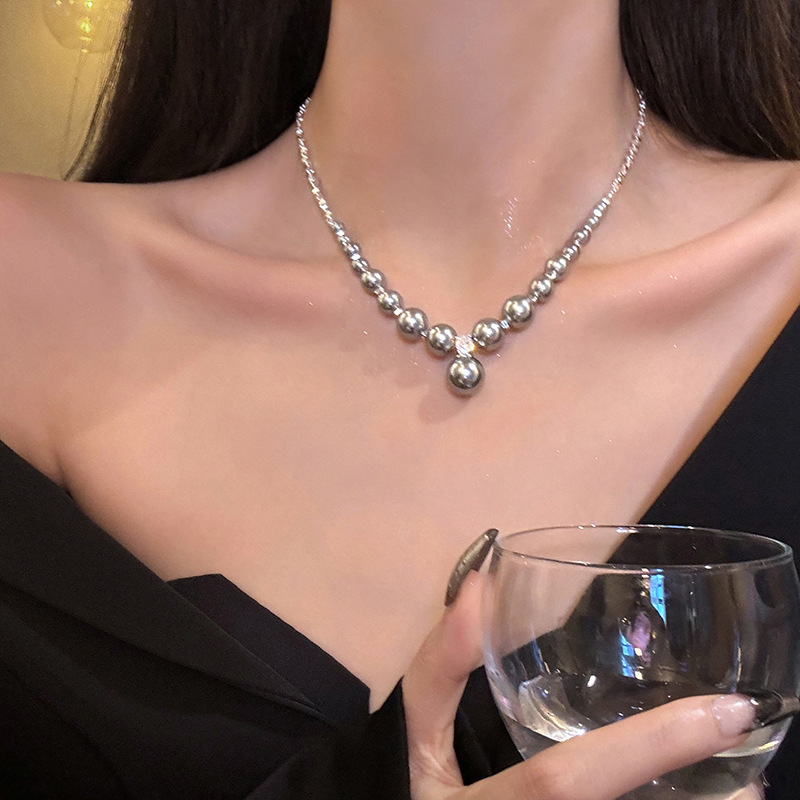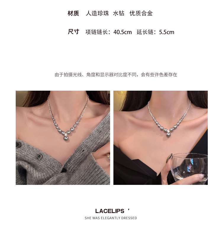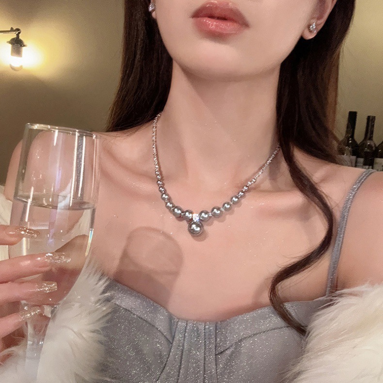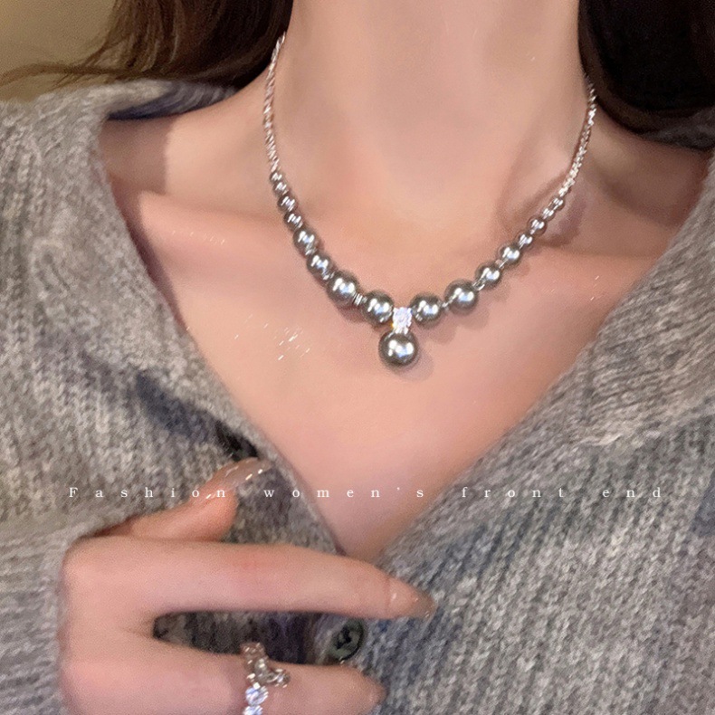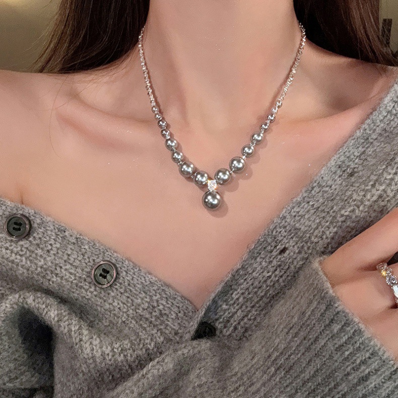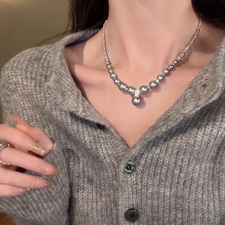 巴黎晚宴~法式复古灰珍珠项链女轻奢小众锁骨链气质时尚新款颈链